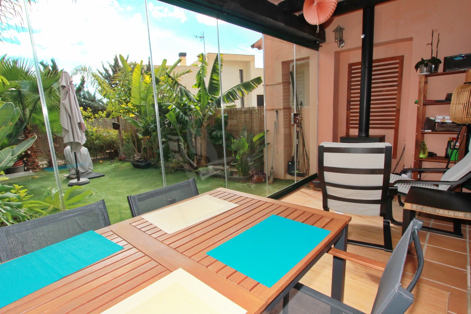 Gotowa do zamieszkania nieruchomość! Idealnie położona w bardzo poszukiwanej dzielnicy mieszkalnej Sierra Cortina, ta nieruchomość jest sprzedawana umeblowana. Nieruchomość korzysta z klimatyzacji w całym obiekcie. Doskonała nieruchomość rodzinna do całorocznego zamieszkania ze względu na spokojne i bezpieczne otoczenie. Nieruchomość przeszła grunt...owny remont i może pochwalić się nową kuchnią i nową łazienką. Parter: salon z tarasem, który ma szklane zasłony prowadzące do prywatnego ogrodu, kuchnia z jadalnią, toaleta dla gości, pierwsze piętro: 3 sypialnie, łazienka rodzinna, sypialnia główna ma garderobę i piękną łazienkę z prysznicem. Zaleca się wcześniejsze obejrzenie tej nieruchomości. Osiedle szczyci się 2 basenami i kortami do padla.