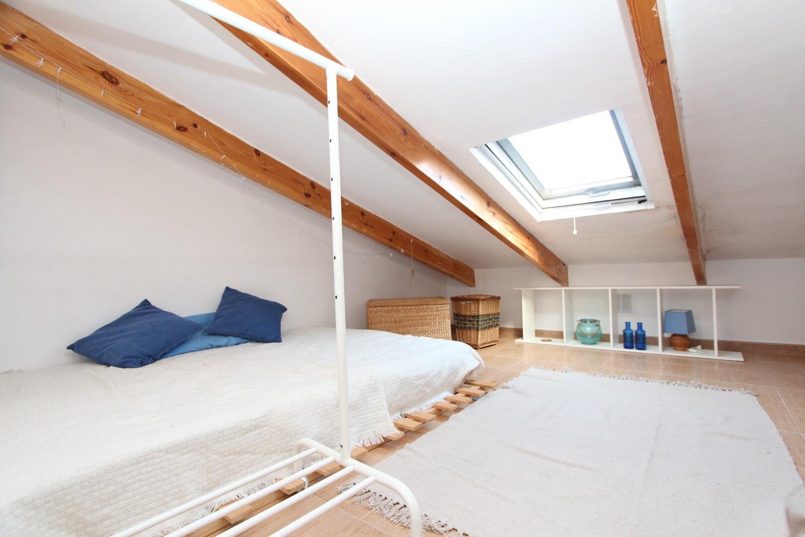Na pierwszym piętrze znajduje się główna sypialnia z wyjściem na taras, piękna łazienka oraz schody prowadzące na urokliwe poddasze, obecnie wykorzystywane jako sypialnia dla gości, ale wystarczająco uniwersalne, aby pełnić różne funkcje w zależności od potrzeb.