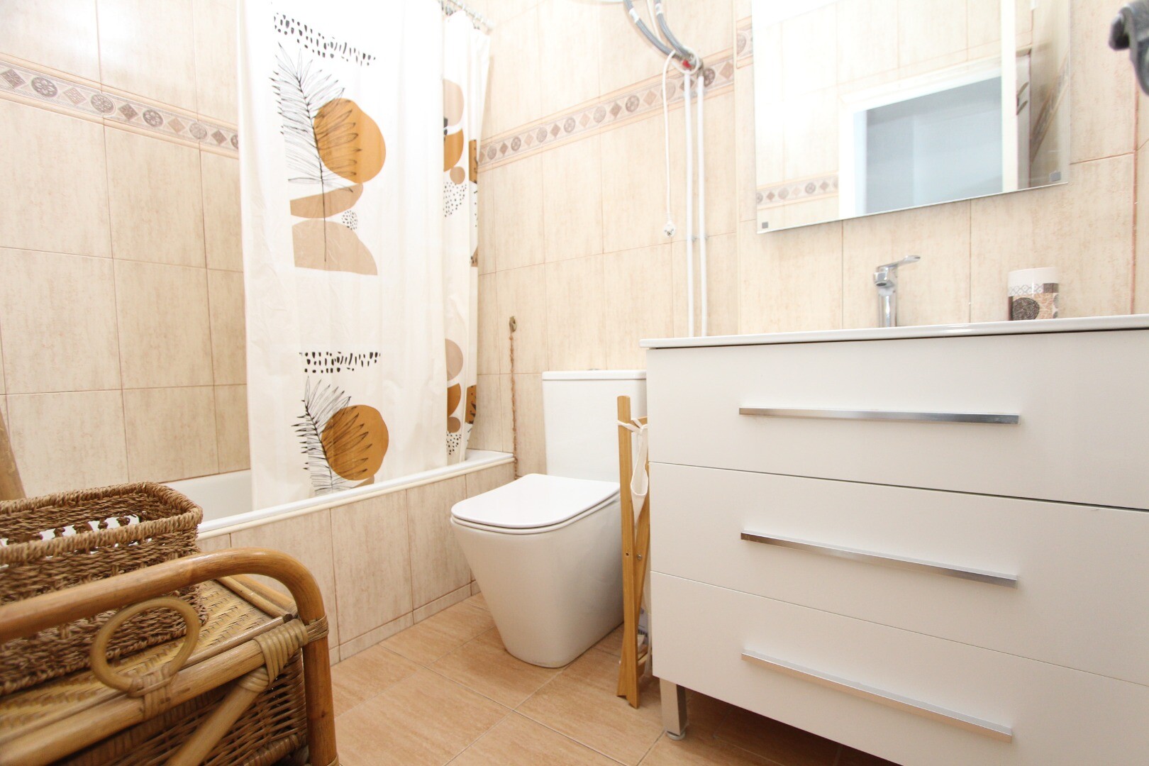 Samo mieszkanie jest w doskonałym stanie, a chociaż posiada główną sypialnię, na poddaszu przygotowano przestrzeń jako sypialnię dla gości, oferując znacznie więcej, niż widać na pierwszy rzut oka. Dom został odnowiony i zmodernizowany, z uwzględnieniem naturalnego światła i wygody na parterze, gdzie znajduje się duża sofa przed kominkiem, idealna na przytulne zimowe wieczory. Kuchnia jest mała, ale bardzo funkcjonalna, a jadalnia jasna i przyjazna.