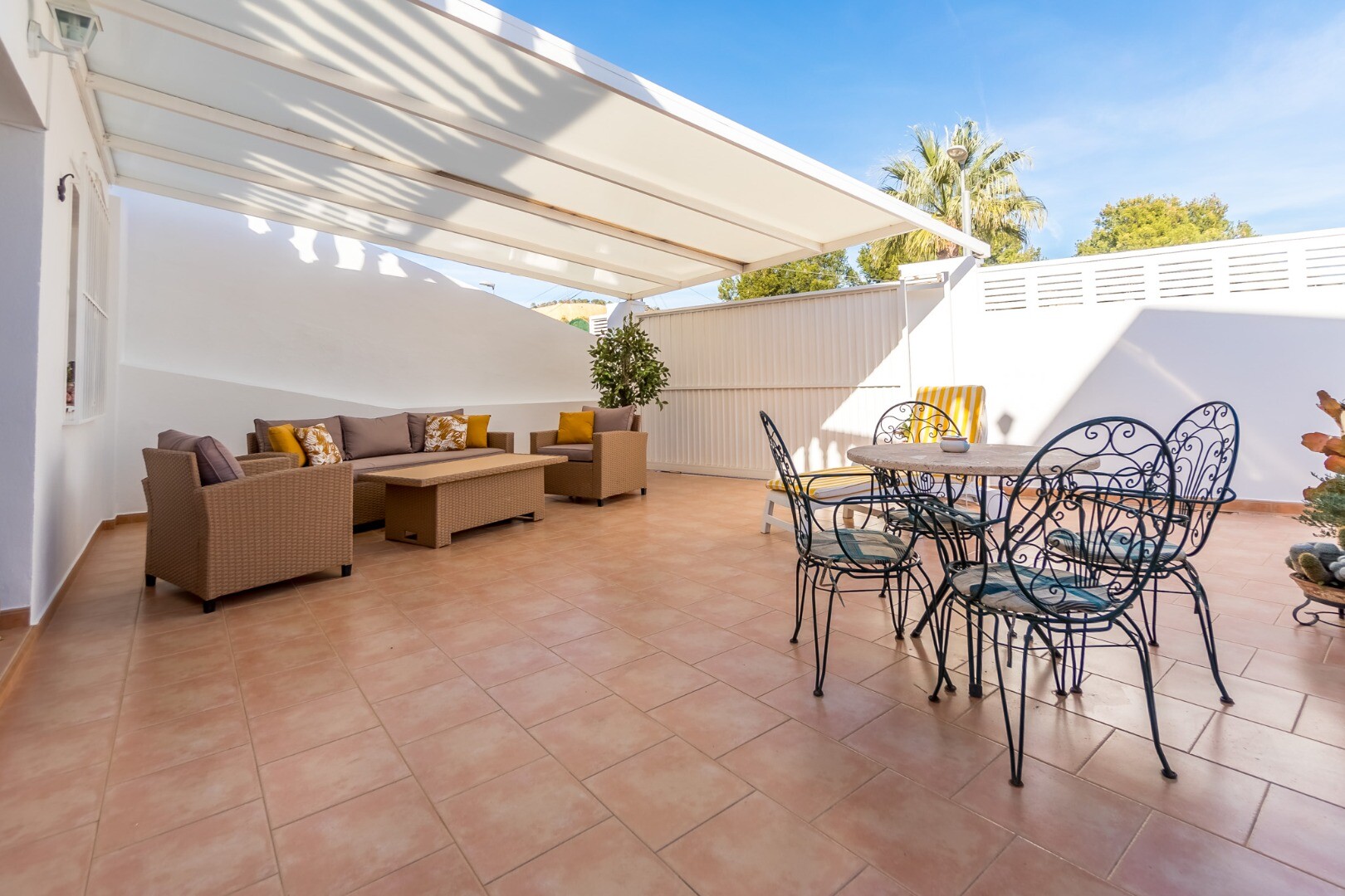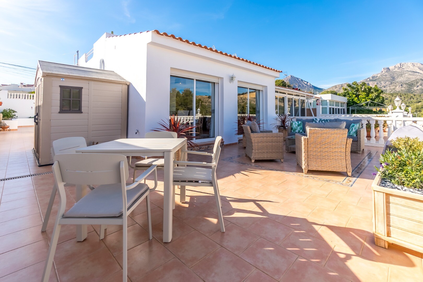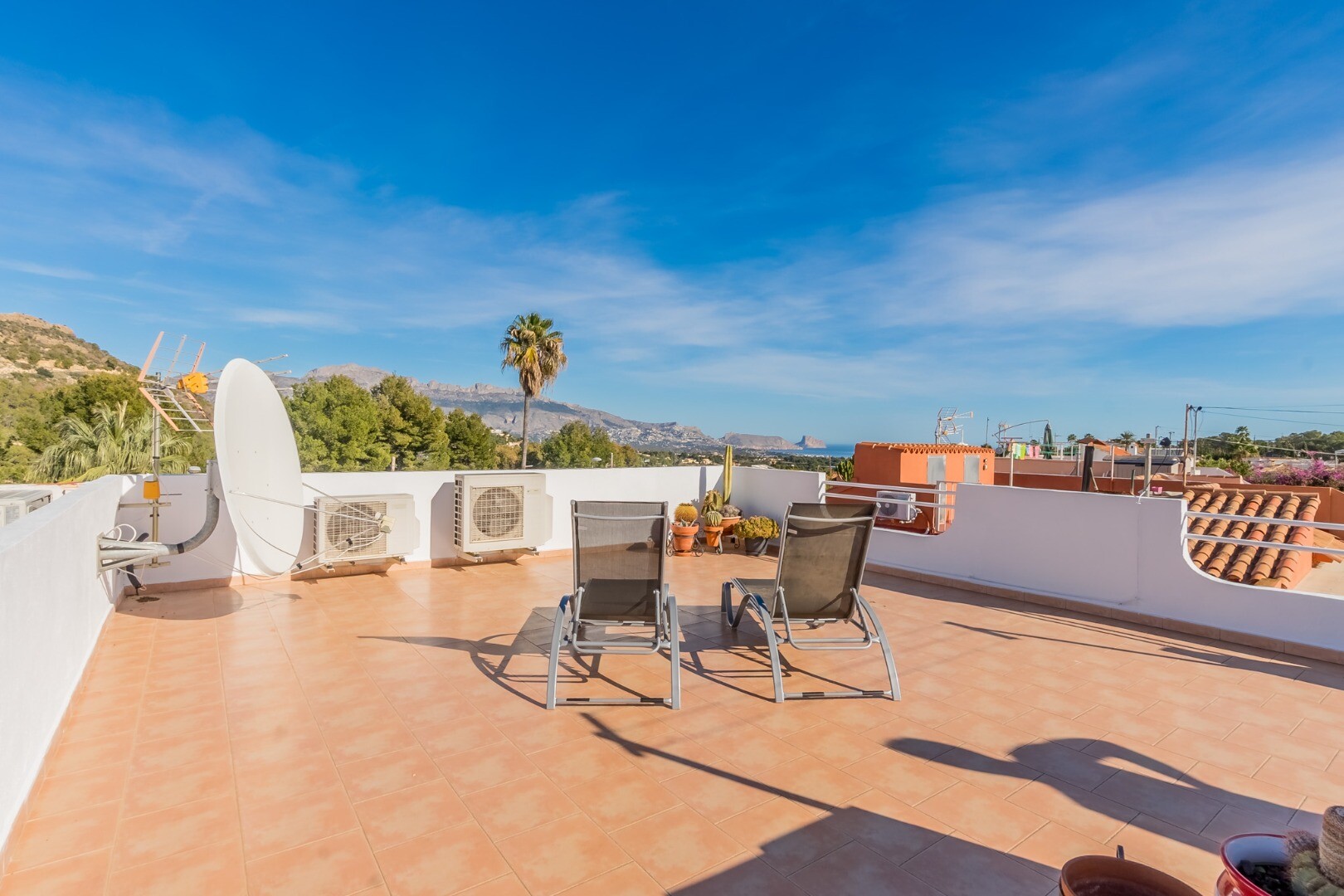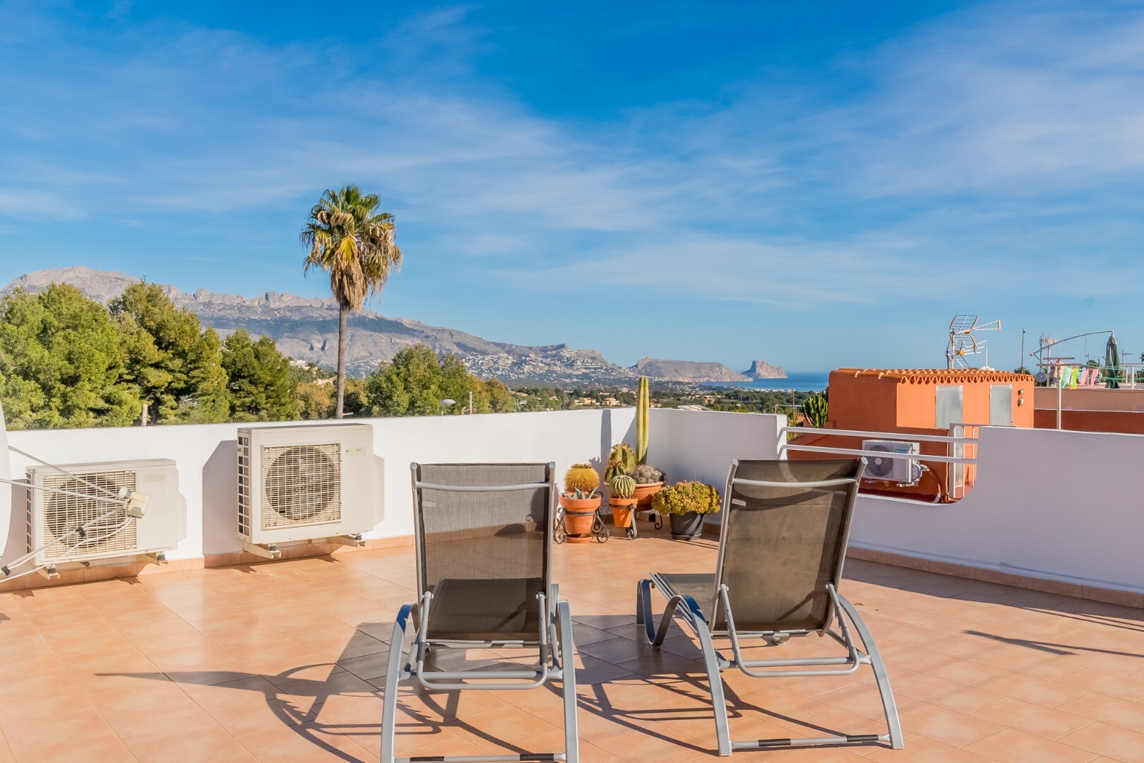 Ta wspaniała nieruchomość oferuje wszechstronność i wygodę w doskonałej lokalizacji. Główny apartament składa się z dwóch jasnych sypialni, jednej łazienki, funkcjonalnej kuchni oraz przestronnego salonu z jadalnią z dostępem do dwóch dużych tarasów, z których można podziwiać wspaniałe widoki na góry i morze.