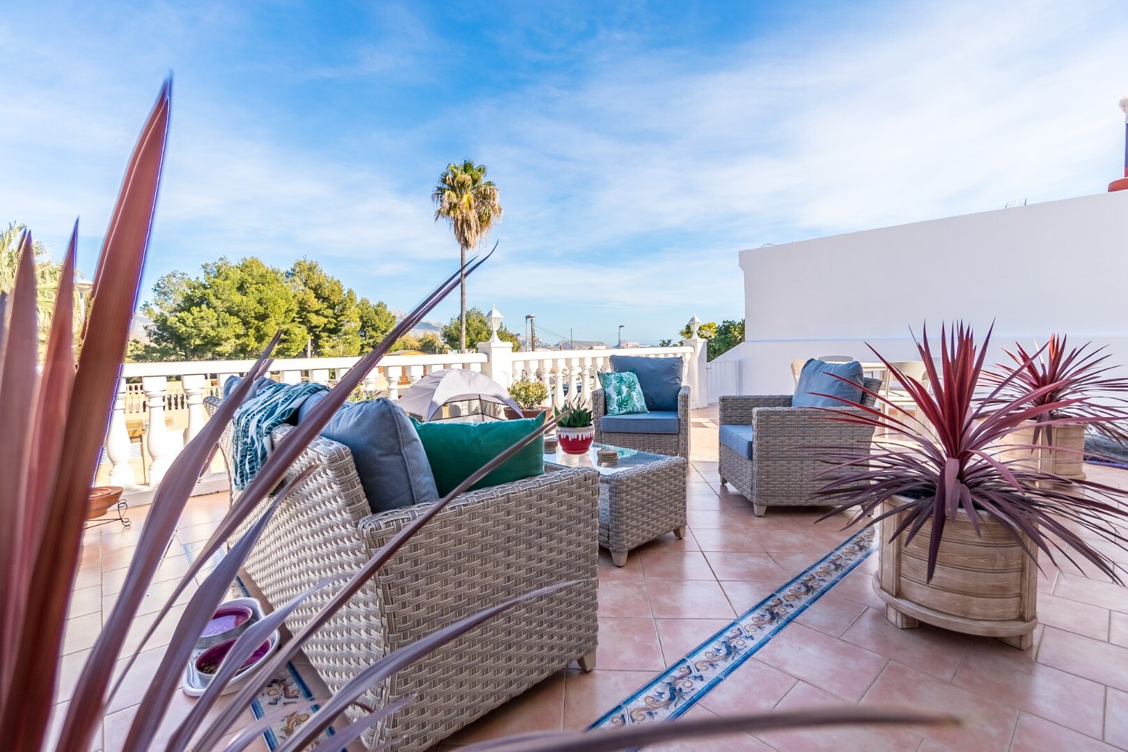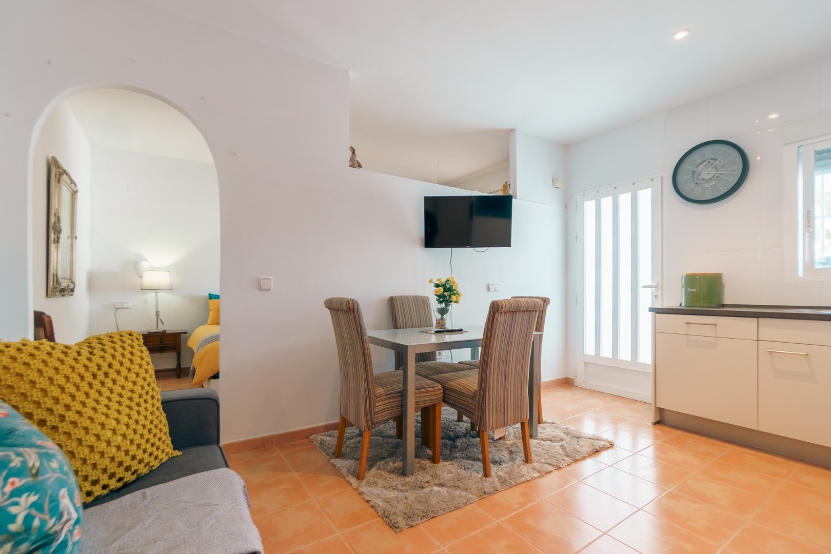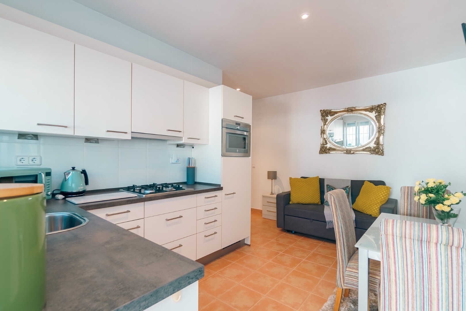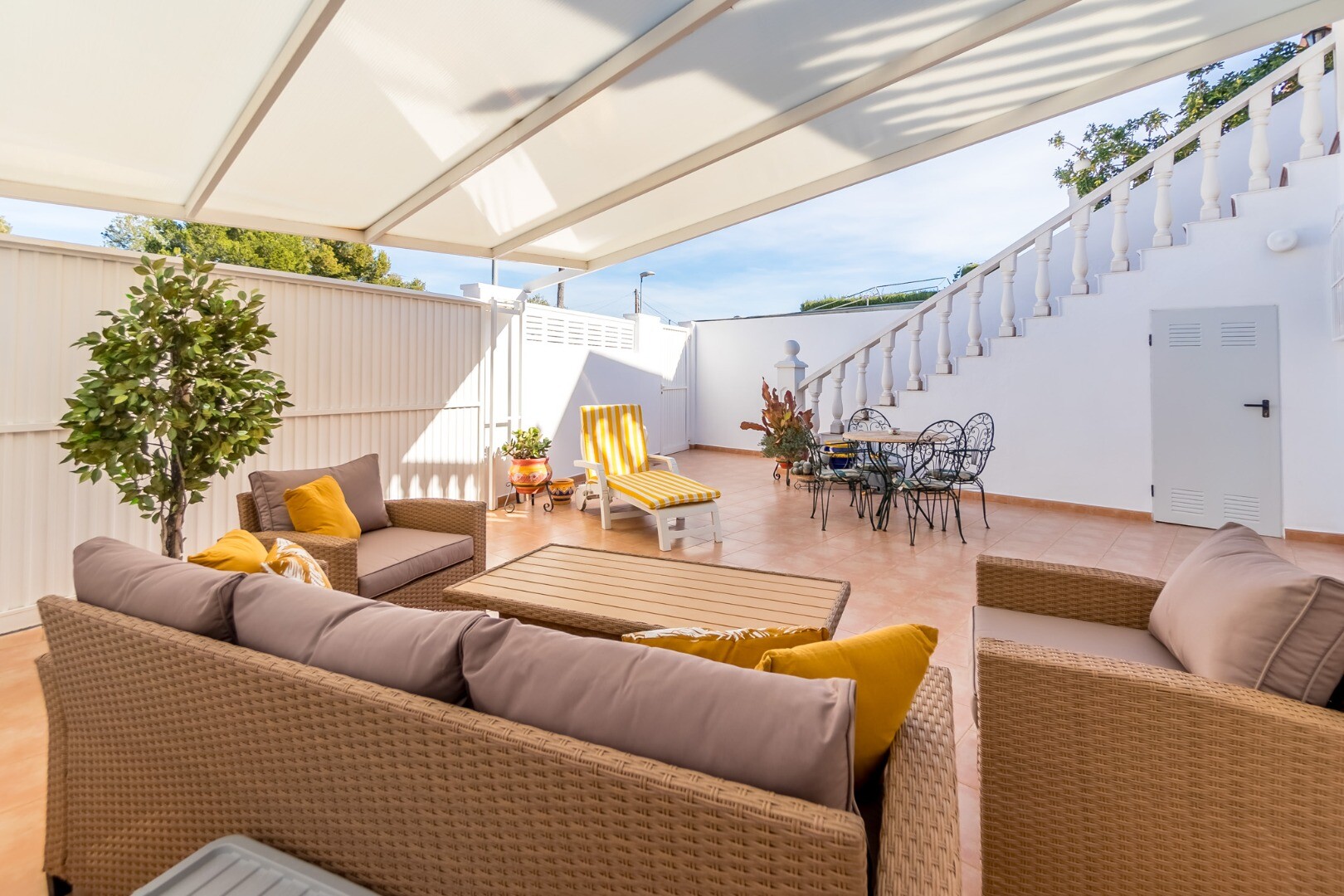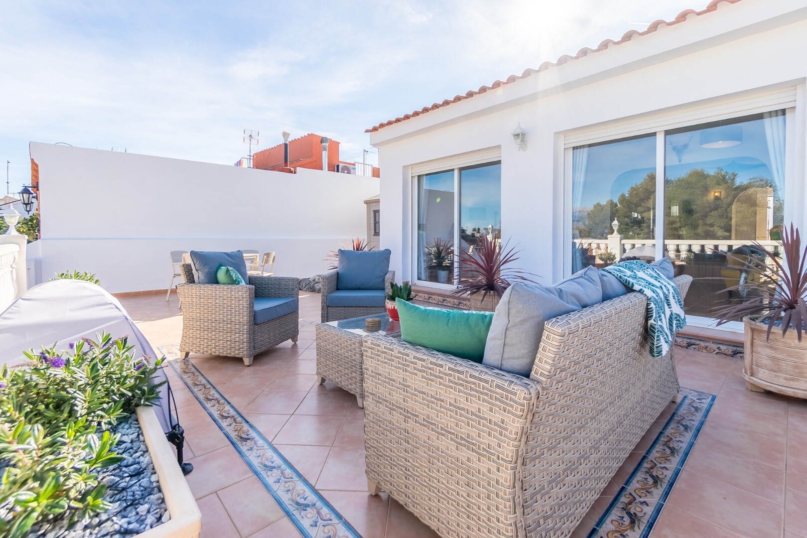 Ta wspaniała nieruchomość oferuje wszechstronność i wygodę w doskonałej lokalizacji. Główny apartament składa się z dwóch jasnych sypialni, jednej łazienki, funkcjonalnej kuchni oraz przestronnego salonu z jadalnią z dostępem do dwóch dużych tarasów, z których można podziwiać wspaniałe widoki na góry i morze.