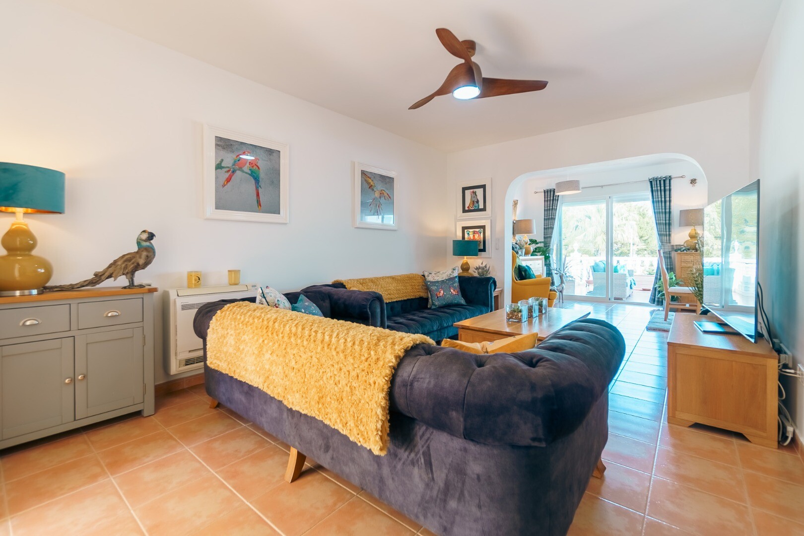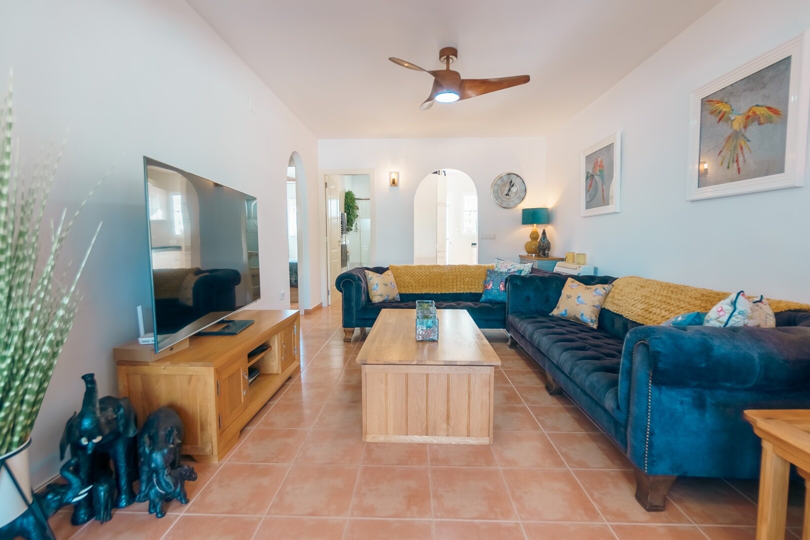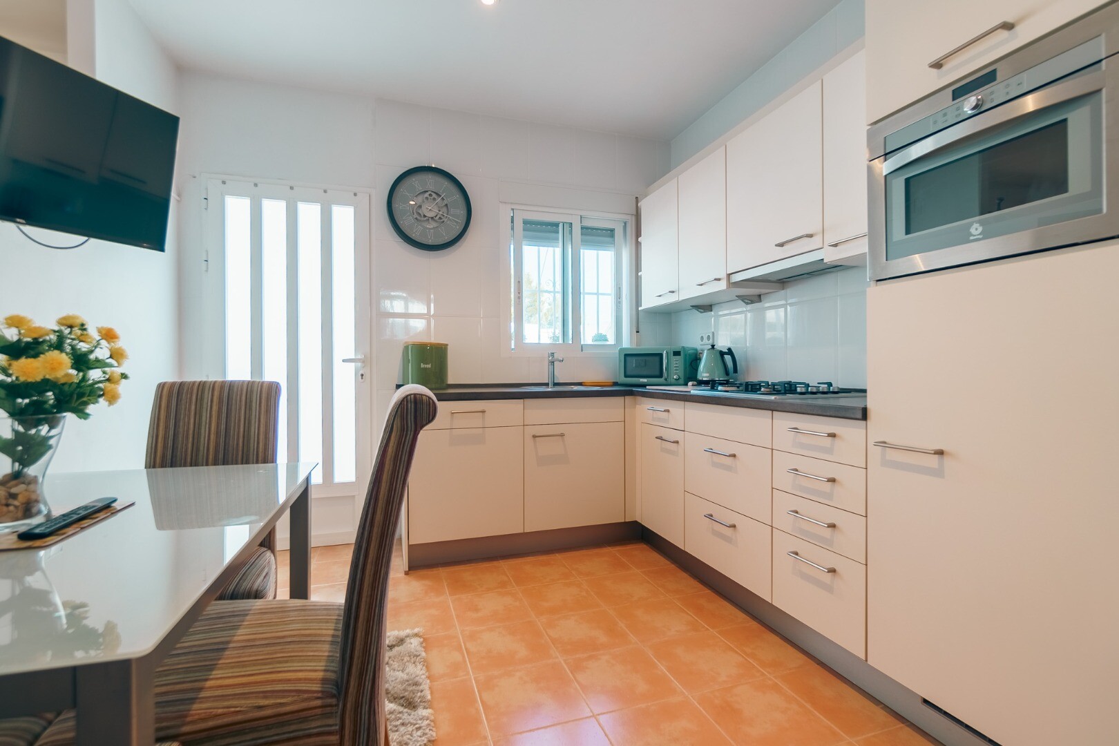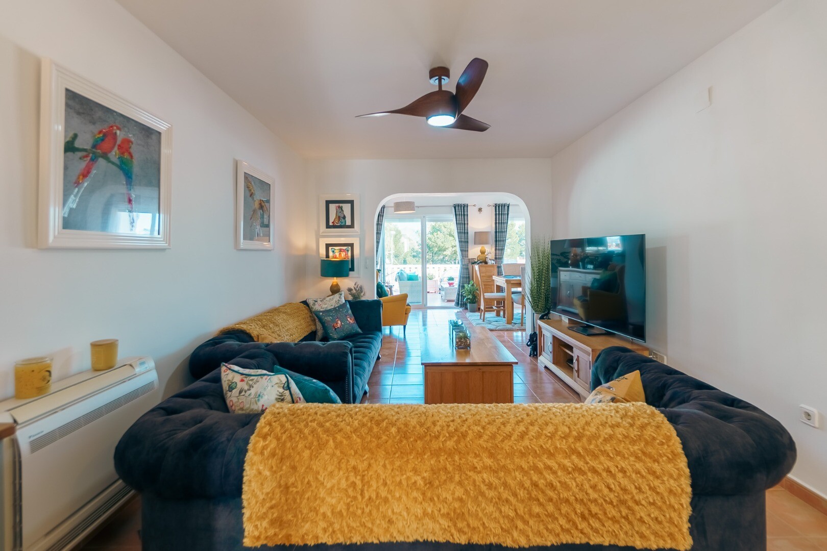 Ta wspaniała nieruchomość oferuje wszechstronność i wygodę w doskonałej lokalizacji. Główny apartament składa się z dwóch jasnych sypialni, jednej łazienki, funkcjonalnej kuchni oraz przestronnego salonu z jadalnią z dostępem do dwóch dużych tarasów, z których można podziwiać wspaniałe widoki na góry i morze.