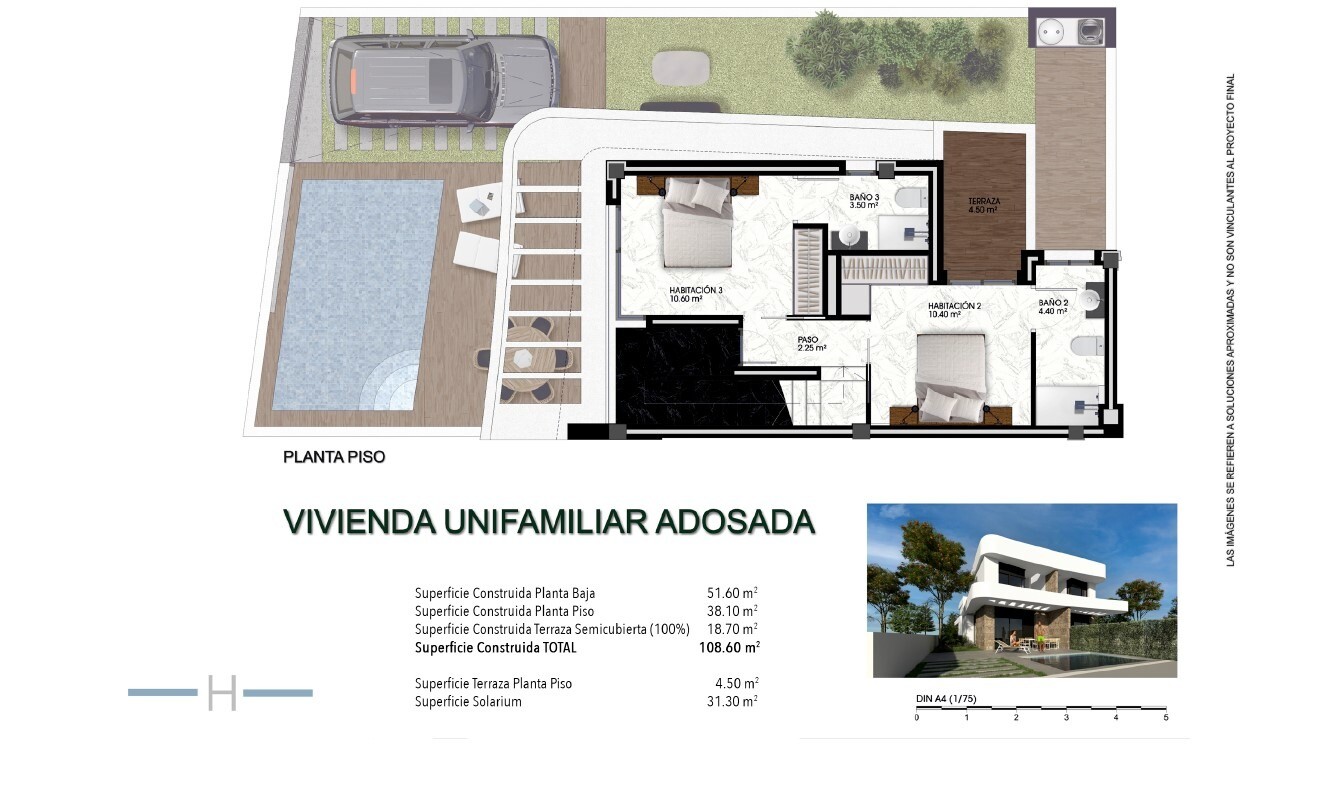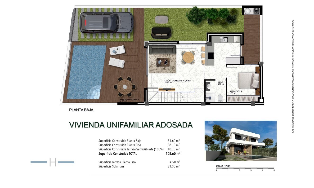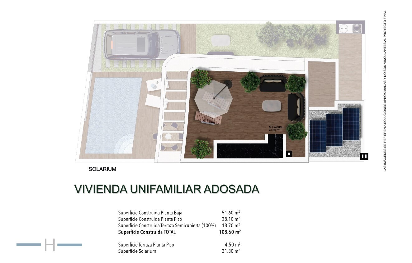 Solarium 31m2. Mała rezydencja z 32 domami typu Quad i 4 domami wolnostojącymi w cichej dzielnicy mieszkalnej Los Montesinos, blisko wszystkich możliwych udogodnień i pól golfowych. Idealna lokalizacja dla miłośników jazdy na rowerze, ponieważ istnieje bardzo dobre połączenie ścieżek rowerowych. Do różnych placów zabaw można dojechać samochodem w o...koło 20 minut. Lotnisko w Alicante w około 30 minut