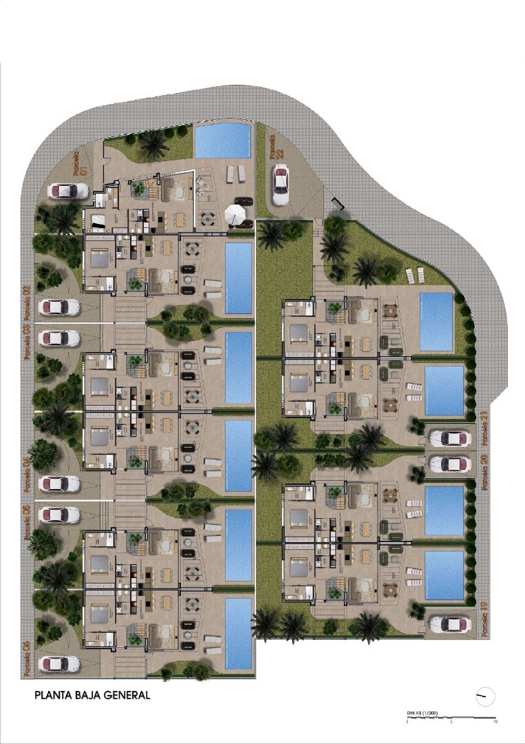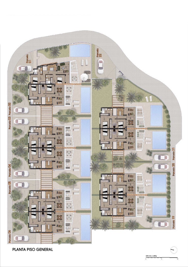 Ekskluzywne wille w zabudowie bliźniaczej w Font del Llop Golf Resort z trzema sypialniami, dwiema łazienkami i toaletą dla gości. Wille wyposażone są w klimatyzację z regulacją temperatury za pomocą pompy ciepła zamontowanej na dachu. Klimatyzacja posiada preinstalowany system Airzone i można ją dokupić jako opcję. Wille wyposażone są w ogrzewanie... podłogowe w łazienkach, elektryczne rolety w sypialniach, parking na terenie posesji, basen z ogrodem krajobrazowym i systemem nawadniania oraz prywatny basen.