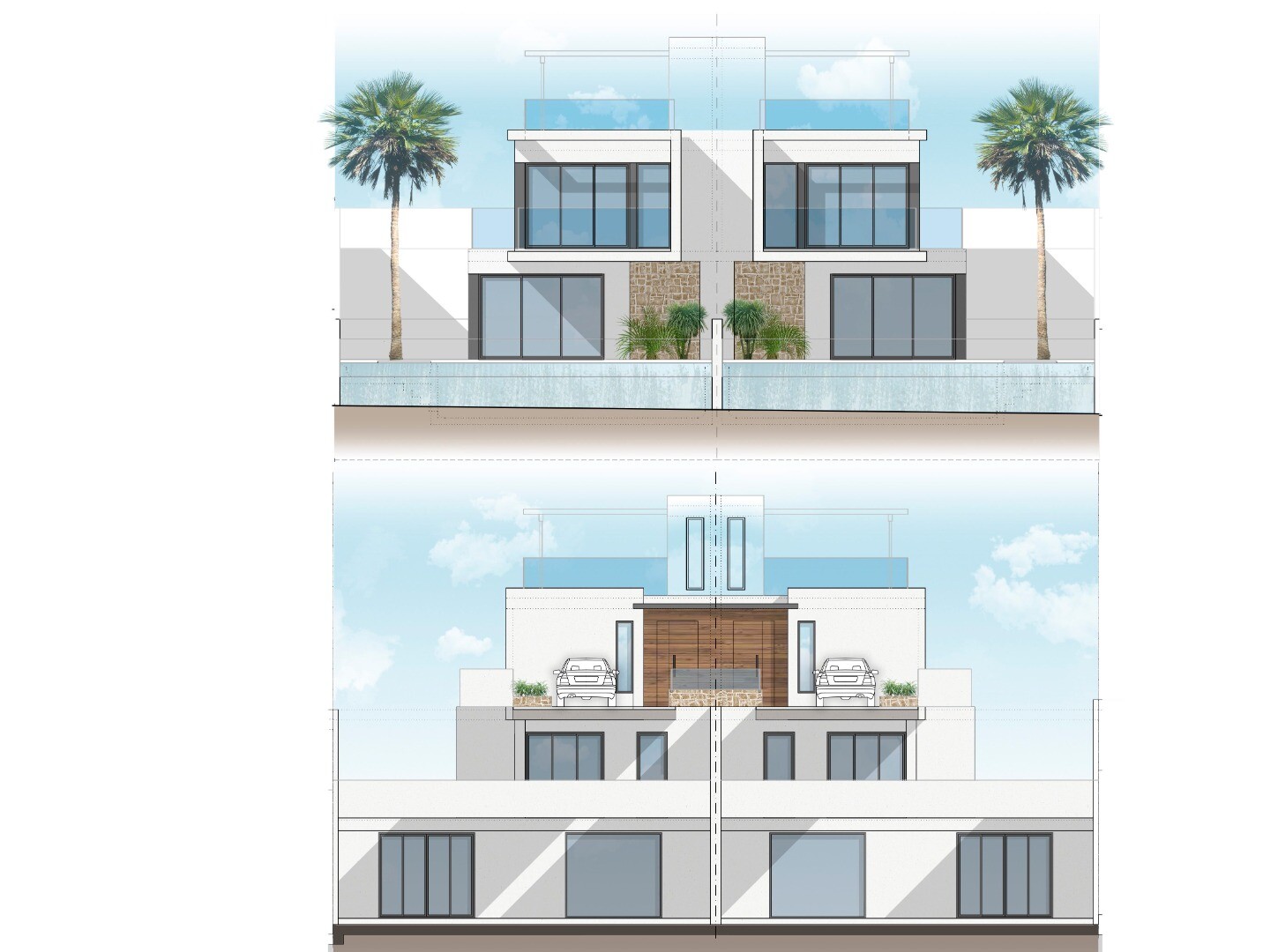 Ekskluzywne wille w zabudowie bliźniaczej w ośrodku golfowym Font del Llop z trzema sypialniami, dwiema łazienkami i toaletą dla gości. Wille wyposażone są w klimatyzację z regulacją temperatury za pomocą pompy ciepła zamontowanej na dachu. Klimatyzacja posiada preinstalowany system Airzone i jest dostępna opcjonalnie. Wille wyposażone są w ogrzewa...nie podłogowe w całym domu, elektryczne rolety w sypialniach, dwa podziemne miejsca parkingowe, dwa schowki, przeszklony taras, który można zaaranżować na angielskie patio, basen z ogrodem krajobrazowym i systemem nawadniania, a także opcjonalną windę, która może dotrzeć na wszystkie piętra, nawet na taras na dachu.