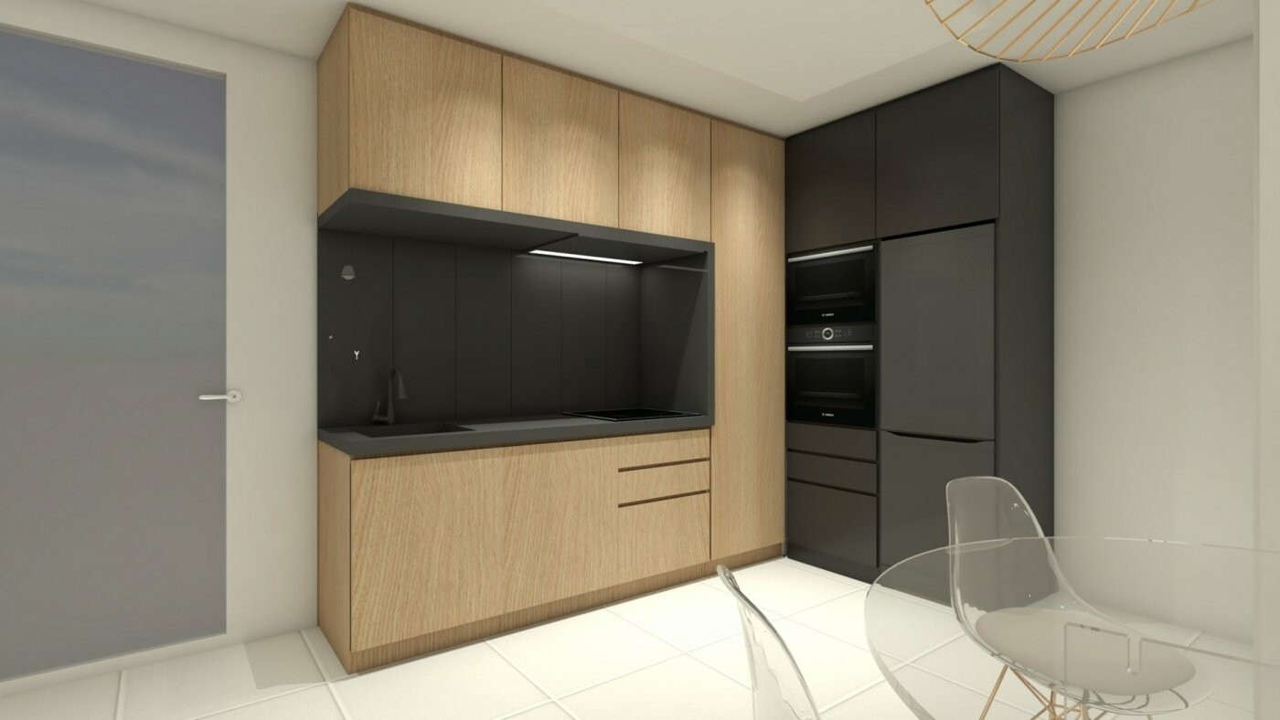 W pełni umeblowana kuchnia z grupą filtrów i płytą indukcyjną.