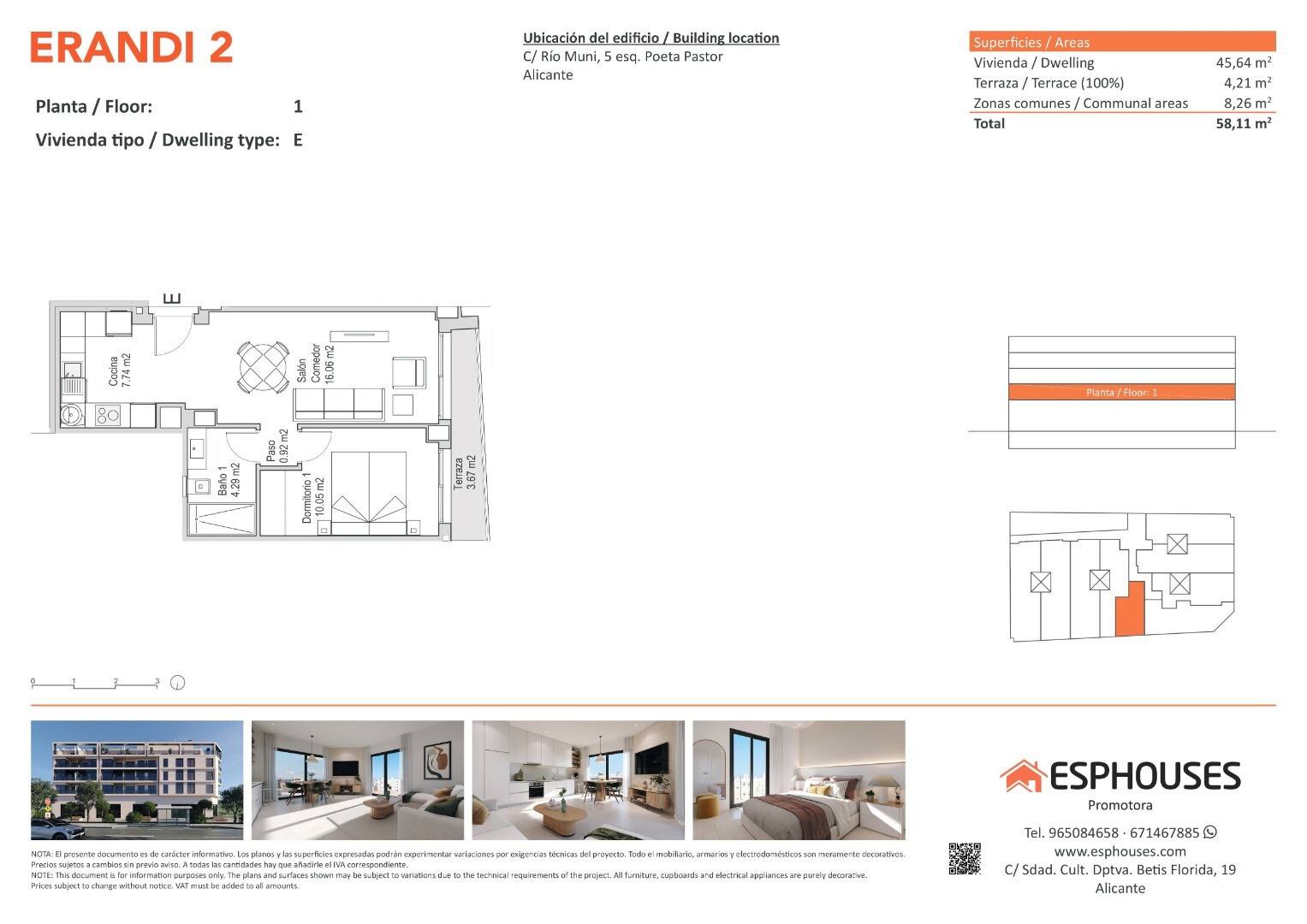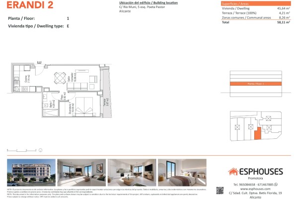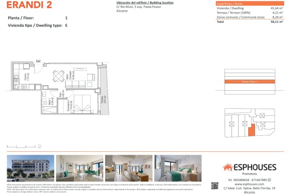 Położone w znanej i dobrze skomunikowanej dzielnicy La Florida w Alicante, zaledwie kilka minut od centrum handlowego Puerta de Alicante, 10–15 minut komunikacją miejską od centrum miasta, 2 km od plaży i 12 km od lotniska. Doskonały wybór na pierwsze mieszkanie lub inwestycję.
