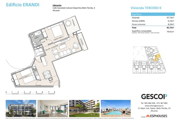 Budynek ERANDI znajduje się zaledwie kilka minut spacerem od centrum handlowego Puerta de Alicante, 2 km od plaży i 12 km od lotniska Alicante-Elche. Doskonałe połączenia komunikacji publicznej umożliwiają dojazd do centrum Alicante w około 10–15 minut. Idealna opcja zarówno do zamieszkania, jak i jako inwestycja w jednej z najbardziej perspektywicznych części miasta.
