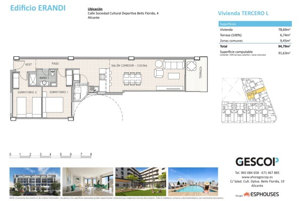 Budynek ERANDI znajduje się zaledwie kilka minut spacerem od centrum handlowego Puerta de Alicante, 2 km od plaży i 12 km od lotniska Alicante-Elche. Doskonałe połączenia komunikacji publicznej pozwalają dotrzeć do centrum Alicante w około 10–15 minut, łącząc spokojne życie mieszkalne z bliskością wszystkich usług i rozrywki.