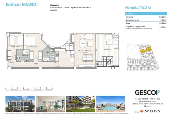 Budynek ERANDI znajduje się zaledwie kilka minut spacerem od centrum handlowego Puerta de Alicante, 2 km od plaży i 12 km od lotniska Alicante-Elche. Doskonałe połączenia komunikacji publicznej pozwalają dotrzeć do centrum Alicante w około 10–15 minut. Doskonała opcja do zamieszkania lub jako inwestycja.
