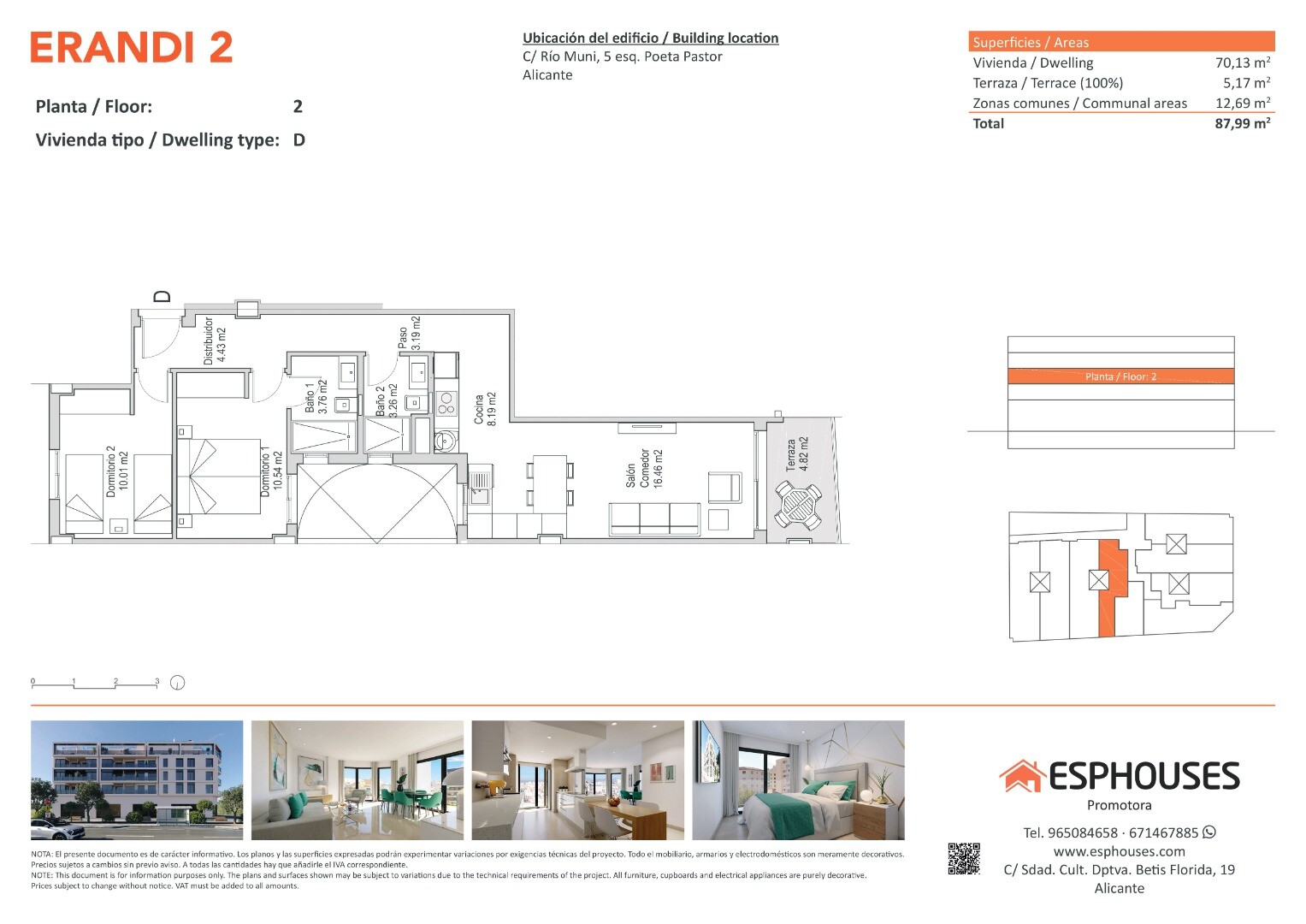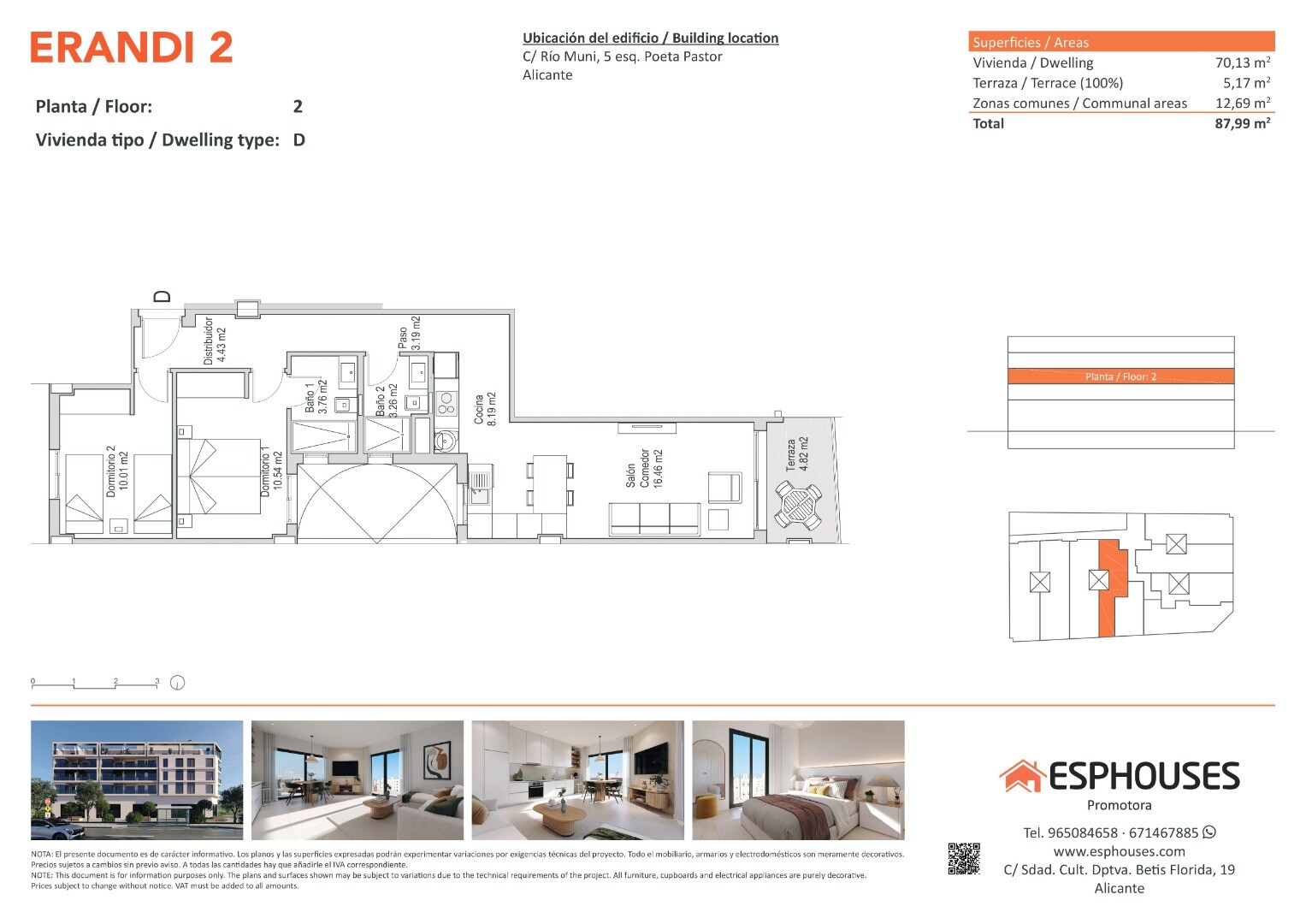 Zlokalizowane kilka minut od centrum handlowego Puerta de Alicante, zaledwie 2 km od plaży i 12 km od lotniska, to idealna propozycja dla osób poszukujących funkcjonalnej, dobrze położonej nieruchomości — do zamieszkania lub jako inwestycja.