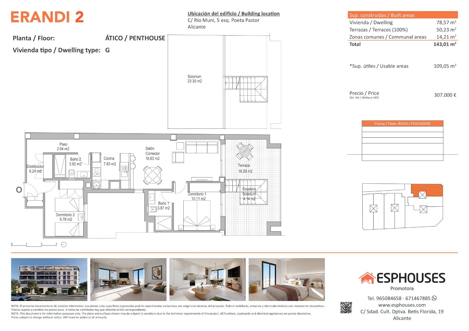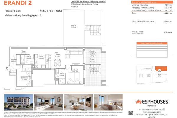 Ten elegancki apartament na poddaszu w nowym budynku znajduje się na czwartym piętrze budynku ERANDI 2, w znanej dzielnicy La Florida – dobrze skomunikowanej części Alicante z pełną infrastrukturą. Mieszkanie ma powierzchnię 78,57 m² i składa się z dwóch sypialni z wbudowanymi szafami, dwóch kompletnych łazienek oraz jasnego salonu z otwartą kuchni...ą w nowoczesnym i funkcjonalnym układzie.