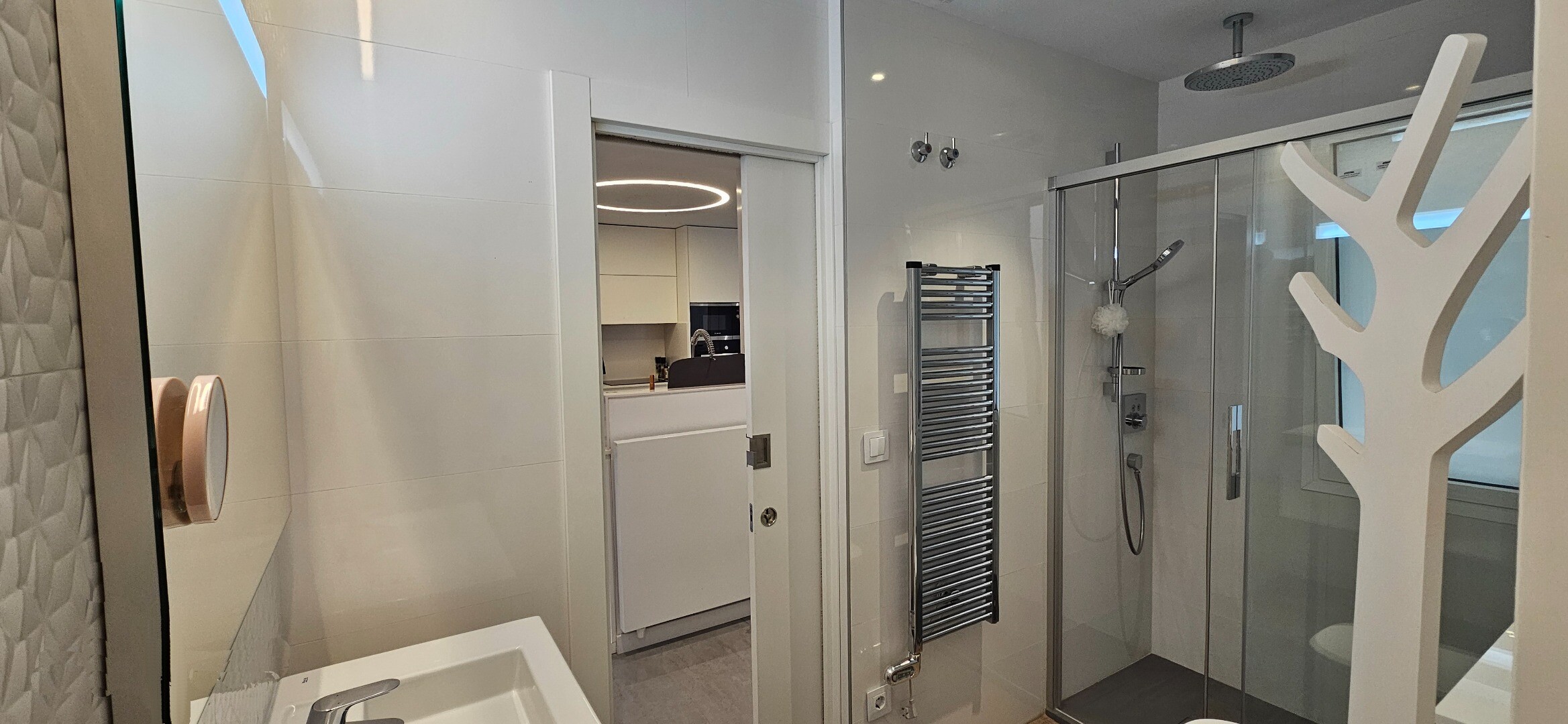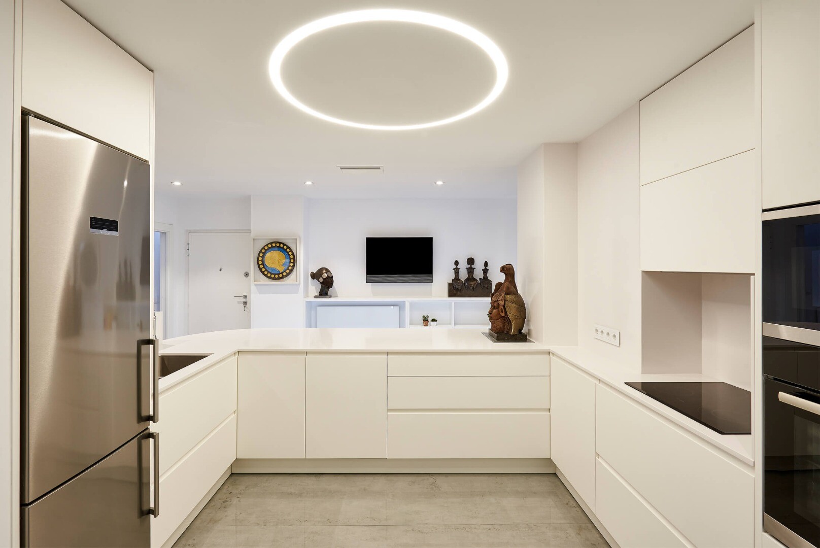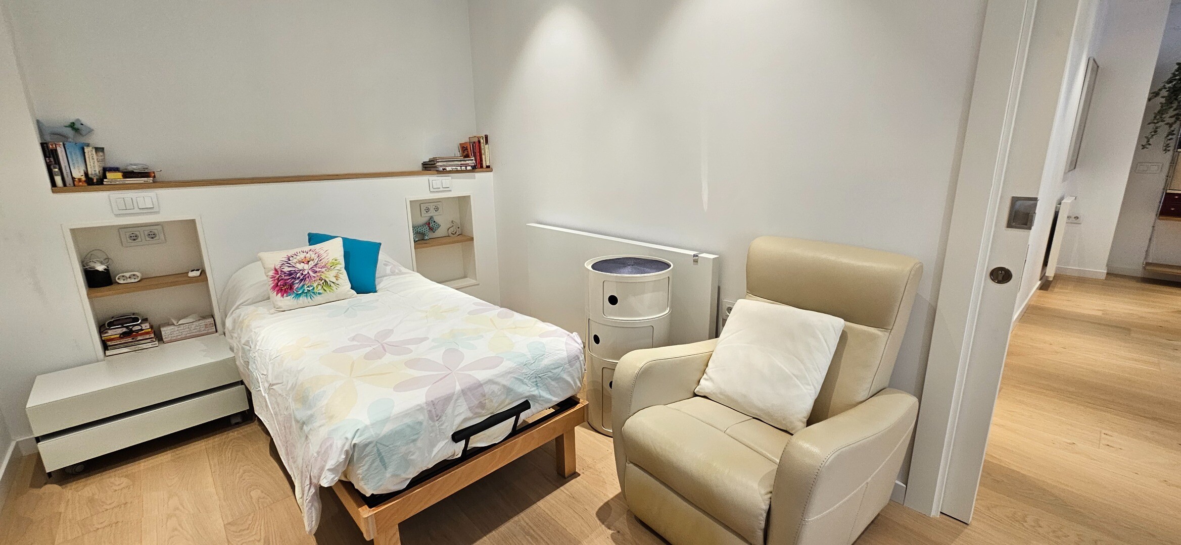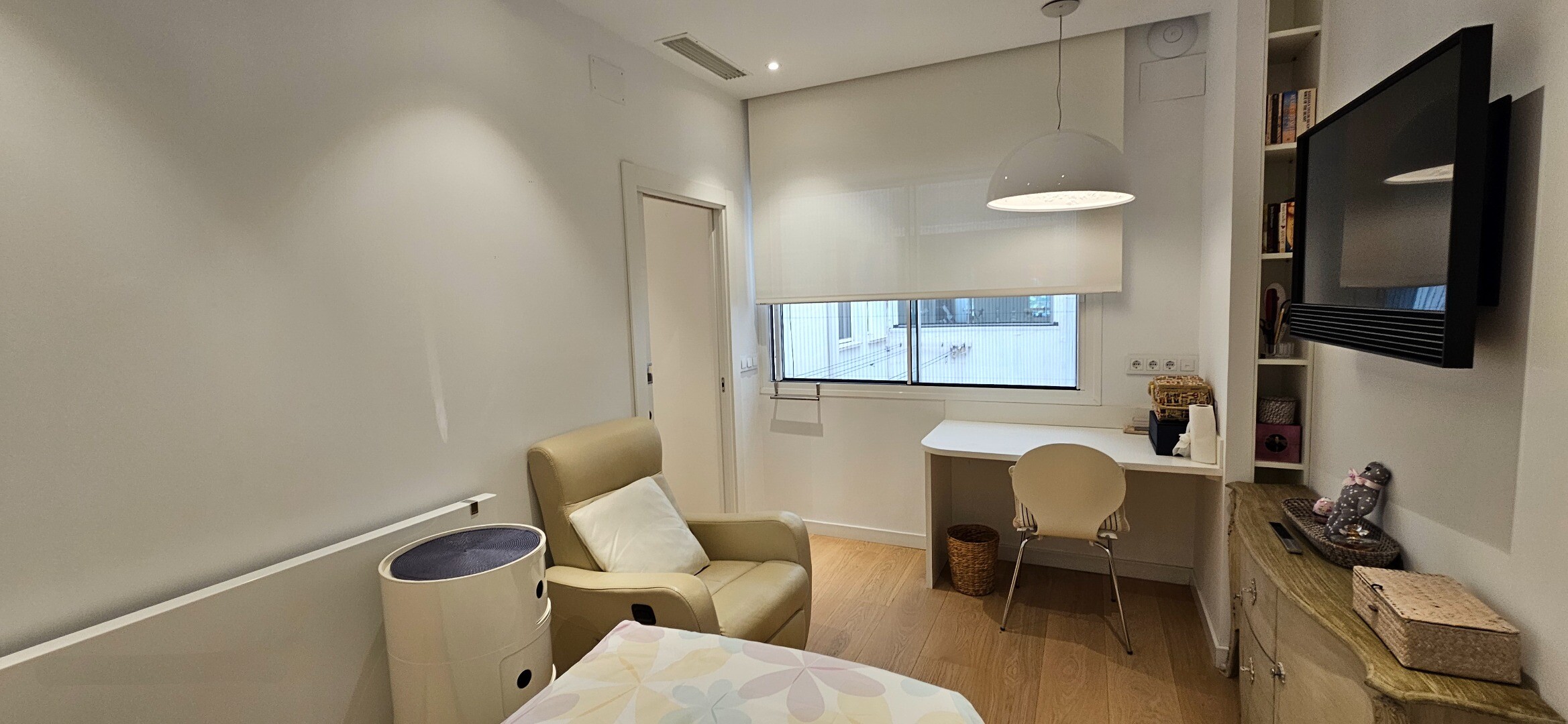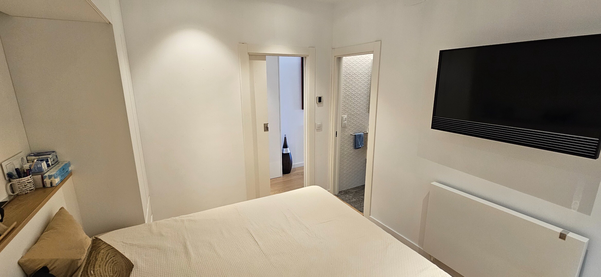 Dodatki obejmują centralne ogrzewanie gazowe z grzejnikami Irsap oraz klimatyzację kanałową z systemem Airzone, z dwoma niezależnymi jednostkami dla strefy dziennej i nocnej. Gładkie ściany, meble na wymiar i drzwi przesuwne przyczyniają się do czystej i nowoczesnej estetyki, optymalizując każdą przestrzeń.
