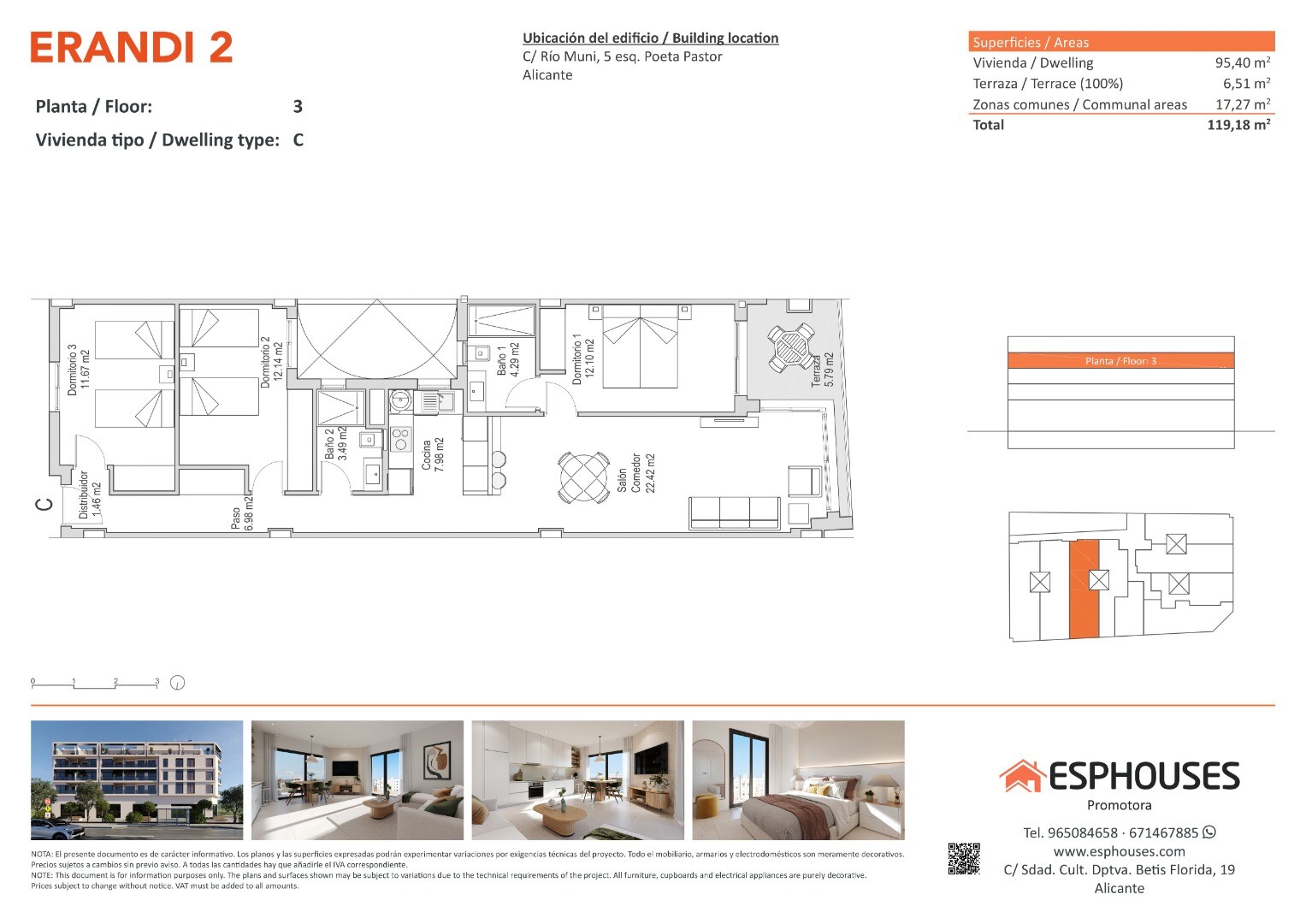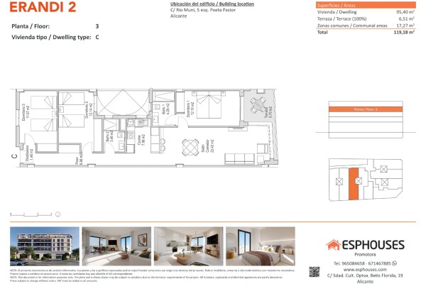 Na trzecim piętrze budynku Edificio ERANDI 2 znajduje się to nowoczesne, przestronne mieszkanie o optymalnym układzie, z tarasem i basenem na dachu, w dobrze skomunikowanej dzielnicy La Florida w Alicante. Na 95,40 m² oferuje trzy sypialnie z wbudowanymi szafami, dwie łazienki, salon z otwartą kuchnią oraz prywatny taras 6,51 m² od strony zachodnie...j — idealny na popołudniowe promienie słońca.
