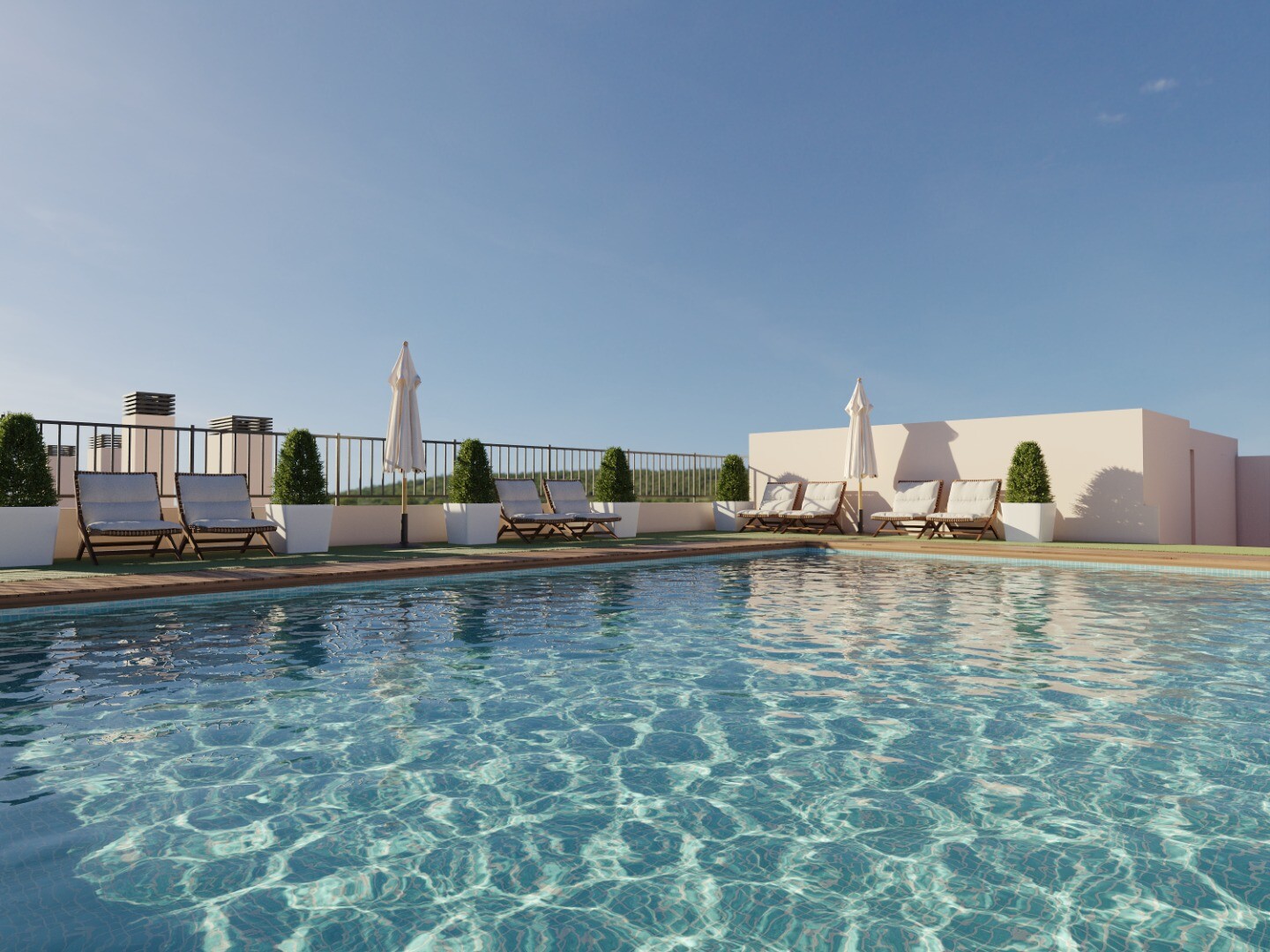 Budynek oferuje wysoką jakość wykończenia, nowoczesny styl oraz instalację przygotowaną pod klimatyzację. Do dyspozycji mieszkańców jest wspólny basen na dachu, a także opcjonalne miejsca parkingowe i komórki lokatorskie.