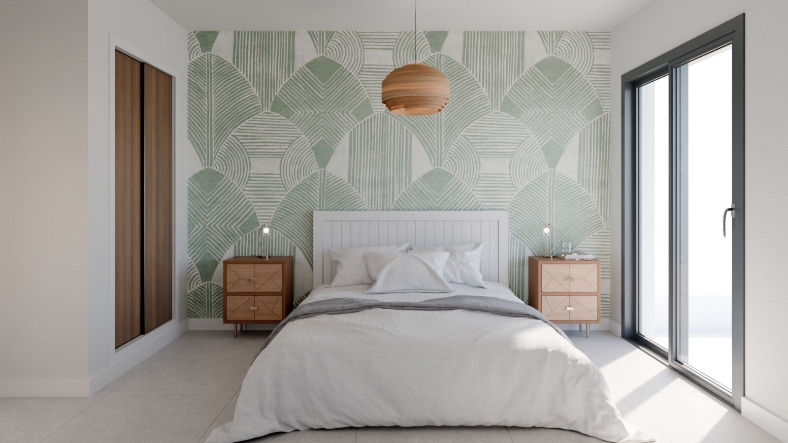 Budynek składający się z 24 apartamentów z 2 sypialniami, 1 łazienką i toaletą dla gości. Wszystkie apartamenty będą wyposażone w w pełni wyposażoną kuchnię z białym laminatem ze sprzętem AGD marki Johnson (piekarnik, kuchenka mikrofalowa, płyta indukcyjna, okap, zmywarka, pralka i lodówko-zamrażarka), meble, rolety elektryczne, domofon oraz w pełn...i wykończone łazienki z szafkami pod umywalkę, lustrami i kabiną prysznicową. Działająca klimatyzacja (zimno/ciepło) z kanałami wentylacyjnymi oraz wbudowane szafy z przesuwanymi drzwiami i systemem cichego domykania. Większość apartamentów posiada miejsce parkingowe w garażu podziemnym, a 12 posiada nawet komórkę lokatorską.