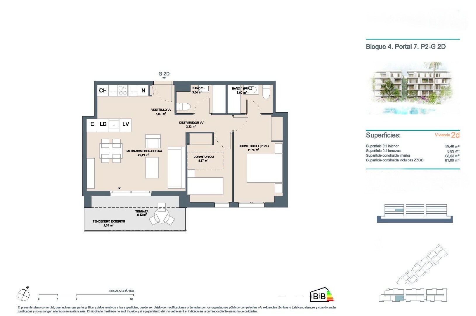 To stylowe, nowo wybudowane mieszkanie w Denii oferuje nowoczesny i wygodny styl życia w doskonałej lokalizacji. Dzięki współczesnemu wzornictwu i wysokiej jakości wykończeniom, ten dom będzie miał 2 sypialnie, które zapewnią przytulną i wszechstronną przestrzeń dla przyszłych mieszkańców. 2 elegancko zaprojektowane łazienki zapewnią komfort i funk...cjonalność dla całej rodziny. Sercem tego mieszkania będzie jasny salon-jadalnia ze zintegrowaną kuchnią, tworząc nowoczesne i funkcjonalne środowisko do spędzania chwil towarzyskich i relaksu. Wbudowane szafy zmaksymalizują przestrzeń do przechowywania, a klimatyzacja kanałowa zapewni optymalny komfort przez cały rok. Podwójne szyby zapewnią izolację akustyczną i termiczną, tworząc cichą i przytulną atmosferę. Mieszkanie o powierzchni 80 metrów kwadratowych oferuje przestronność i komfort w codziennym życiu. Ponadto będzie miało piękny taras o powierzchni 7 metrów kwadratowych, z którego mieszkańcy będą mogli podziwiać panoramiczne widoki na imponujące Montgó. Osiedle będzie mogło pochwalić się wyjątkowym obszarem wspólnym, który będzie obejmował baseny, ogrody oraz wewnętrzne i zewnętrzne obszary wspólne, oferujące miejsca do relaksu i rekreacji. Z miejscem garażowym i komórką lokatorską wliczonymi w cenę, mieszkanie to zapewni dodatkową wygodę przyszłym mieszkańcom. Z widokiem na Montgó i wszystkimi udogodnieniami nowoczesnego kompleksu mieszkalnego, to zupełnie nowe mieszkanie w Denii będzie idealnym wyborem dla osób poszukujących wygodnego i wyrafinowanego stylu życia na pięknym wybrzeżu Costa Blanca.