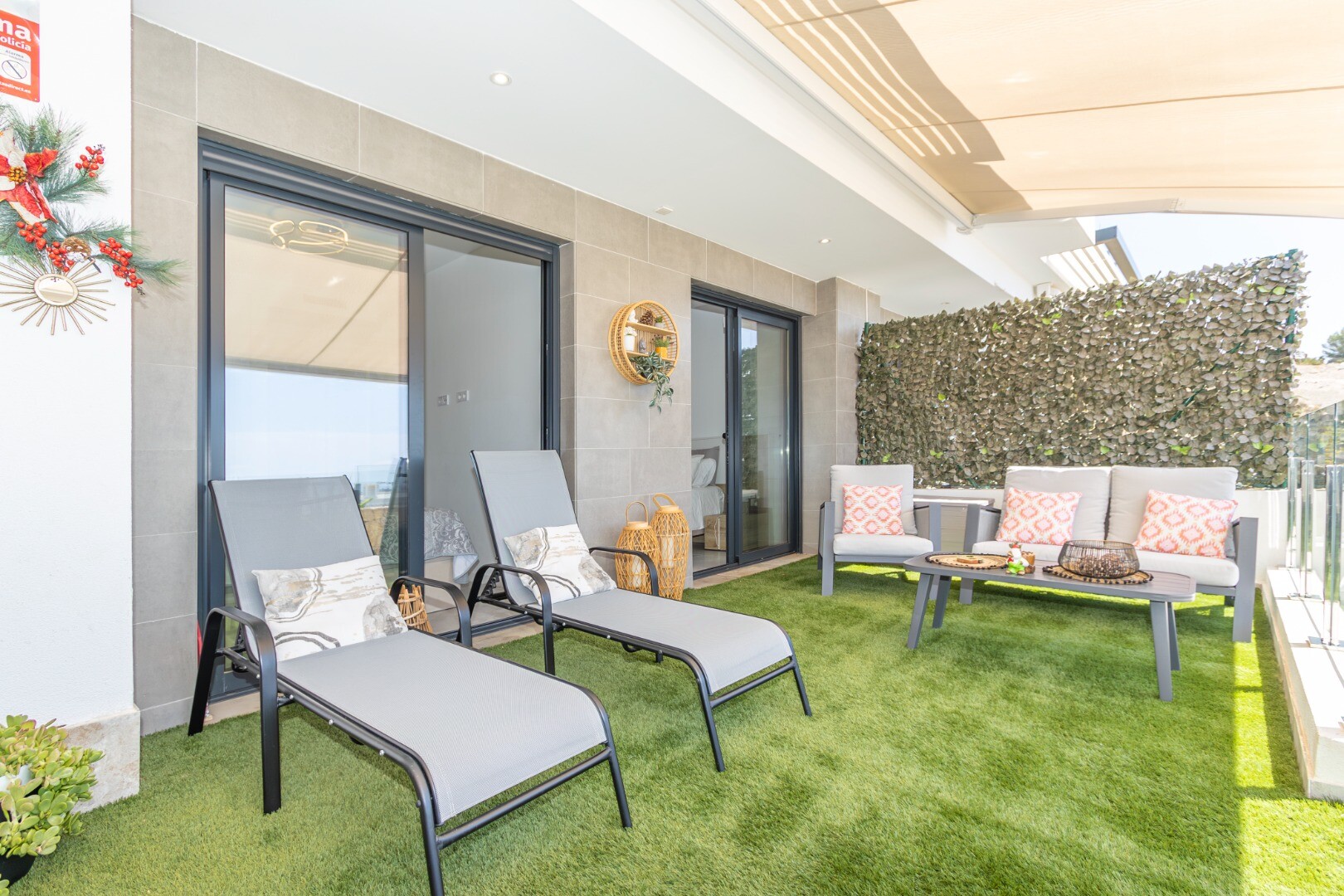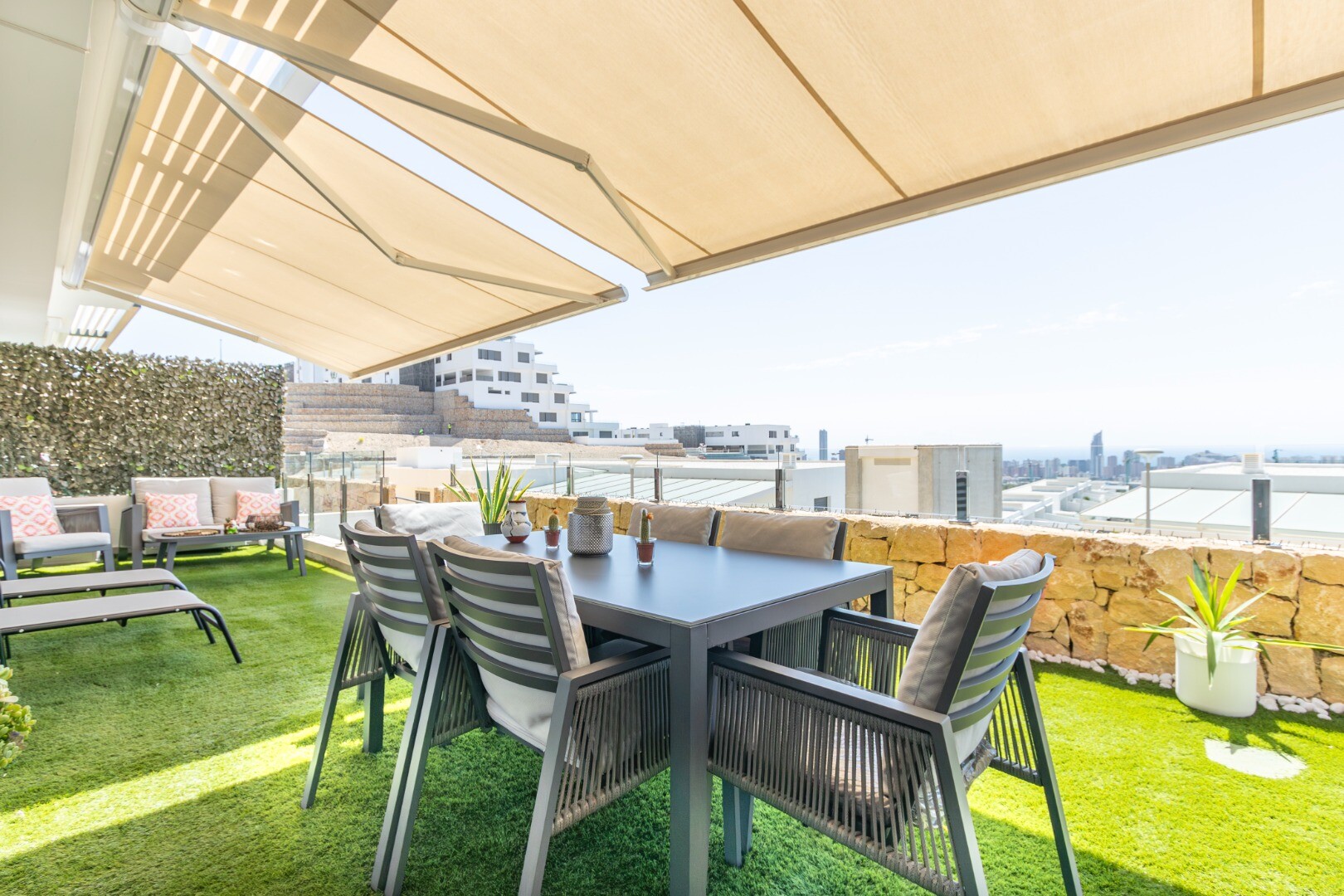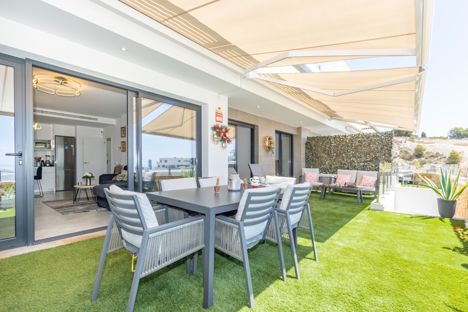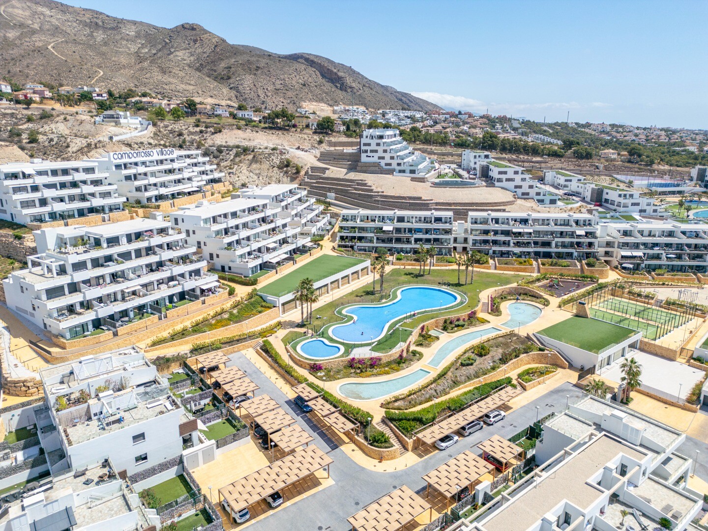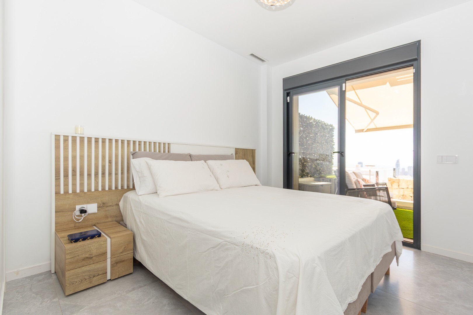 To nowoczesne mieszkanie w Finestrat, w prowincji Alicante, oferuje luksusowe i komfortowe życie. Zbudowane w 2022 roku, posiada dwie przestronne sypialnie, obie z bezpośrednim dostępem do spektakularnego tarasu, z którego roztacza się oszałamiający widok na morze i miasto Benidorm. Sypialnie wyposażone są w wbudowane szafy oraz dwie pełne łazienki..., z których jedna jest en suite, obie z kabinami prysznicowymi. Duży salon połączony jest z nowoczesną kuchnią, w pełni wyposażoną w najnowsze urządzenia, tworząc idealną przestrzeń do rodzinnego wypoczynku. Dodatkowo, nieruchomość posiada centralną klimatyzację, zaawansowaną automatykę domową oraz inteligentny system alarmowy dla dodatkowego bezpieczeństwa.