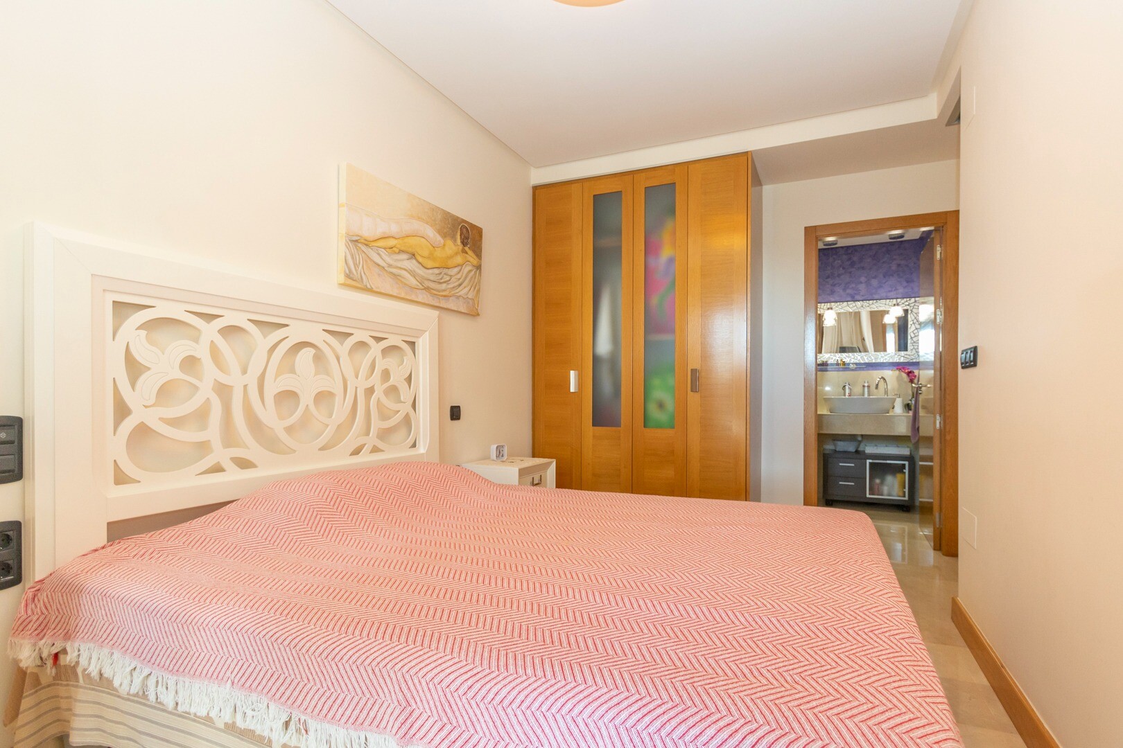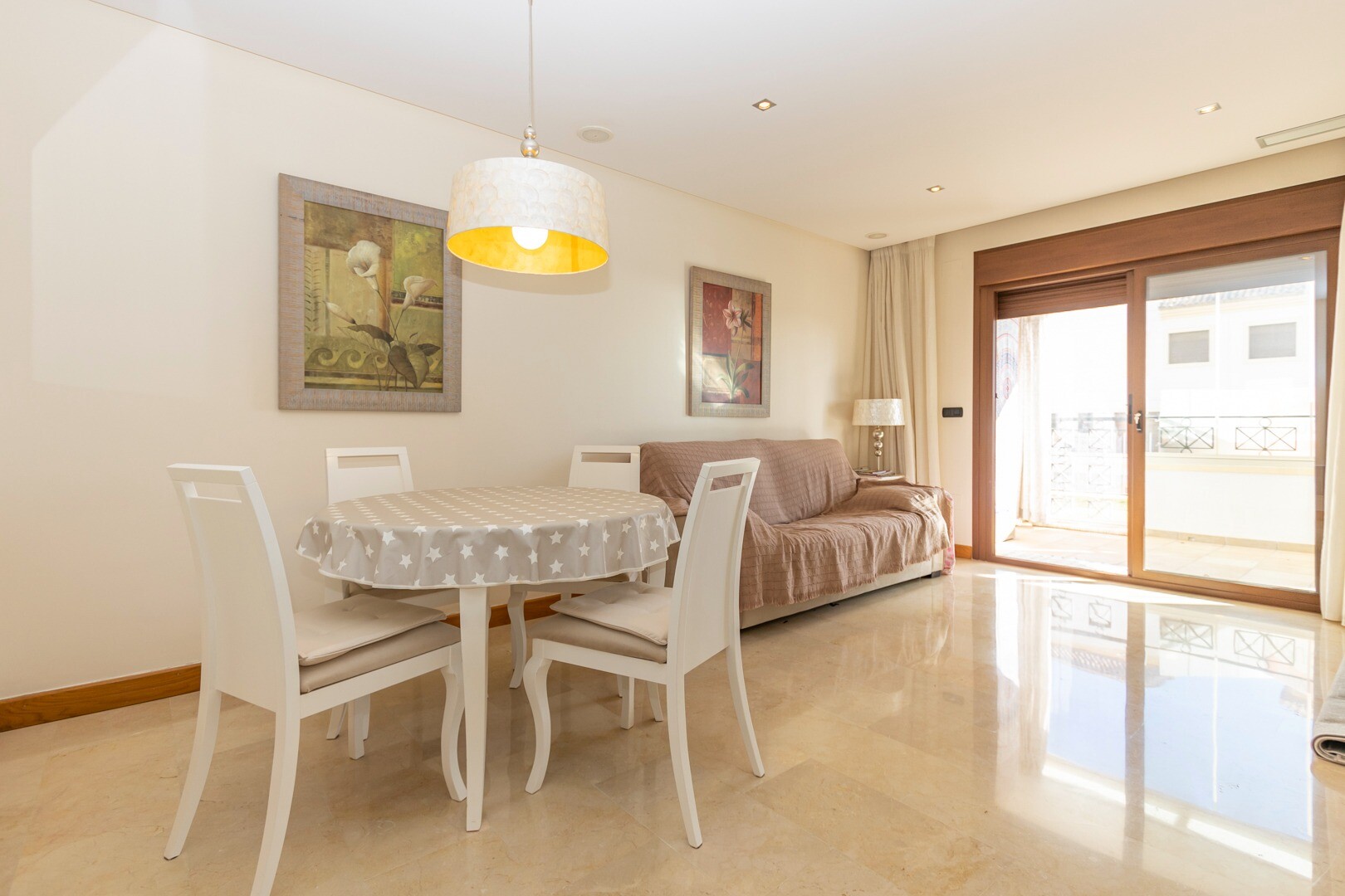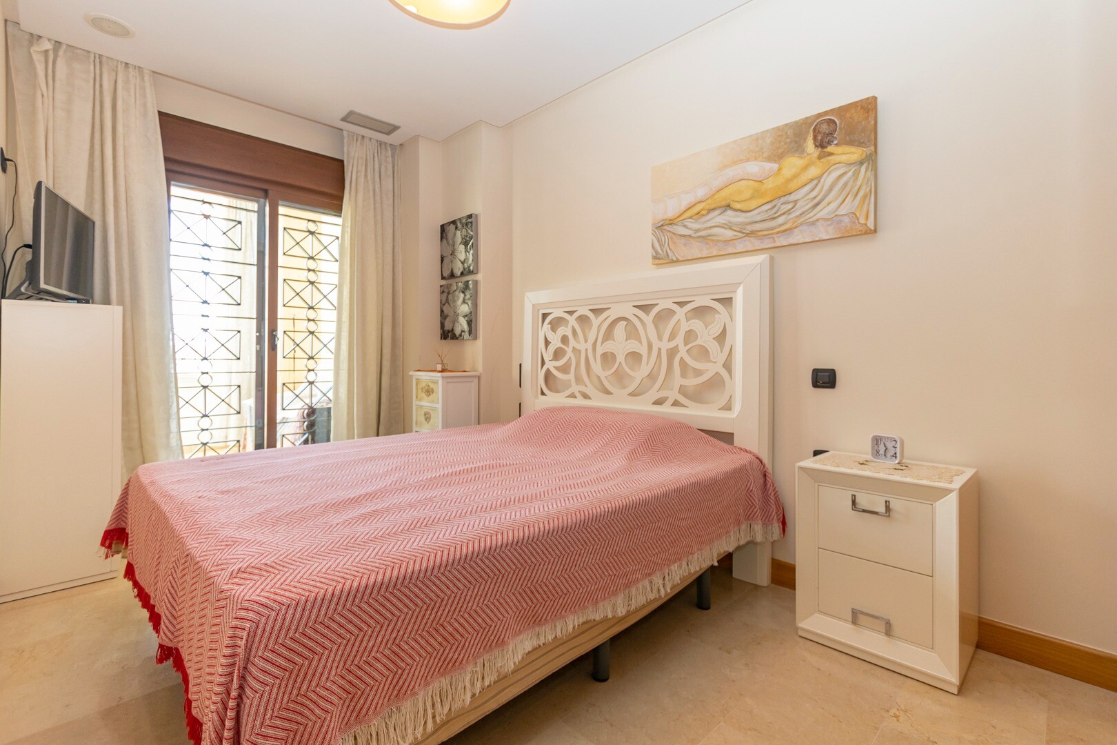 Mieszkanie na parterze, na zamkniętym osiedlu mieszkaniowym, z bezpośrednim dostępem do ogrodu z basenem i ogrodami. Dom składa się z 2 sypialni i 2 łazienek, z niezależną kuchnią z galerią i patio, salonu i jadalni oraz 2 sypialni z wyjściem na duży przeszklony taras. Osiedle zostało zbudowane z najwyższej jakości materiałów i wykończeń, dom posia...da rolety z napędem silnikowym, system automatyki domowej, sejf, klimatyzację kanałową i wiele innych szczegółów. Osiedle posiada duży basen letni i basen zimowy, saunę, siłownię, kort do paddle tenisa, minigolf i piękny ogród, z którego mogą korzystać sąsiedzi. W cenie miejsce postojowe w podziemiach budynku. Dom sprzedawany jest ze wszystkimi meblami i sprzętem AGD.