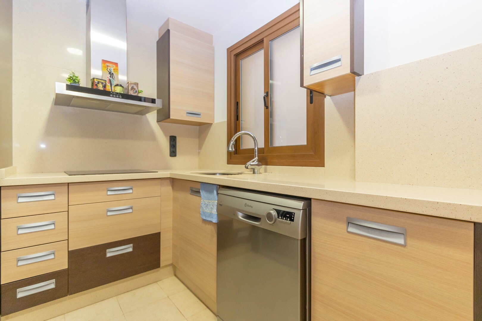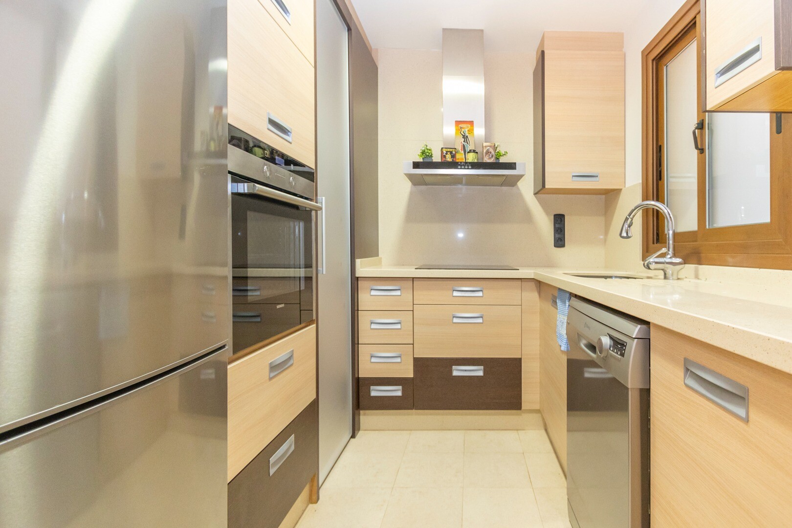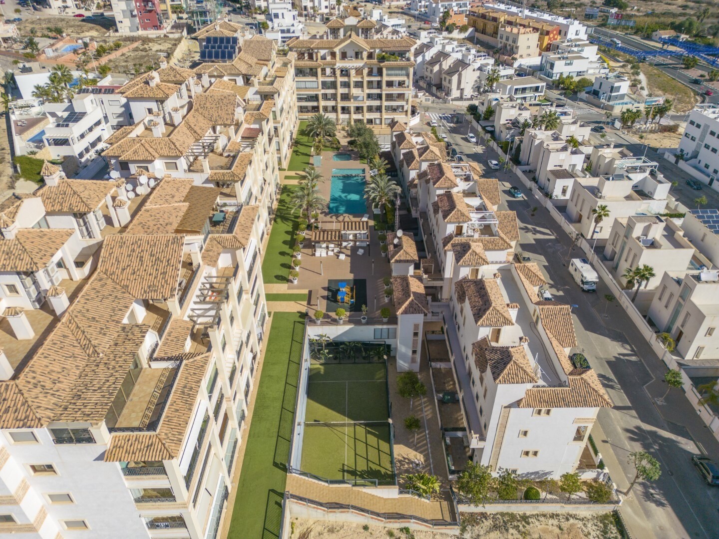 Mieszkanie na parterze, na zamkniętym osiedlu mieszkaniowym, z bezpośrednim dostępem do ogrodu z basenem i ogrodami. Dom składa się z 2 sypialni i 2 łazienek, z niezależną kuchnią z galerią i patio, salonu i jadalni oraz 2 sypialni z wyjściem na duży przeszklony taras. Osiedle zostało zbudowane z najwyższej jakości materiałów i wykończeń, dom posia...da rolety z napędem silnikowym, system automatyki domowej, sejf, klimatyzację kanałową i wiele innych szczegółów. Osiedle posiada duży basen letni i basen zimowy, saunę, siłownię, kort do paddle tenisa, minigolf i piękny ogród, z którego mogą korzystać sąsiedzi. W cenie miejsce postojowe w podziemiach budynku. Dom sprzedawany jest ze wszystkimi meblami i sprzętem AGD.