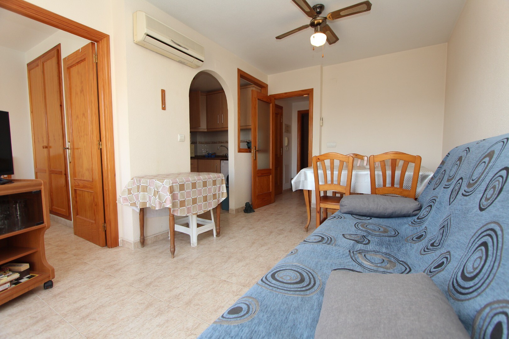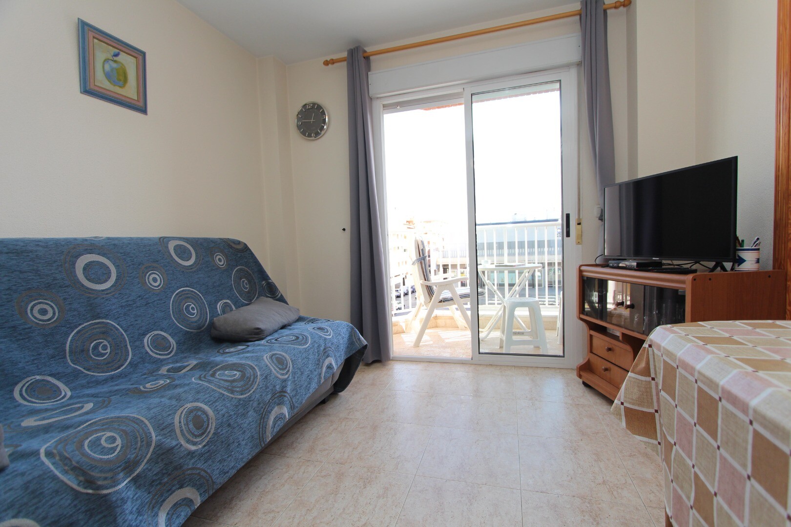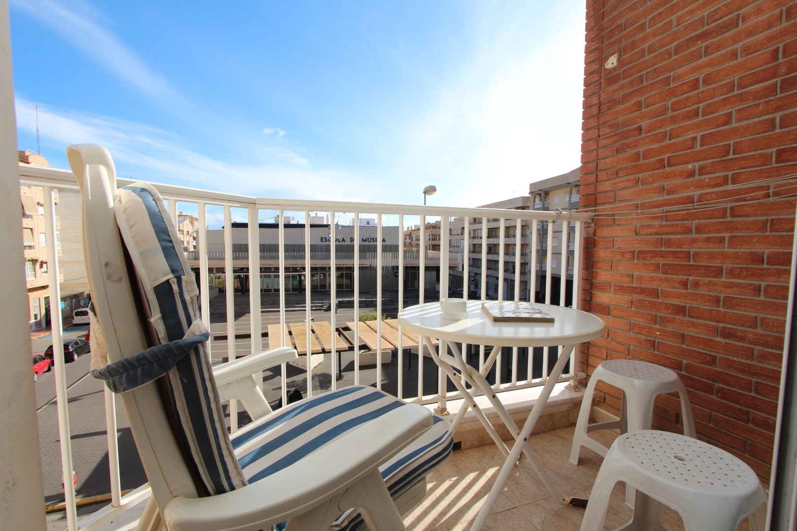 Apartament położony w centrum, 300 metrów od wybrzeża i w odległości spaceru od wszystkich możliwych udogodnień. Apartament składa się z dwóch sypialni, w tym przestronnej sypialni głównej i łazienki. Z salonu jest wyjście na taras z otwartym widokiem na szkołę muzyczną. Posiada wspólny taras na dachu, na którym znajduje się również pomieszczenie g...ospodarcze. Na lotnisko w Alicante można dojechać w około 30 minut.
