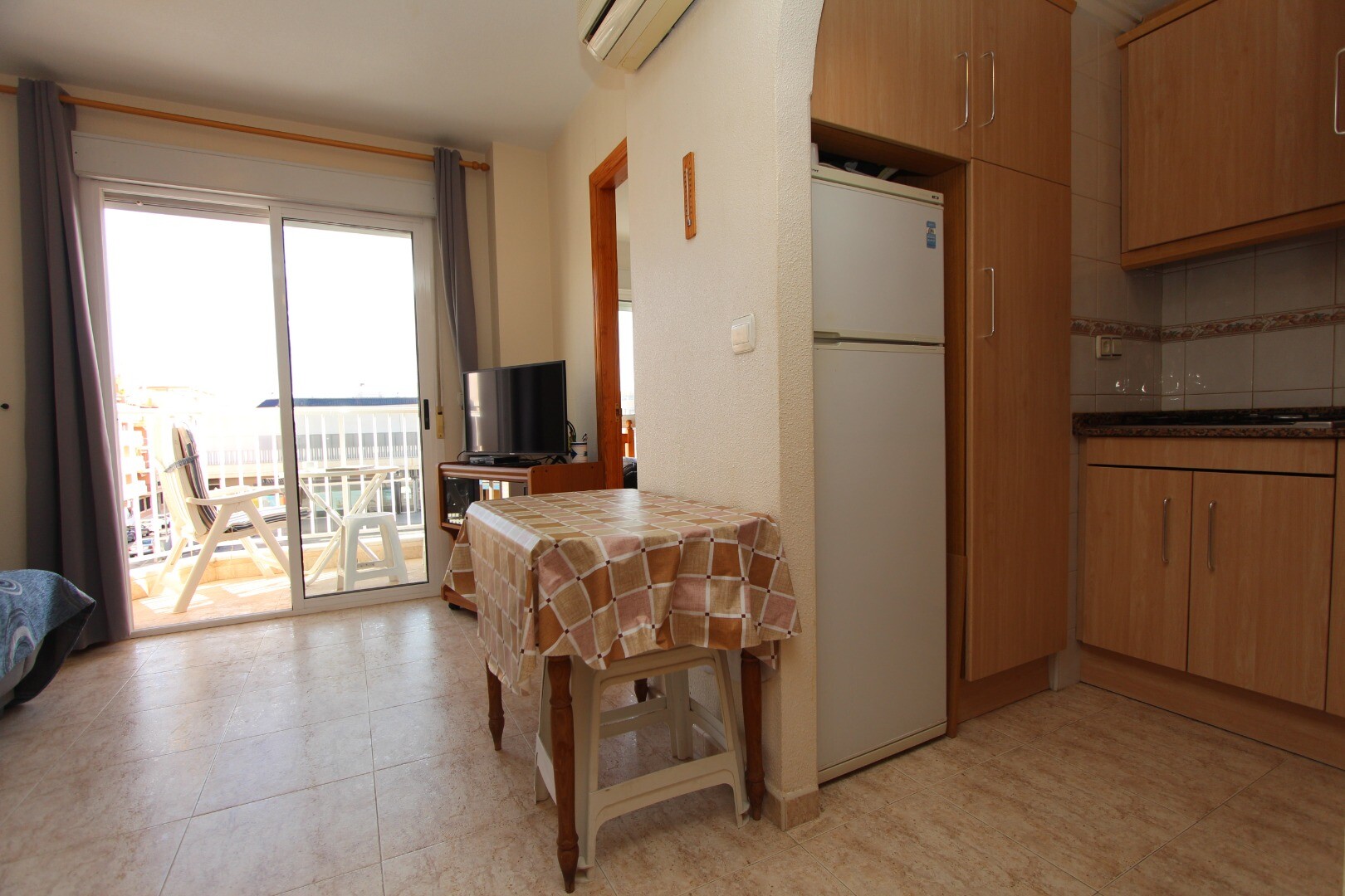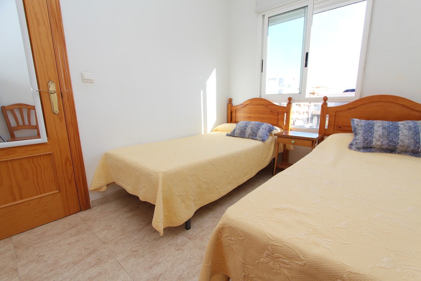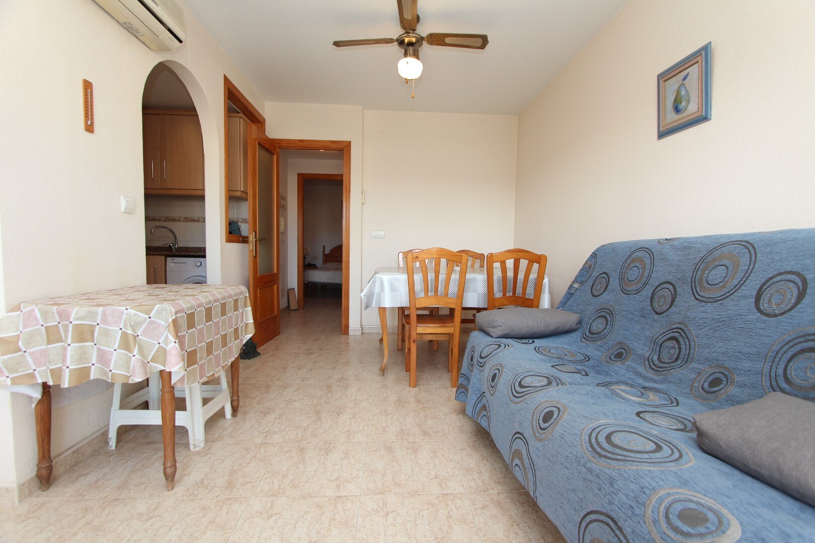 Apartament położony w centrum, 300 metrów od wybrzeża i w odległości spaceru od wszystkich możliwych udogodnień. Apartament składa się z dwóch sypialni, w tym przestronnej sypialni głównej i łazienki. Z salonu jest wyjście na taras z otwartym widokiem na szkołę muzyczną. Posiada wspólny taras na dachu, na którym znajduje się również pomieszczenie g...ospodarcze. Na lotnisko w Alicante można dojechać w około 30 minut.