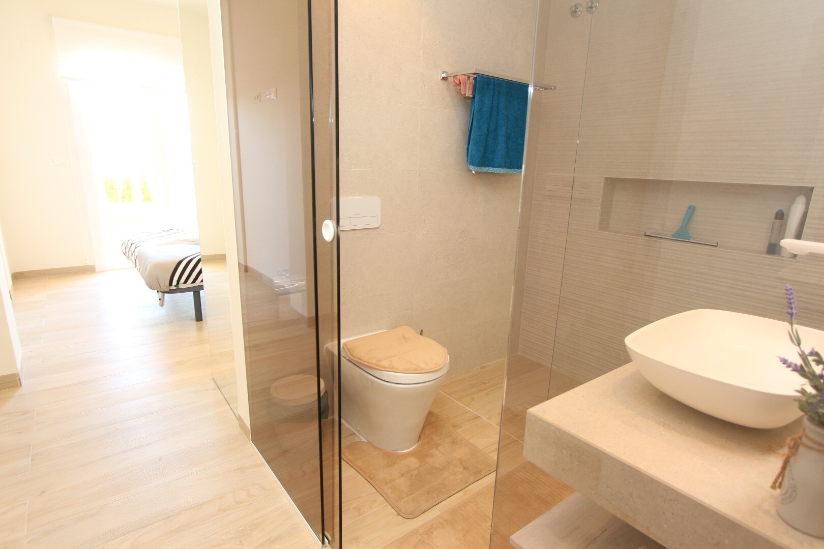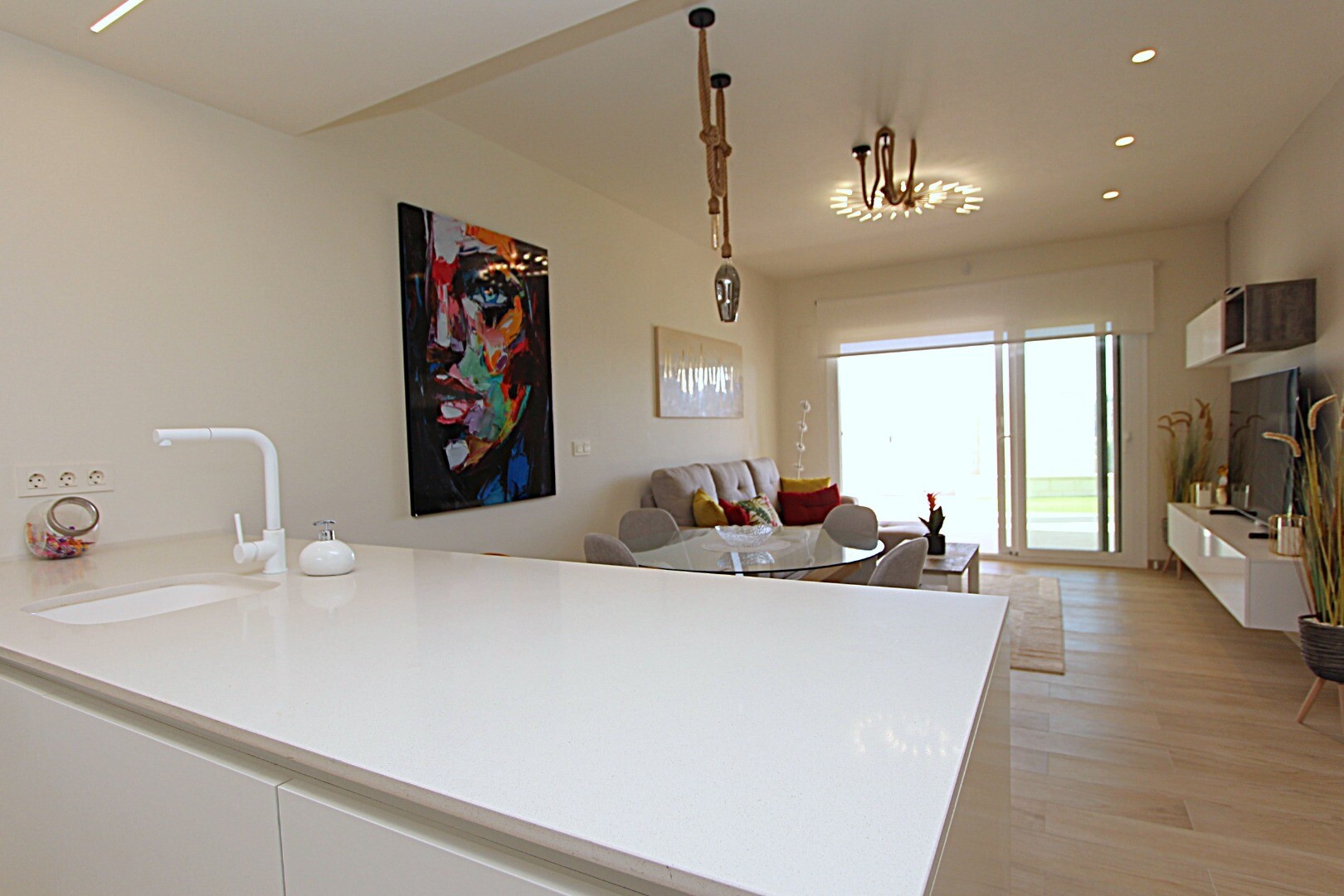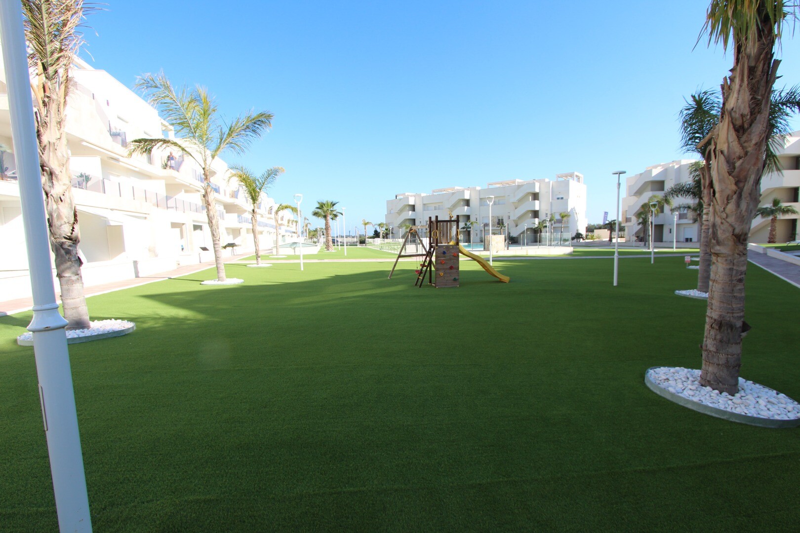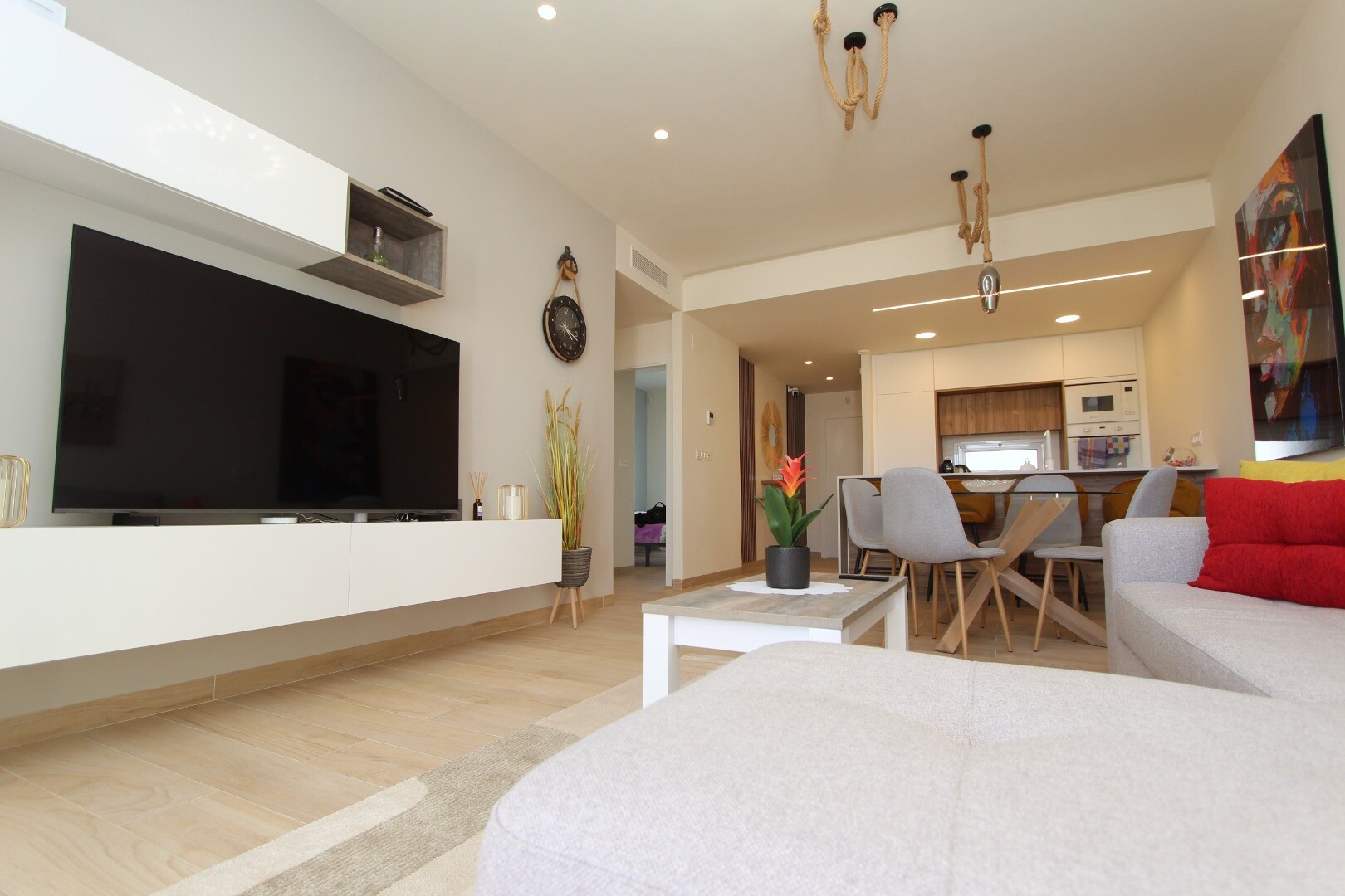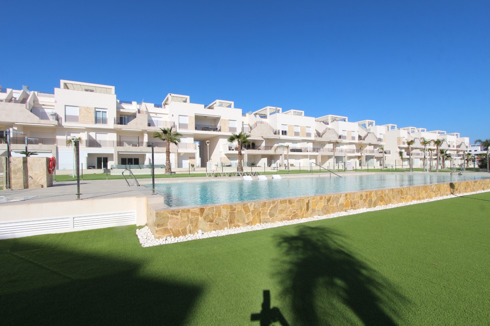 Zupełnie nowe mieszkanie na parterze w osiedlu ÁREA BEACH II w El Raso - Guardamar del Segura. Ta rezydencja położona jest w prestiżowym osiedlu ÁREA BEACH II w El Raso, 7 minut jazdy samochodem od 15-kilometrowej złotej piaszczystej plaży Guardamar del Segura. Ten dom oferuje wyjątkowy styl życia, wyposażony we wszelkie możliwe udogodnienia. Zupeł...nie nowy, w pełni umeblowany wysokiej jakości meblami i utrzymany w nowoczesnym stylu. Składa się z dwóch sypialni, jedna z łazienką, obie łazienki wyposażone są w wysokiej jakości akcesoria i nowoczesne detale, w pełni wyposażona otwarta kuchnia ze wszystkimi możliwymi urządzeniami kuchennymi (okap, płyta ceramiczna, piekarnik, kuchenka mikrofalowa, lodówka z zamrażarką) , zmywarka, pralka i suszarka), elektryczne rolety i klimatyzacja (ciepło/zimno) z systemem airzone. Cena obejmuje również podziemne, prywatne miejsce parkingowe. Jeden z dwóch tarasów wychodzi na basen i piękny wspólny ogród z siłownią, sauną, jacuzzi, placem zabaw dla dzieci i boiskiem do gry w bule. W odległości krótkiego spaceru od rezydencji znajduje się cotygodniowy niedzielny „Targ Cytrynowy” oraz centrum handlowe z licznymi restauracjami, małym supermarketem, bankomatem i przystankiem autobusowym, z którego można dojechać autobusem wahadłowym na plażę lub do centrum Guardamar del Aby iść bezpiecznie. Na lotnisko w Alicante można łatwo dojechać samochodem w około 40 minut drogą AP7 lub N332.