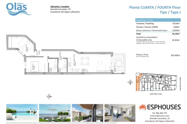 Edificio Olas cieszy się uprzywilejowaną lokalizacją, blisko plaży i w otoczeniu szerokiej gamy usług i udogodnień, takich jak restauracje, sklepy, supermarkety i tereny rekreacyjne. Guardamar del Segura, znane z pięknych piaszczystych plaż i naturalnego środowiska, oferuje spokojny i relaksujący styl życia, nie rezygnując z niezbędnych udogodnień w zasięgu ręki.