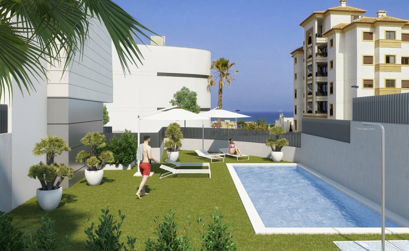 NOWY KOMPLEKS MIESZKANIOWY Z WIDOKAMI NA MORZE W GUARDAMAR DEL SEGURA Kompleks mieszkaniowy New Build składa się z 3 bloków mieszkalnych i penthousów, z których każdy oferuje 9 jednostek z 3 lub 4 sypialniami ze wspólnym basenem i widokiem na morze w Guardamar del Segura. Budynki zostały zaprojektowane tak, aby oferować piękne widoki na Morze Śródz...iemne i jak najlepiej wykorzystać klimat i naturalne światło. Kompleks z komunalnym basenem i terenami zielonymi, a także salą gimnastyczną, aby zapewnić wyjątkowe doświadczenie dla Ciebie i Twojej rodziny. Opcjonalne miejsce parkingowe i pomieszczenie do przechowywania są dostępne za dodatkową opłatą. Każdy dom posiada 3 lub 4 sypialnie i 2 lub 3 łazienki, otwarte przestrzenie życiowe z zintegrowanymi kuchniami, a także przestronne tarasy. Domy na parterze posiadają opcjonalny prywatny basen, a domy typu penthouse mają duże okna z najlepszymi widokami na wybrzeże, duże tarasy i solarium, gdzie można mieć prywatny basen, kuchnię lub jacuzzi. Kompleks położony zaledwie 5 minut od plaż Guardamar del Segura, w dzielnicy mieszkalnej otoczonej parkami i przyrodą. Wszystkie usługi i udogodnienia centrum miasta będą zaledwie kilka kroków od Twojego nowego domu. Guardamar del Segura to miasto położone na Costa Blanca South. Z jego 11 kilometrów naturalnej plaży i jego duży las sosnowy. Guardamar jest spokojnym miastem do życia w, ma wszystkie usługi przez cały rok, takich jak restauracje, bary, sklepy, banki, miejsca do wypoczynku, itp. W każdą środę, na centralnych ulicach miasta, organizowany jest targ, na który udaje się wiele osób, aby kupić produkty takie jak żywność, odzież, meble, zwierzęta itp. Jest to wielkie roszczenie i mieszkańcy okolicznego miasta przyjeżdżają do Guardamar w każdą środę, aby odwiedzić rynek. Guardamar del Segura ma duży port z działalnością przez cały rok, ma duże centrum sportowe z paddle tennis, tenis, piłka nożna i duży podgrzewany basen, który działa przez cały rok. Posiada również bibliotekę, gdzie jest darmowe wifi i komputery. Guardamar del Segura znajduje się zaledwie 20 km od lotniska Alicante - Elche (El Altet), gdzie codziennie odbywa się wiele lotów z połączeniami do głównych miast europejskich, ze względu na zapotrzebowanie na turystów na Costa Blanca.