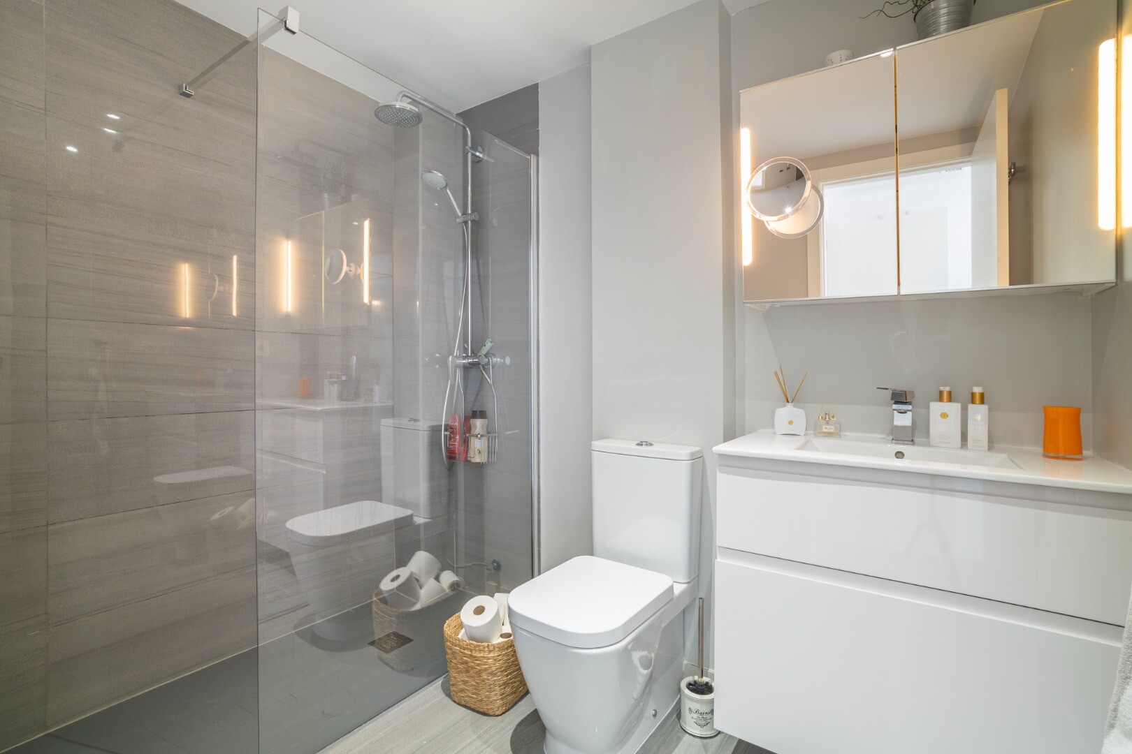 Chcielibyśmy zaprezentować Państwu tę nowoczesną i przestronną nieruchomość z 3 sypialniami z wbudowanymi szafami, 2 łazienkami (jedna z nich z ł...azienką), salonem z jadalnią i kuchnią z dostępem do dużego tarasu, z którego można podziwiać frontalne widoki na Morze Śródziemne.