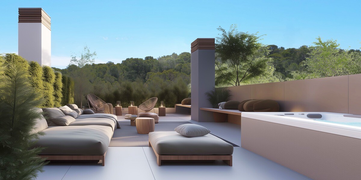 Każdy dom został zaprojektowany z myślą o maksymalizacji przestrzeni, światła i komfortu. Przestronne tarasy potęgują doz...nania na świeżym powietrzu, a penthousy wyposażone są w prywatne solaria, idealne do cieszenia się słońcem, widokami i spokojem otoczenia.