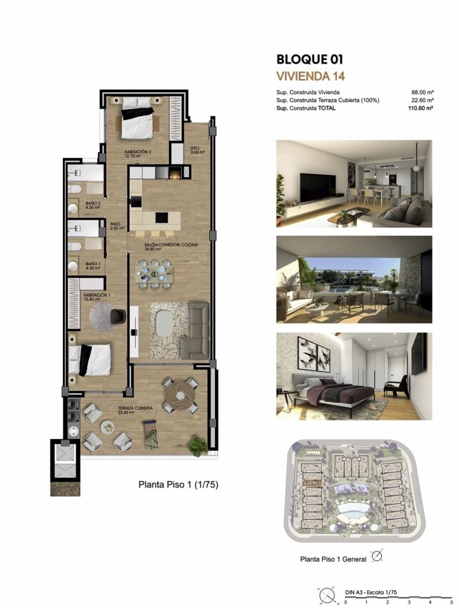 Ekskluzywne apartamenty w Font del Llop Golf Resort z dwiema lub trzema sypialniami, każda z dwiema łazienkami, schowkiem podziemnym i miejscem parkingowym. Dodatkowe 35 miejsc parkingowych jest dostępnych w cenie 15 000 euro. Przy zakupie apartamentu obowiązuje 10% VAT, a po jego zakupie 21% VAT. Apartamenty wyposażone są w klimatyzację z regulacj...