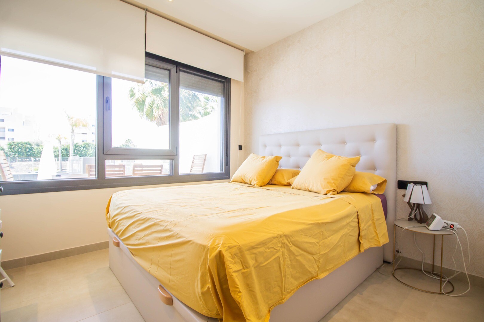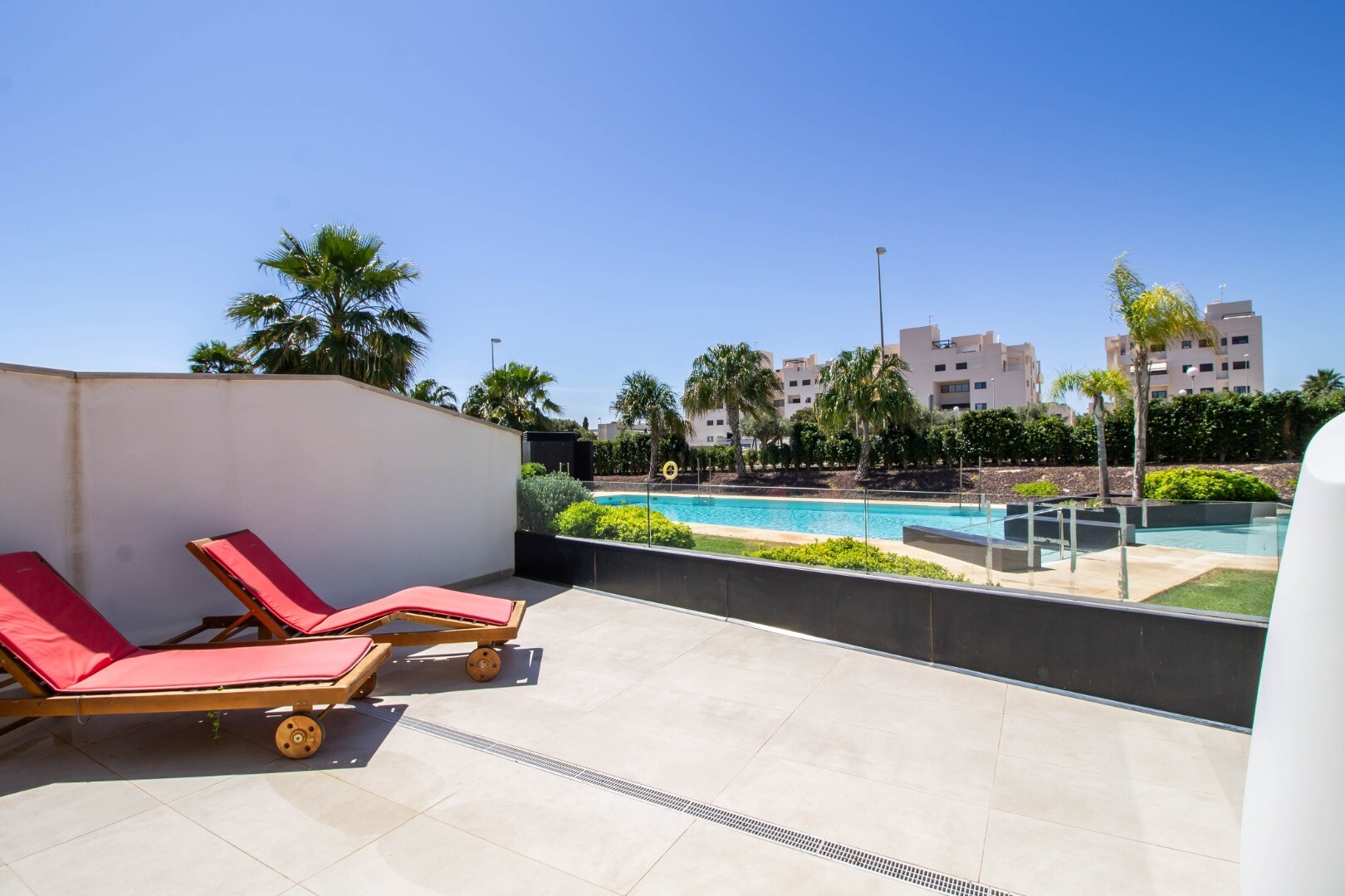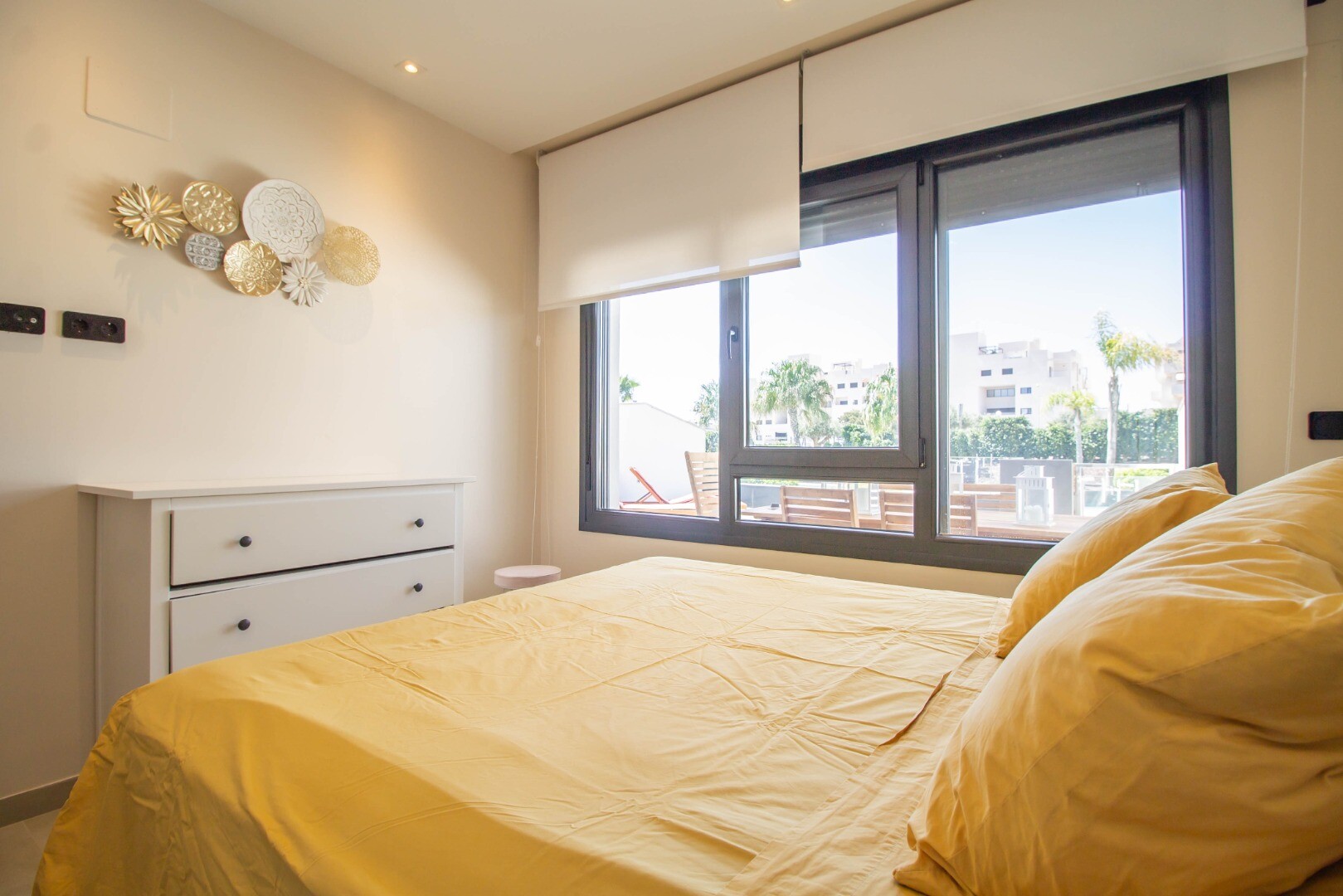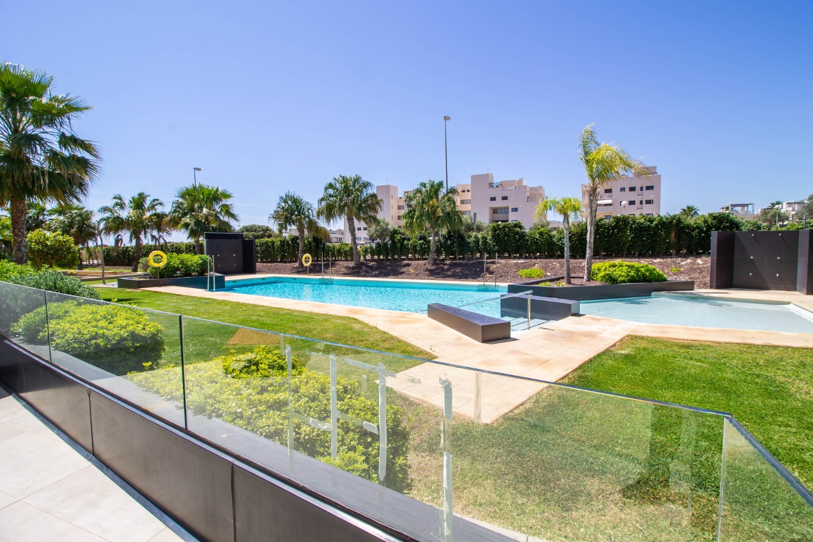 Luksusowy apartament w Los Dolses- Orihuela Costa z dużym tarasem, który ma bezpośredni dostęp do wspólnego ogrodu z 2 basenami, częścią wspólną ze spa i siłownią.