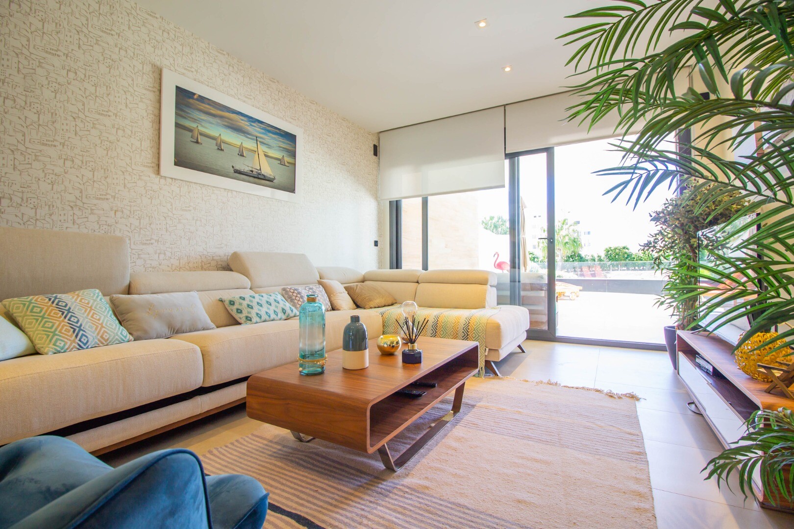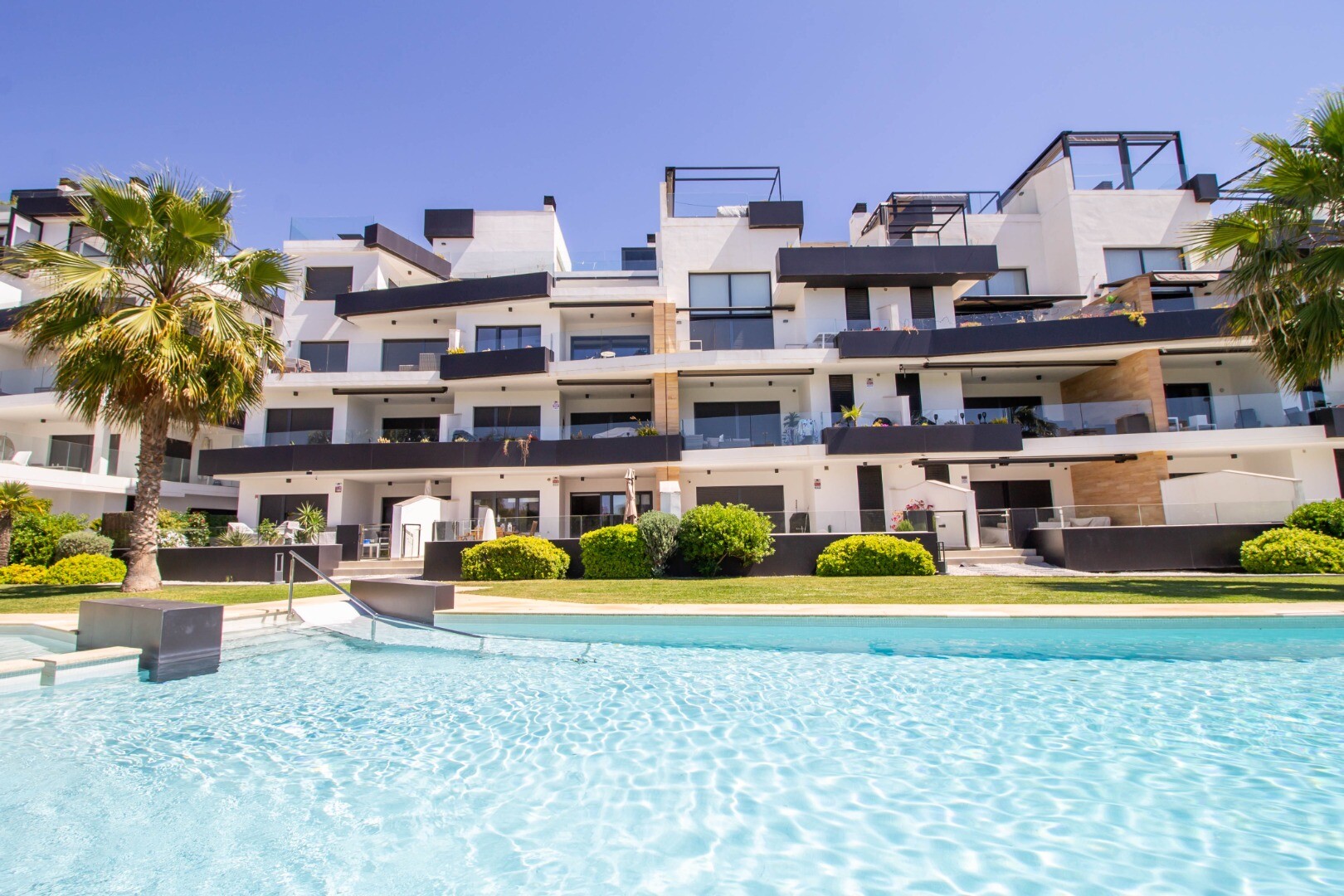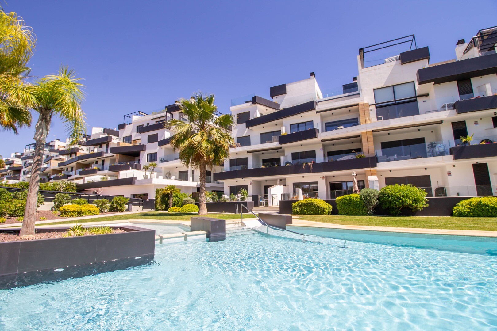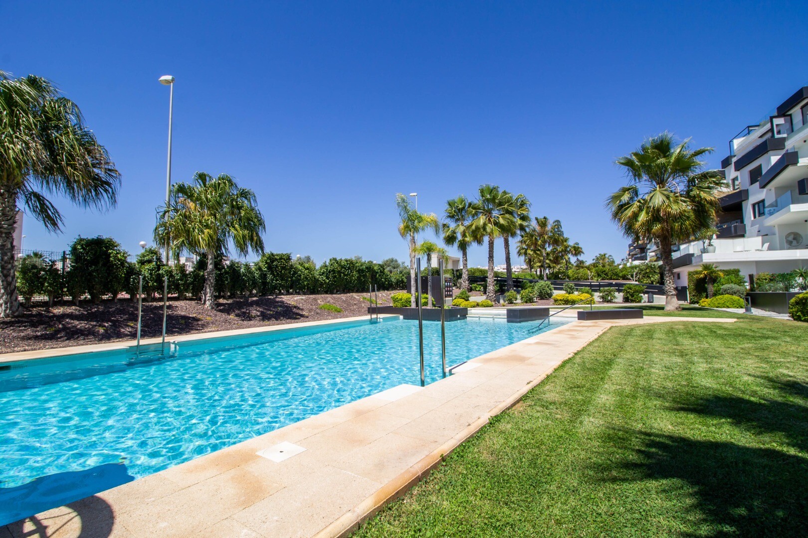 Luksusowy apartament w Los Dolses- Orihuela Costa z dużym tarasem, który ma bezpośredni dostęp do wspólnego ogrodu z 2 basenami, częścią wspólną ze spa i siłownią.