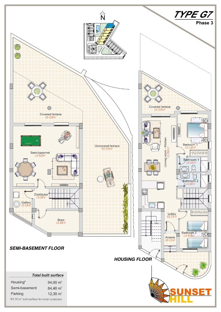 Rezydencja Sunset Hills położona jest w uprzywilejowanej okolicy, która wciąż się rozwija, blisko plaż Torrevieja, Punta Prima i Playa Flamenca. W okolicy znajdują się wszystkie możliwe udogodnienia w zasięgu ręki: supermarkety, sklepy, restauracje, bary, bankomaty, centrum handlowe na świeżym powietrzu La Zenia, szpital uniwersytecki w Torrevieja, pola golfowe. Dzięki pobliskiemu AP-7, istnieje bardzo dobre połączenie z lotniskami w Alicante i Murcji w około 40 minut.