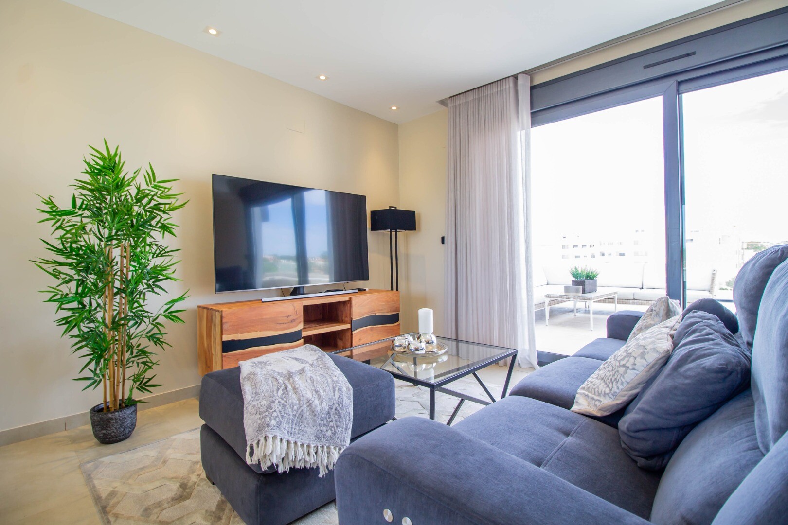 Ciesz się częścią wspólną z 2 odkrytymi basenami połączonymi z terenami zielonymi, siłownią i krytym spa. Wybudowany w 2018 roku przez prestiżowego dewelopera TRIVEE, apartament jest w pełni wyposażony w meble i sprzęt AGD. Mieszkania wyposażone są w sprzęt AGD najnowszej generacji. Mieszkanie jest sprzedawane w pełni umeblowane. Wystrój i materiał...y tej rezydencji wyróżniają się jakością i wzornictwem, nie tracąc przy tym śródziemnomorskiego stylu. Luksusowa rezydencja „Muna" znajduje się w urbanizacji Los Dolses, 2,2 km od pola golfowego Villamartín, 1 km od centrum handlowego La Zenia Boulevard i 2,4 km od plaży La Zenia. Otoczona wszystkimi niezbędnymi usługami (siłownia, supermarket, restauracje, banki...). Jest to bardzo poszukiwany obszar.
