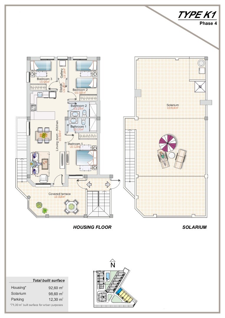 Inwestycja składać się będzie z 50 domów różnej typologii. Domy powstaną w czterech etapach. Faza I dotyczy zespołu 8 mieszkań, z czego 4 znajdują się na parterze z półpiwnicą, które w zasadzie przeznaczone są na garaż, ale w których można wykonać przegrodę i mają powierzchnię mieszkalną około 24 m2. m2, a na ostatnim piętrze 4 mieszkania z solariu...m. Faza II to budynek 4-kondygnacyjny, w którym na każdym piętrze znajdują się 4 mieszkania, łącznie 16 mieszkań, a do każdego przynależy komórka lokatorska. Faza III i IV będą podobne do Fazy I. Dolne kondygnacje posiadają własny garaż z automatycznymi bramami segmentowymi sterowanymi na pilota. Projekt będzie obejmował część socjalną na świeżym powietrzu, z miejscem do grillowania i toaletami oraz dwie części socjalne w pomieszczeniach zamkniętych, jedną przystosowaną do organizacji spotkań, wyposażoną w telewizor, lodówkę itp., a drugą prawdopodobnie będzie siłownia. Domy dostarczane są z klimatyzacją kanałową i zainstalowanym rekuperatorem, w pełni wykończonymi łazienkami oraz sprzętem kuchennym. Rezydencja Sunset Hills położona jest w uprzywilejowanej okolicy, która wciąż się rozwija, blisko plaż Torrevieja, Punta Prima i Playa Flamenca. W okolicy znajdują się wszystkie możliwe udogodnienia w zasięgu ręki: supermarkety, sklepy, restauracje, bary, bankomaty, centrum handlowe na świeżym powietrzu La Zenia, szpital uniwersytecki w Torrevieja, pola golfowe. Dzięki pobliskiemu AP-7, istnieje bardzo dobre połączenie z lotniskami w Alicante i Murcji w około 40 minut.