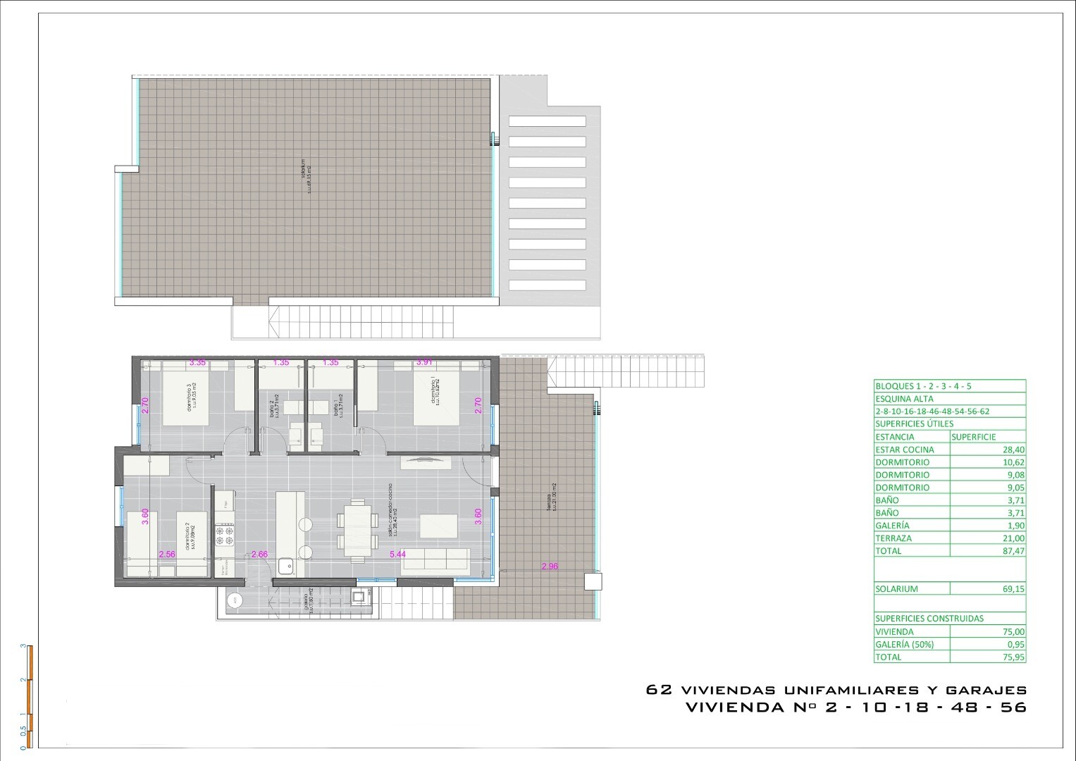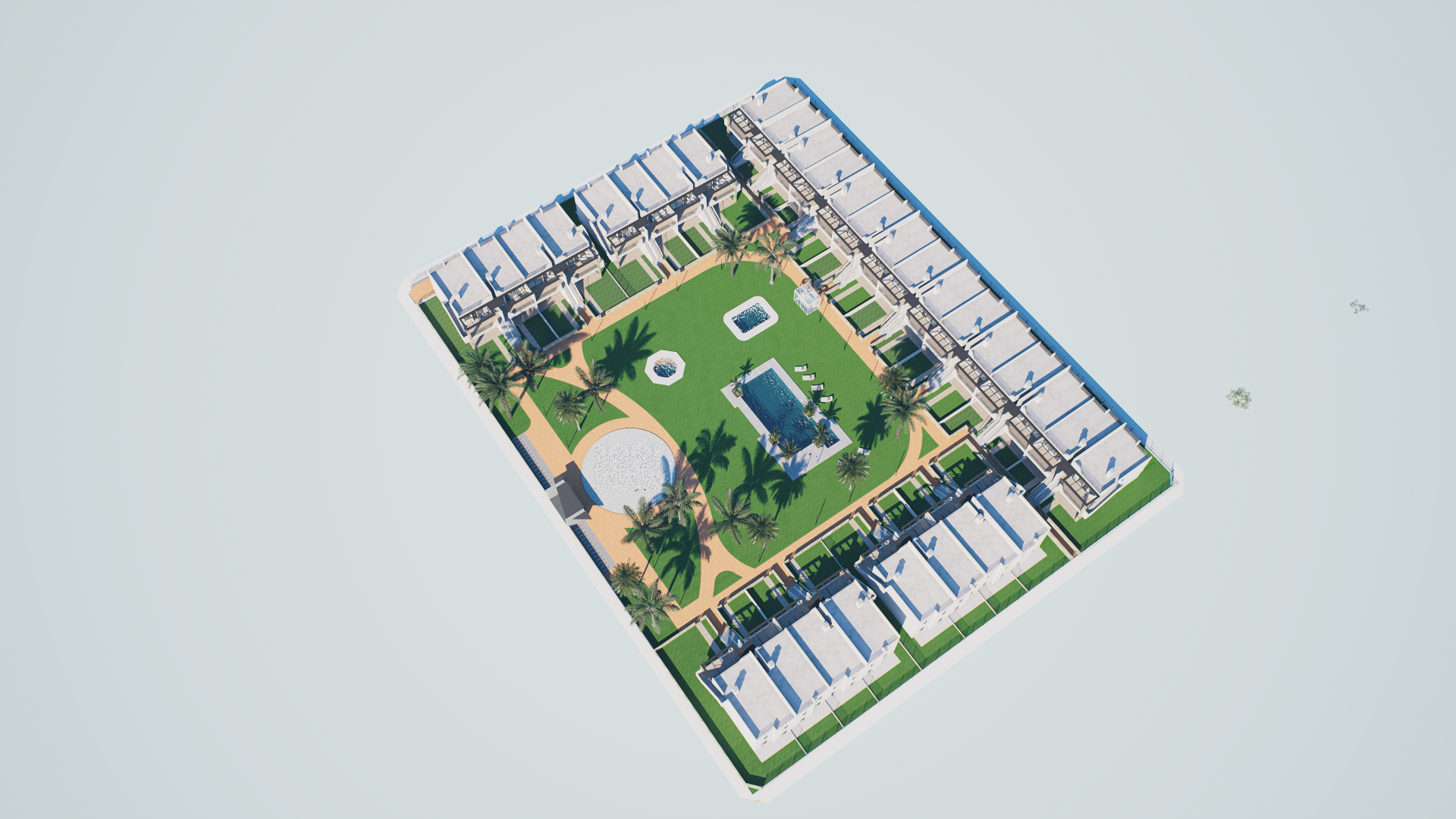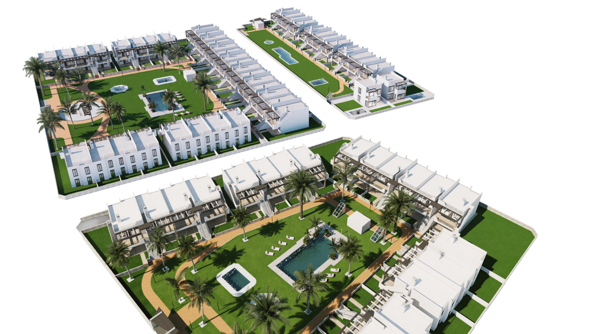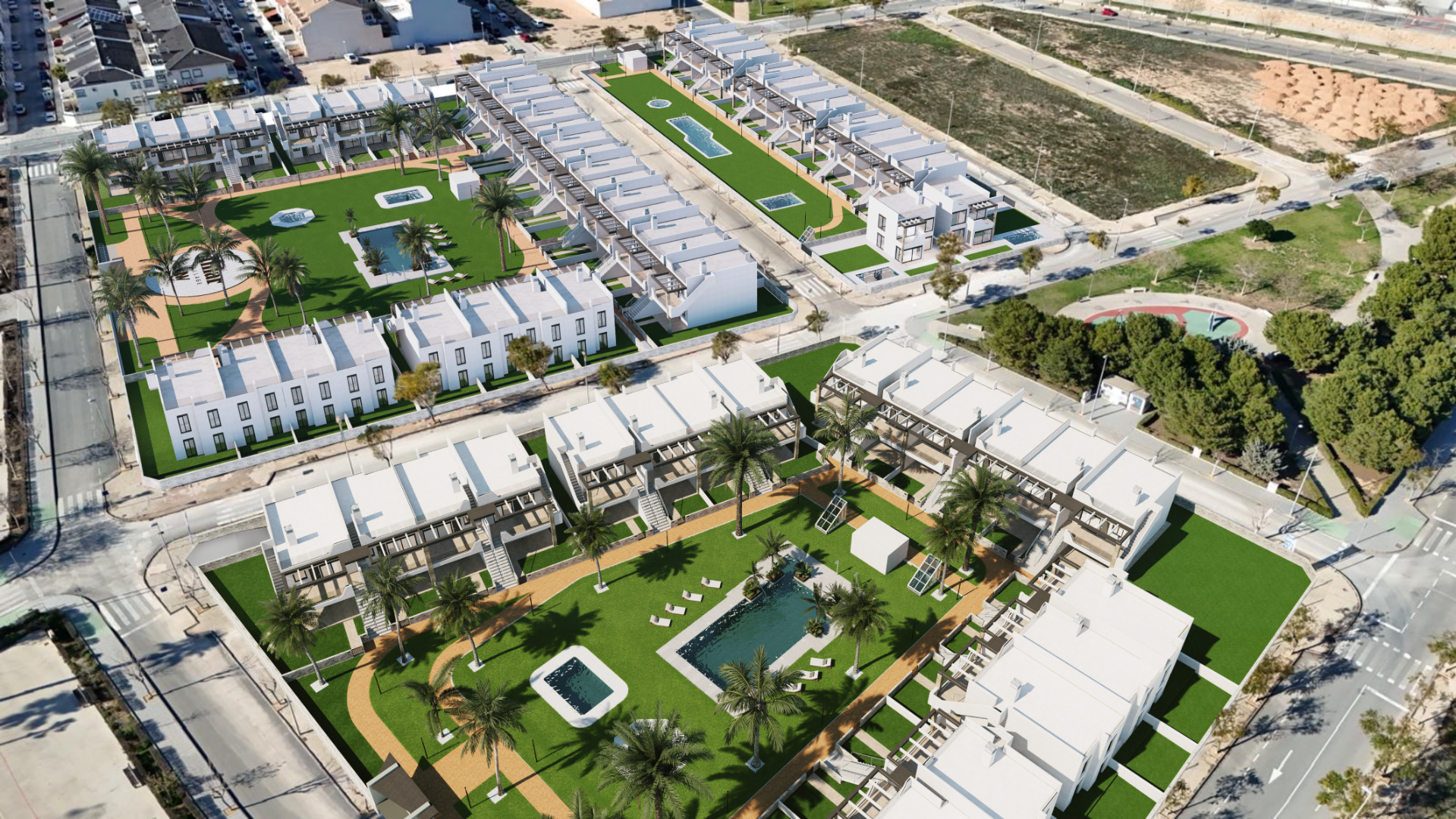 Osiedle mieszkaniowe składające się z pięciu bloków, w którym znajduje się łącznie 62 apartamenty. Parter posiada ogród, a pierwsze piętro oferuje prywatny taras na dachu z przygotowaną kuchnią na świeżym powietrzu. Kompleks szczyci się pięknym wspólnym ogrodem i basenem, a w piwnicy znajduje się również siłownia. Pilar de la Horadada to typowe his...zpańskie miasteczko, tętniące życiem przez cały rok. Wszystkie możliwe udogodnienia znajdują się w zasięgu spaceru. Z biegiem lat Pilar de la Horadada stało się międzynarodową społecznością dzięki łatwemu dojazdowi oraz bliskości morza i pól golfowych. Apartamenty dostarczane są z wykończonymi łazienkami, sprzętem AGD w kuchni, klimatyzacją i parkingiem podziemnym. Lotniska w Murcji i Alicante oddalone są odpowiednio o około 30 minut (Murcia) i 50 minut (Alicante).