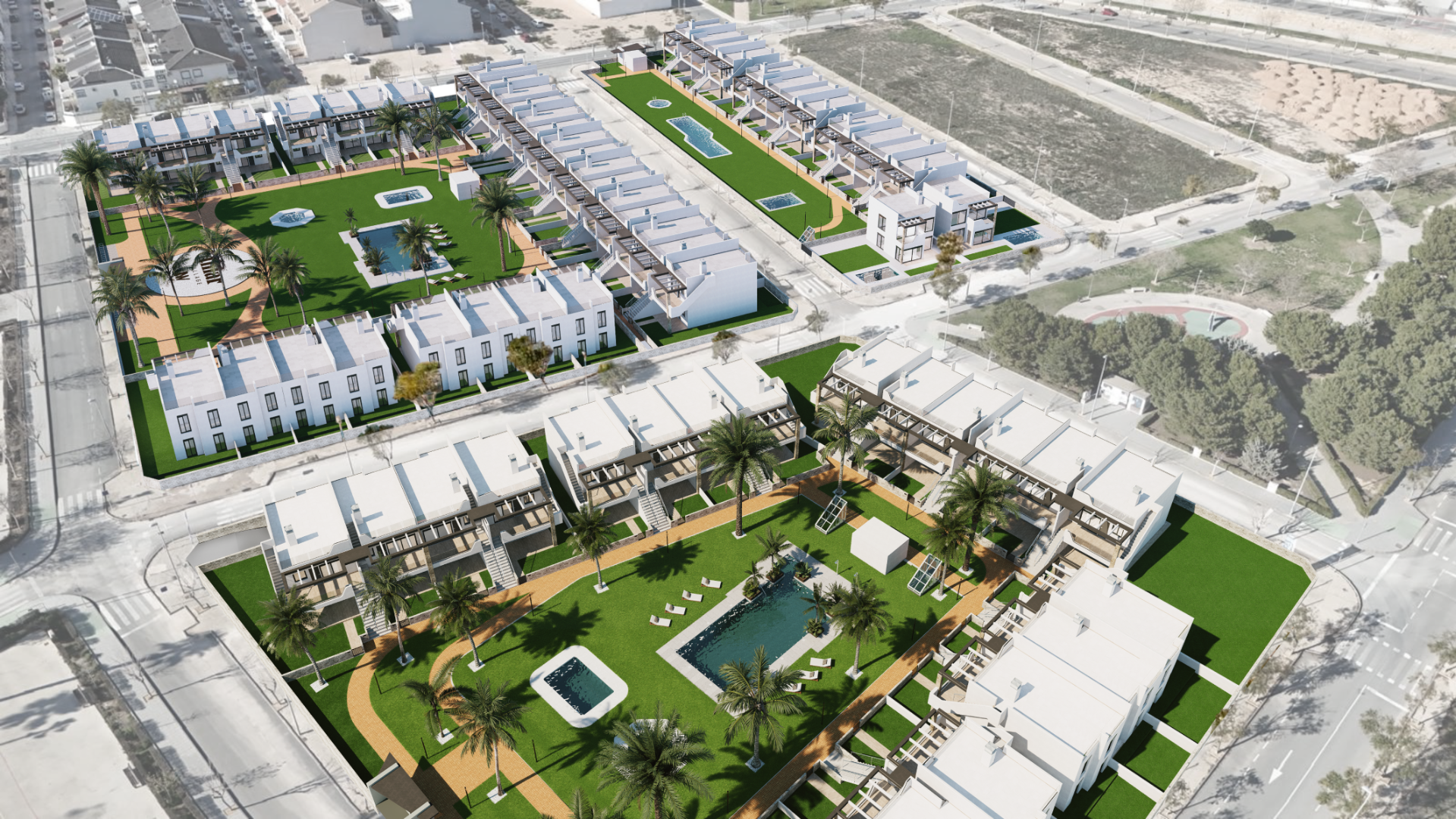 Osiedle mieszkaniowe składające się z pięciu bloków, w którym znajduje się łącznie 62 apartamenty. Parter posiada ogród, a pierwsze piętro oferuje prywatny taras na dachu z przygotowaną kuchnią na świeżym powietrzu. Kompleks szczyci się pięknym wspólnym ogrodem i basenem, a w piwnicy znajduje się również siłownia. Pilar de la Horadada to typowe his...