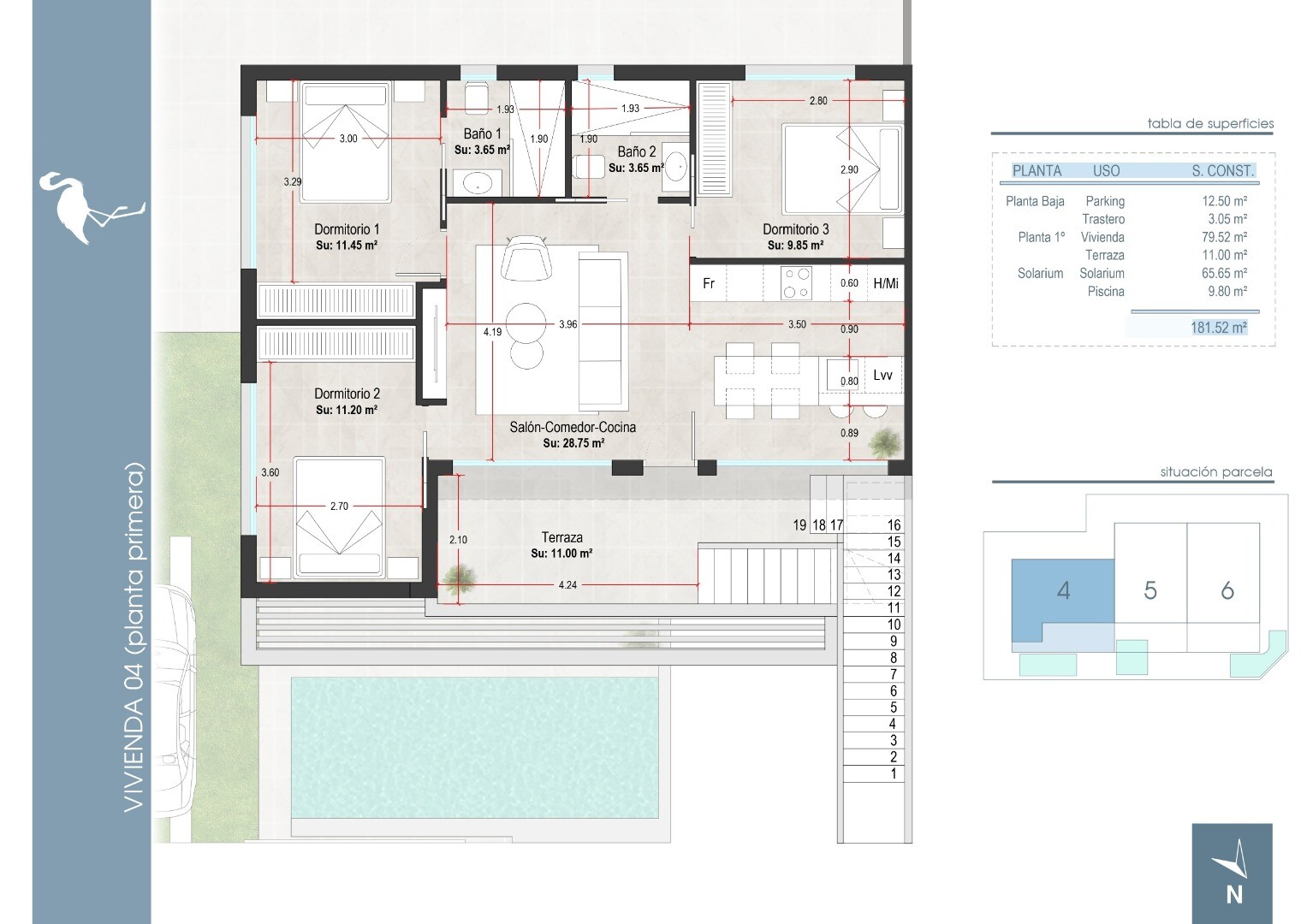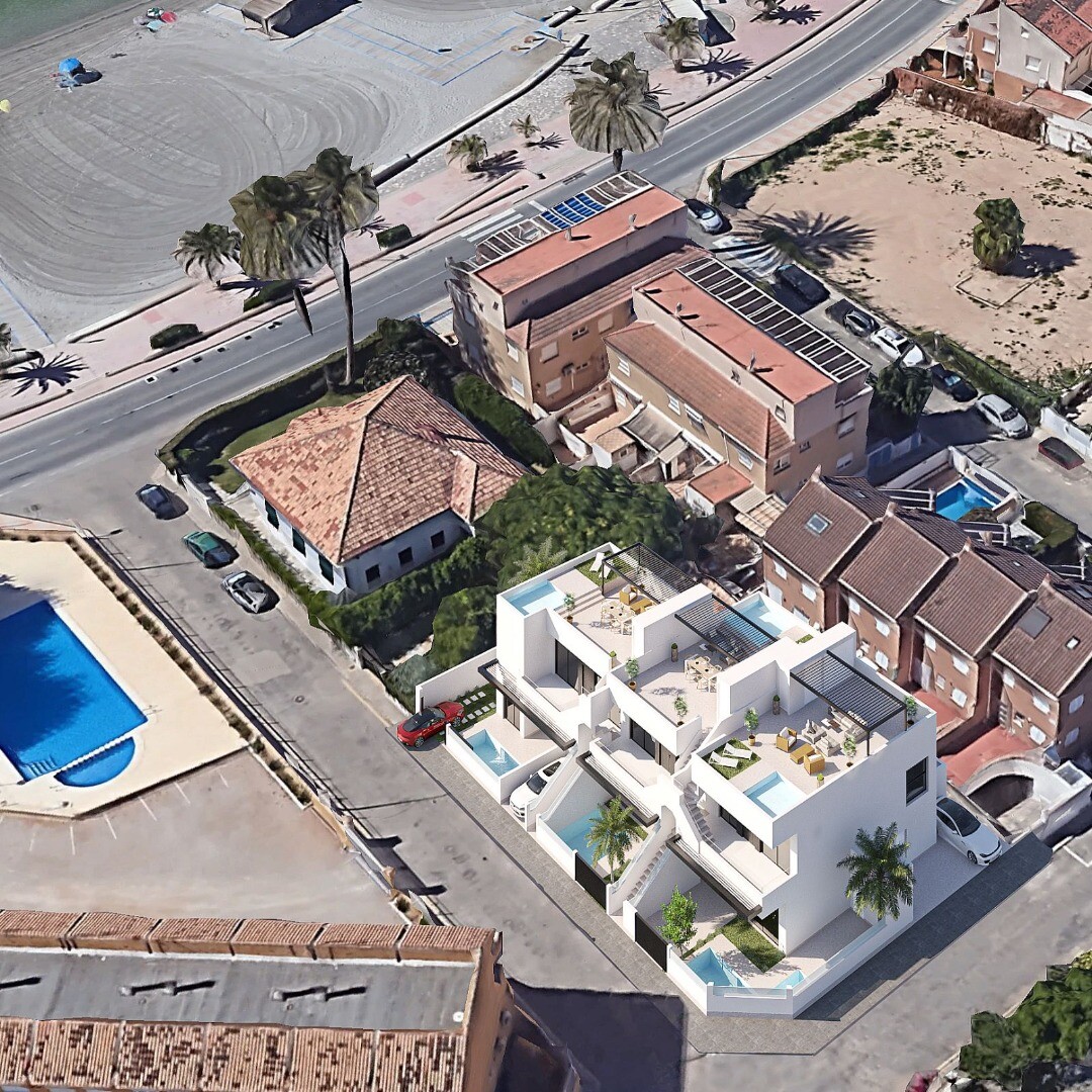 Luksusowy projekt na małą skalę obejmujący 6 apartamentów z 3 sypialniami i 2 łazienkami. 3 na parterze i 3 na pierwszym piętrze. Mieszkania na parterze są ogrodzone ścianami o grubości 1m80, co zapewnia prywatność i posiadają komórkę lokatorską o powierzchni 4m2. Apartamenty na pierwszym piętrze dysponują prywatnym tarasem na dachu i kuchnią na św...