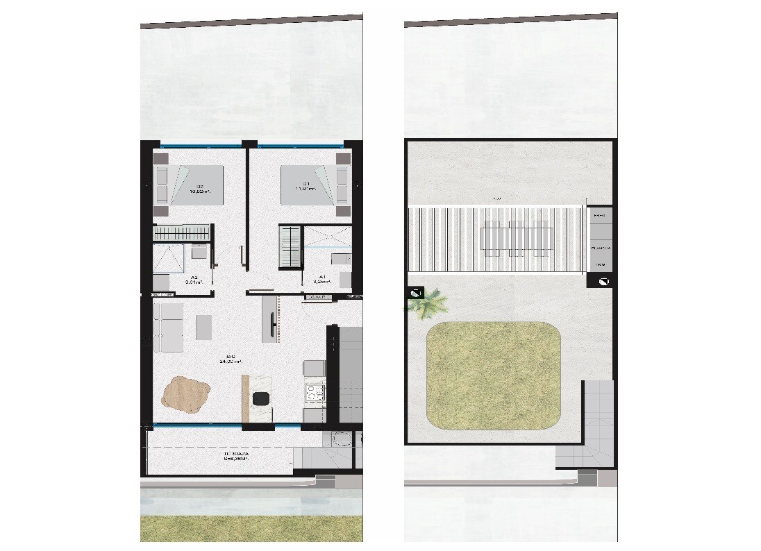 Mała rezydencja rozłożona na 2 etapy, składające się z 3 apartamentów na parterze i 3 apartamentów na pierwszym piętrze z solarium i kuchnią na świeżym powietrzu z naziemnym miejscem parkingowym, 2 km od plaży i wszystkimi możliwymi udogodnieniami w odległości spaceru. Zakończenie planowane jest na zimę 2024. Obecnie są wyposażone w sprzęt AGD, cał...kowicie wykończone łazienki, zamontowaną klimatyzację (ciepło-zimno), oświetlenie LED wewnętrzne i zewnętrzne.