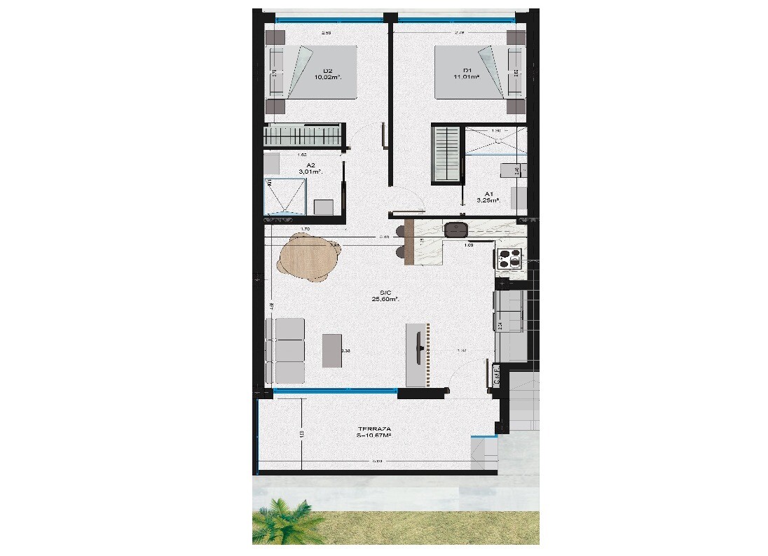 Mała rezydencja rozłożona na 2 etapy, składające się z 3 apartamentów na parterze i 3 apartamentów na pierwszym piętrze z solarium i kuchnią na świeżym powietrzu z naziemnym miejscem parkingowym, 2 km od plaży i wszystkimi możliwymi udogodnieniami w odległości spaceru. Zakończenie planowane jest na zimę 2024. Obecnie są wyposażone w sprzęt AGD, cał...