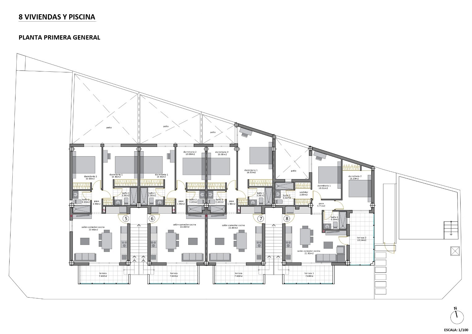 Apartamenty zostaną wyposażone w sprzęty kuchenne, klimatyzację (ciepło/zimno), w pełni wykończone łazienki, oświetlenie wewnętrzne i zewnętrzne LED oraz elektryczne rolety. Penthousy posiadają kuchnię na świeżym powietr...zu i pergolę na tarasie na dachu. Do centrum San Pedro del Pinatar można dojść pieszo, znajdą tam Państwo wszystkie możliwe udogodnienia. Na lotniska w Murcii i Alicante można dojechać w około 30 minut z Murcii i 50 minut z Alicante.