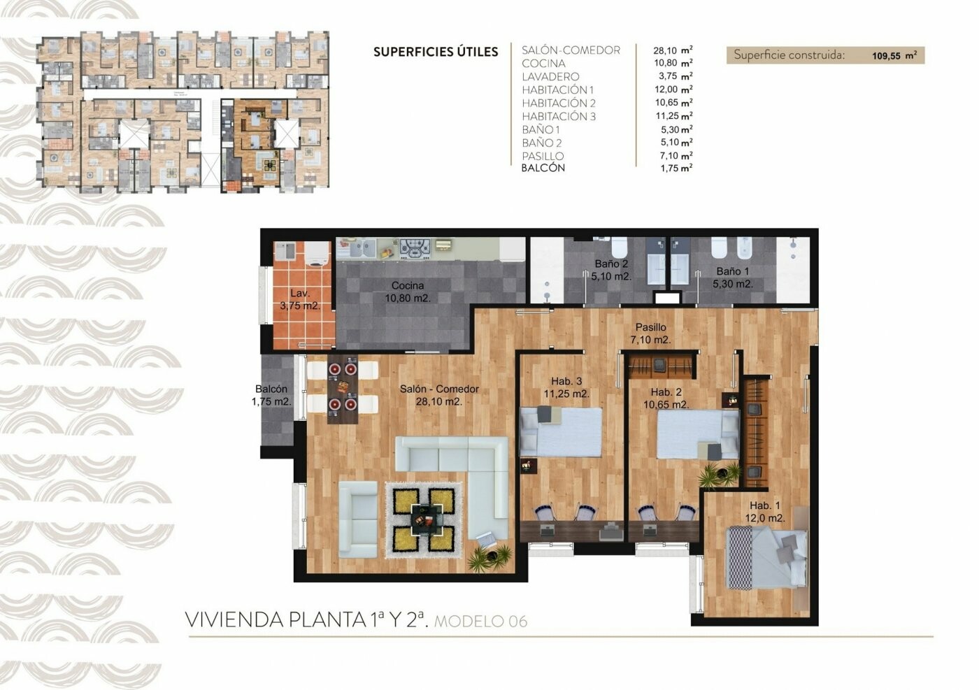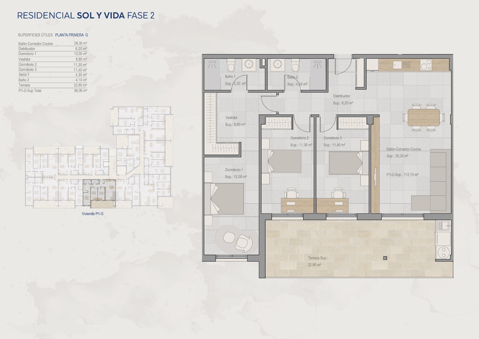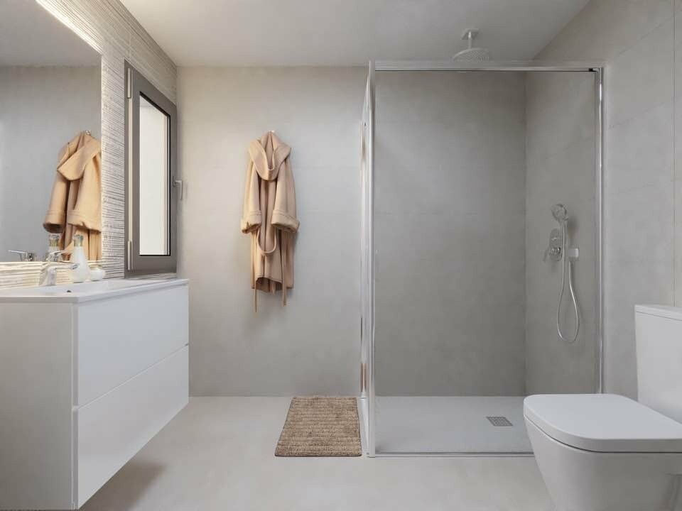 Kompleks posiada wspólny basen i wszystkie apartamenty mają prywatne solarium, podziemny garaż i pomieszczenie do przechowywania. Budynek ma 3 piętra, na part...erze znajduje się 6 apartamentów, a na pierwszym i drugim piętrze 8 apartamentów.