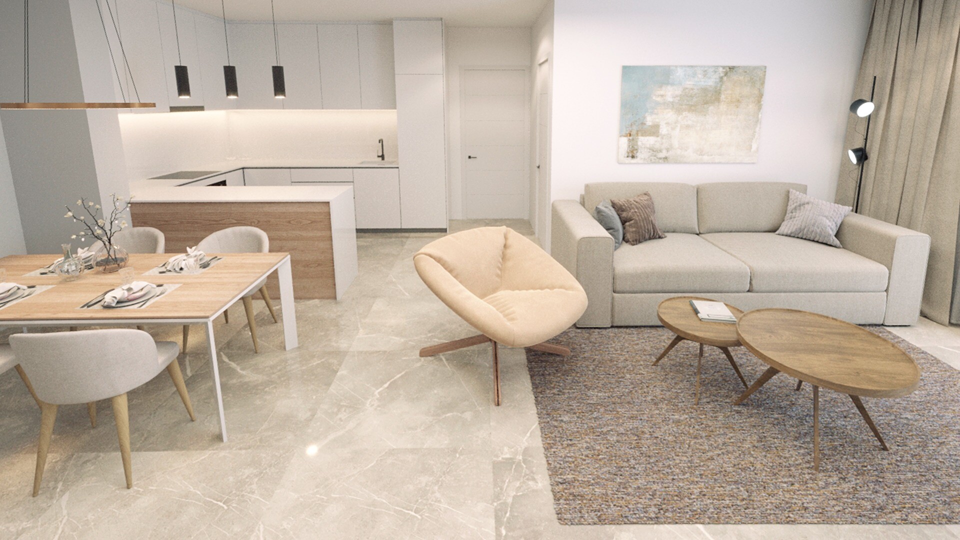 Lokal oferuje 53 m² powierzchni zabudowanej, obejmującej sypialnię z wbudowaną szafą, kompletną łazienkę oraz jasny salon z jadalnią i otwartą kuchnią. W mieszkaniu przewidziano instalację klimatyzac...ji kanałowej, co zapewnia komfort przez cały rok.