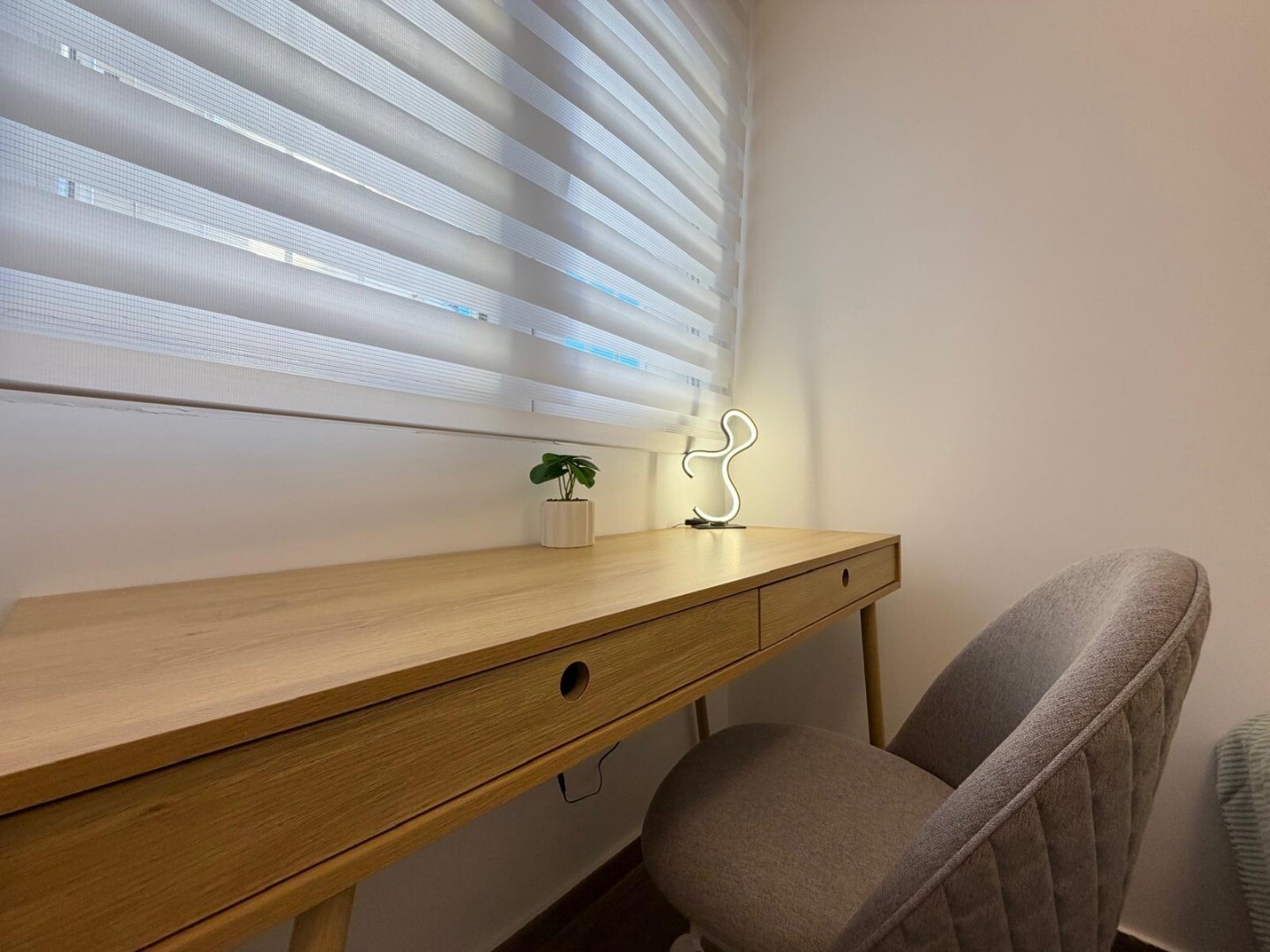 Mieszkanie posiada centralną klimatyzację i jest sprzedawane w pełni umeblowane oraz wyposażone, gotowe do zamieszkania.