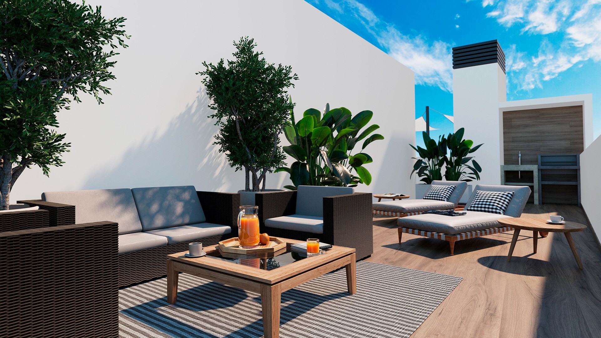 Mieszkanie ma 69 m² powierzchni zabudowanej, obejmującej 2 sypialnie z wbudowanymi szafami, 2 kompletne łazienki oraz jasny salon z jadalnią i otwartą kuchnią. Jego 35 m² przestrzeni zewnętrznej..., podzielonej między taras i prywatne solarium, pozwala w pełni cieszyć się klimatem śródziemnomorskim. Przewidziano również instalację klimatyzacji kanałowej.