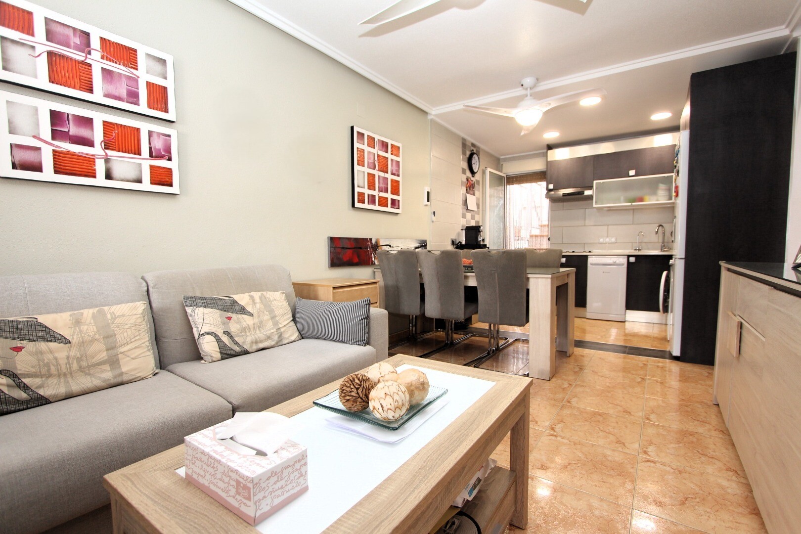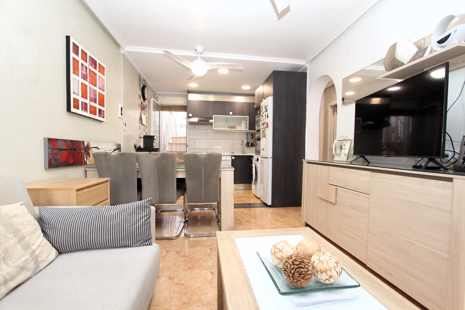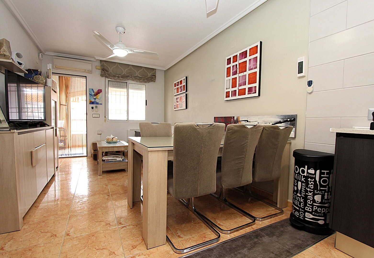 Czy wyobrażasz sobie życie w spokojnym miejscu, gdzie przez cały rok możesz cieszyć się śródziemnomorskim słońcem? Przedstawiamy ten dwupoziomowy dom szeregowy na pierwszym piętrze, położony na osiedlu Altos del Limonar w Torrevieja. Mieszkanie posiada dwie sypialnie, łazienkę, taras od strony wschodniej oraz przestronny prywatny taras słoneczny na... górnym piętrze. W nieruchomości przeprowadzono remont kuchni i łazienki, wykorzystując materiały najwyższej jakości. Osiedle jest ogrodzone, posiada boisko wielofunkcyjne oraz duży basen wspólny, przy którym można spędzić przyjemne chwile podczas ciepłych letnich dni. Centrum handlowe Habaneras znajduje się zaledwie 3 minuty jazdy samochodem, a słynne plaże Playas del Cura, Los Locos i Los Naúfragos około 10 minut jazdy. Szpital Uniwersytecki w Torrevieja znajduje się około 15 minut drogi stąd, a międzynarodowe lotnisko w Alicante, oferujące bezpośrednie loty do głównych europejskich destynacji, około 40 minut. Skontaktuj się z nami, aby uzyskać więcej informacji!