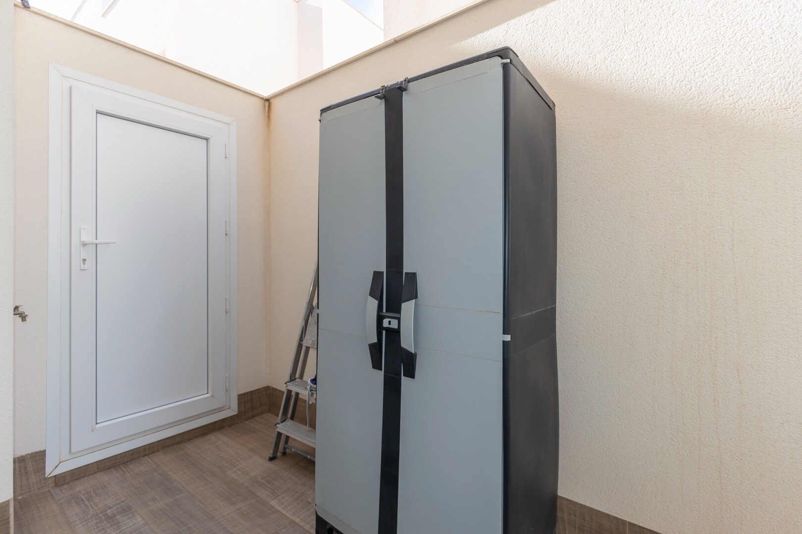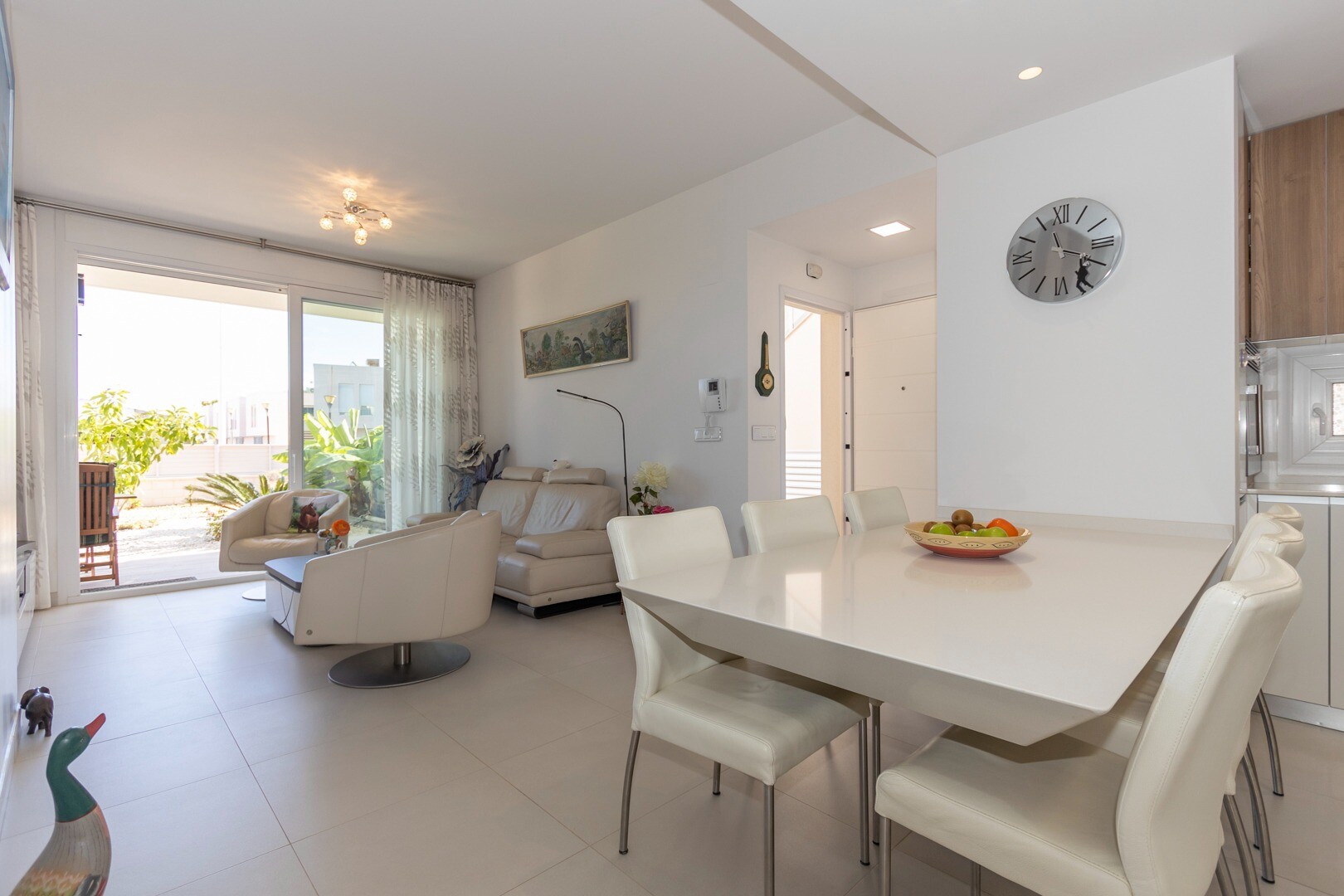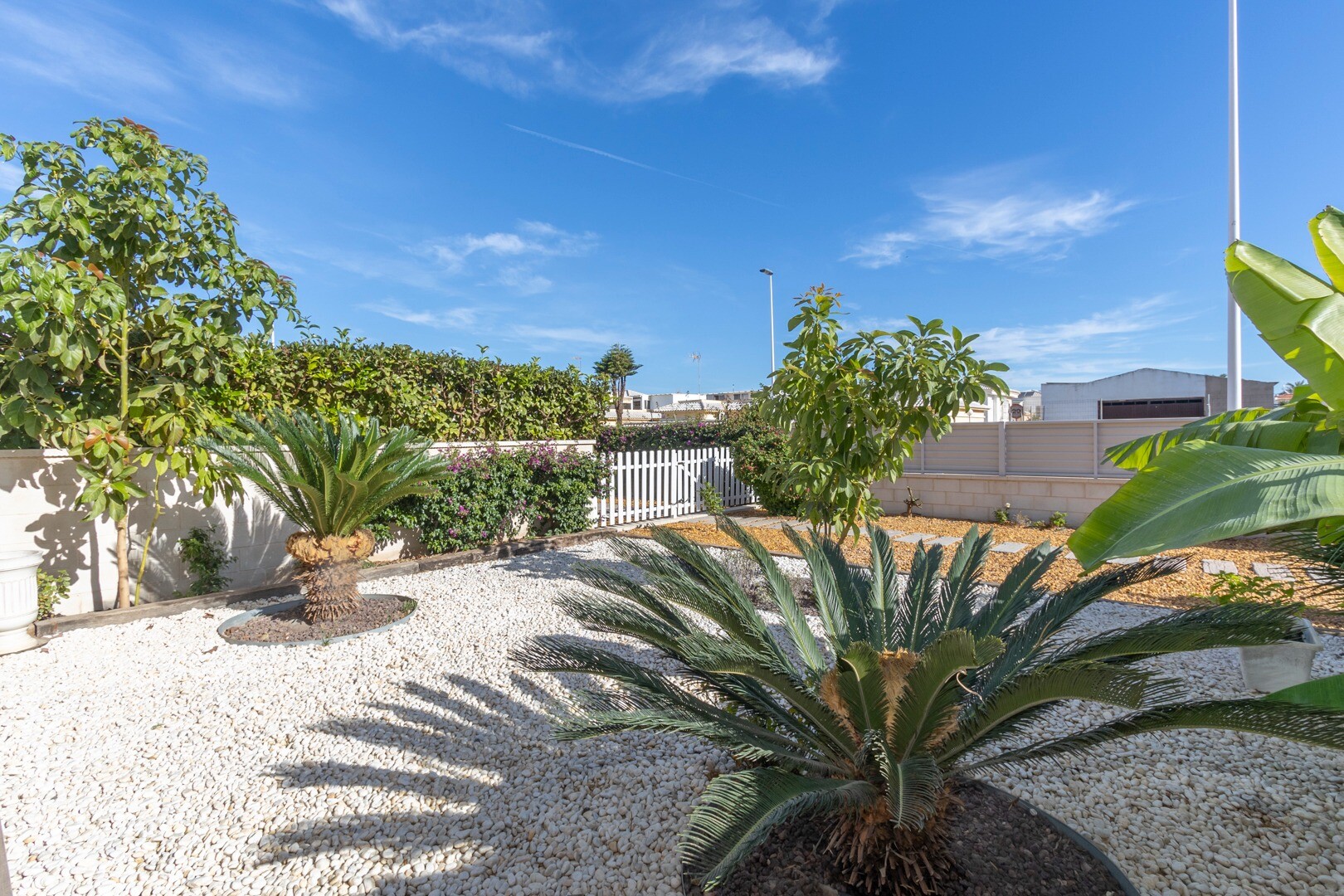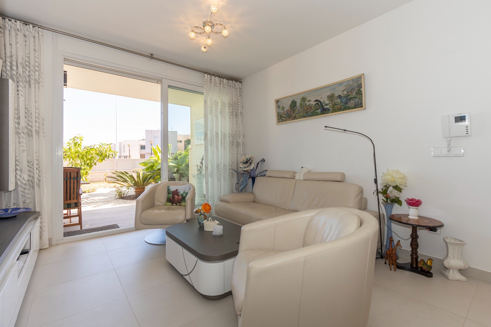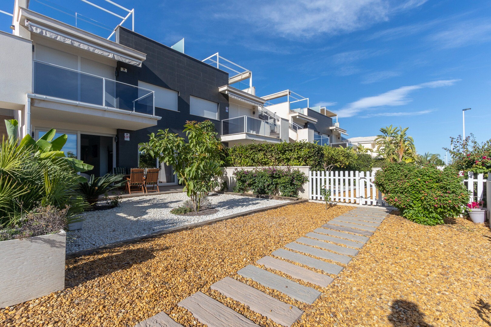 Mieszkanie posiada wbudowaną klimatyzację we wszystkich pomieszczeniach oraz ogrzewanie podłogowe. Za apartamentem znajduje się również duże patio o powierzchni 10m2, jest to przestrzeń z tyłu, która może służyć jako schowek i zapewnia naturalne światło. Front składa się z dużego tarasu i zadbanego ogrodu z różnymi roślinami i bananowcem.