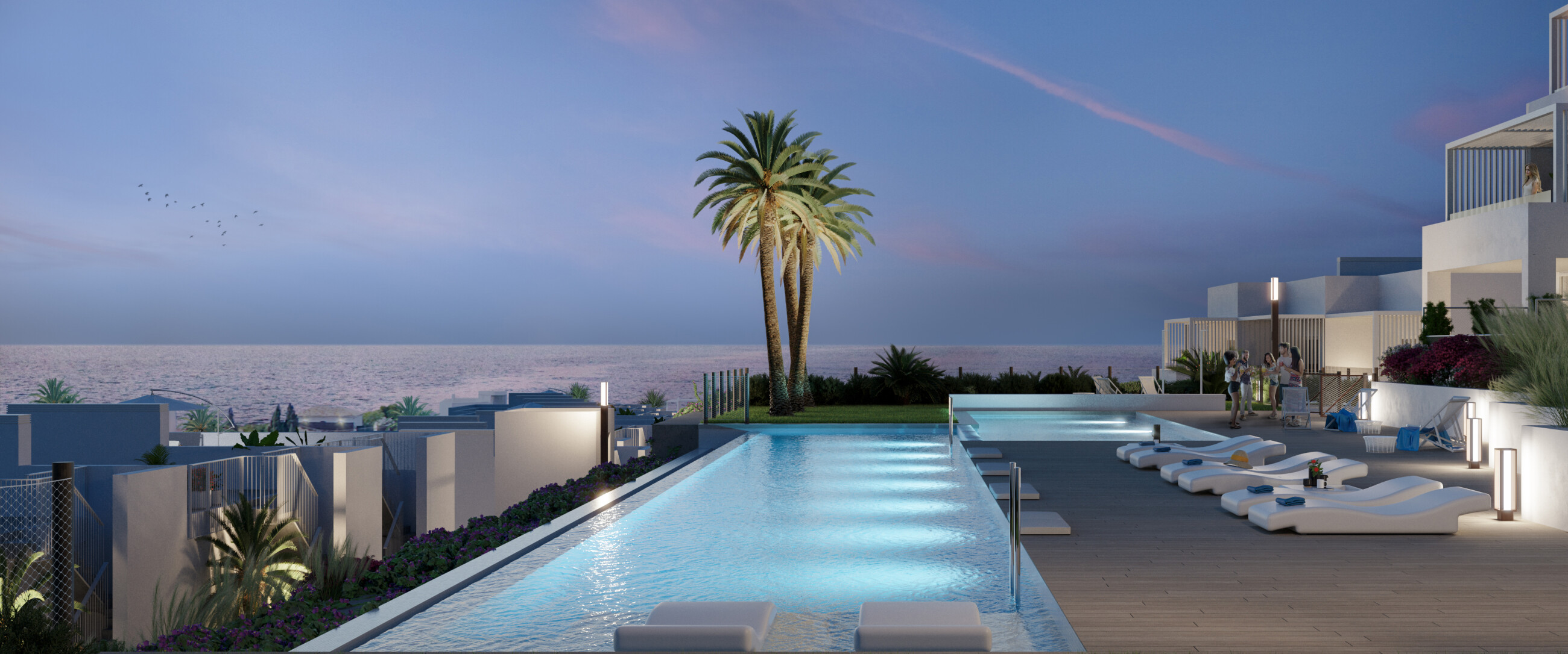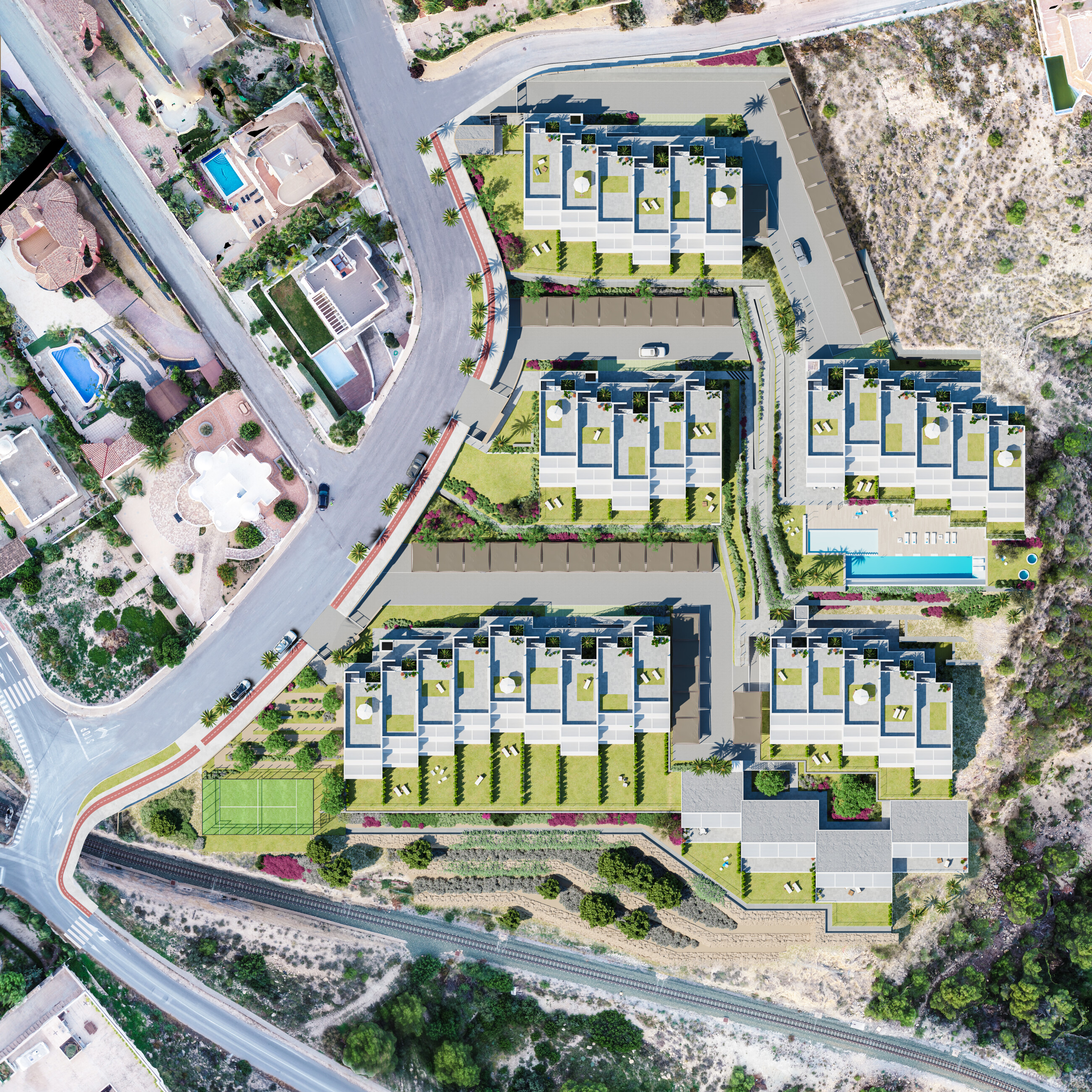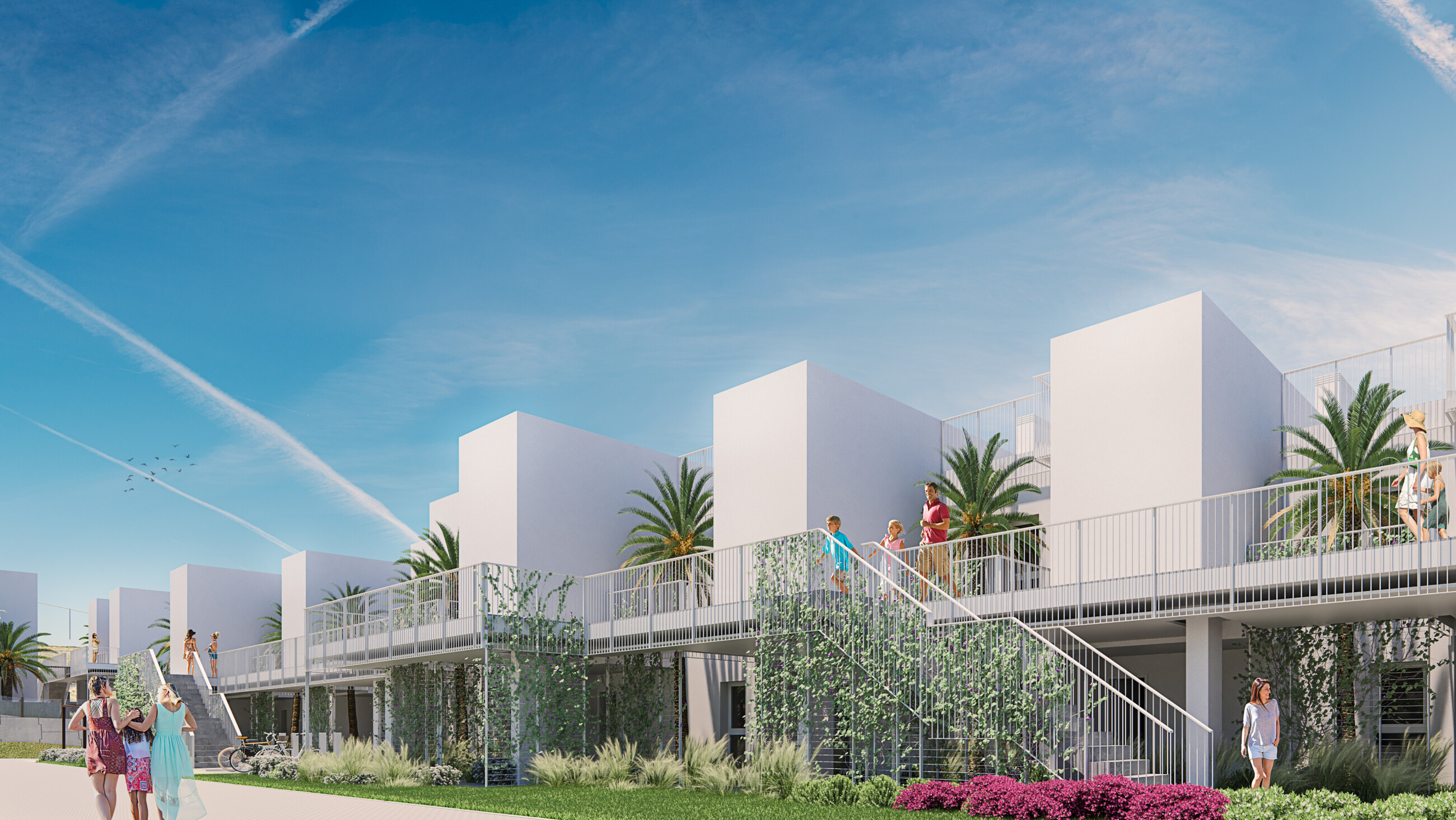 Domy z 2 i 3 sypialniami z bardzo dużymi tarasami, ogródkiem lub solarium. Doskonałe walory obejmujące m.in. klimatyzację ciepło/zimno poprzez system prowadzenia oraz ogrzewanie podłogowe w łazienkach, możliwość indywidualnej aranżacji domu poprzez wybór różnych opcji wykończenia. Do wszystkich domów przynależy miejsce parkingowe.